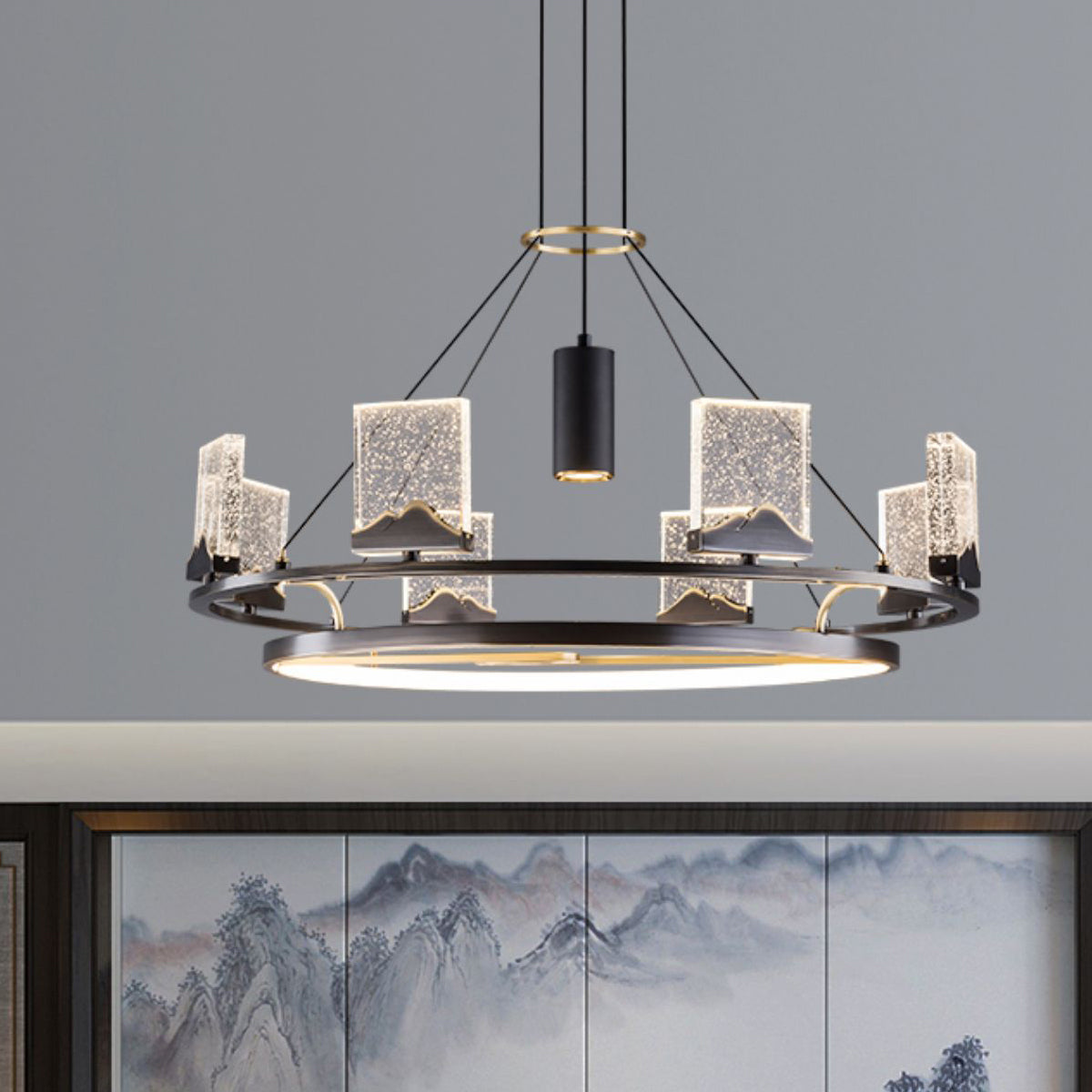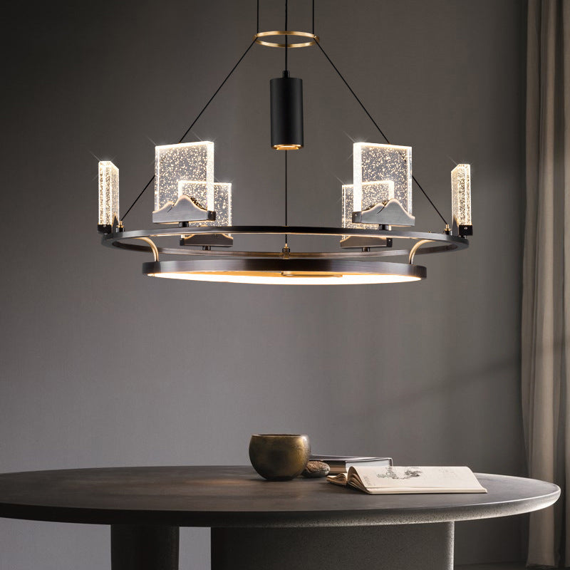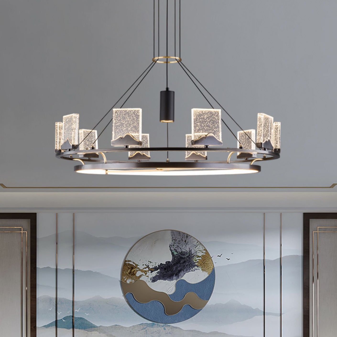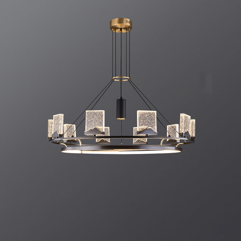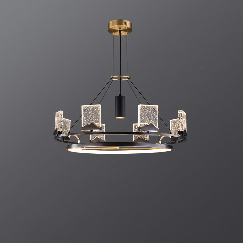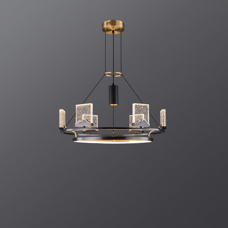 ثريا كريستال LED دائرية نحاسية فاخرة حديثة لغرفة المعيشة