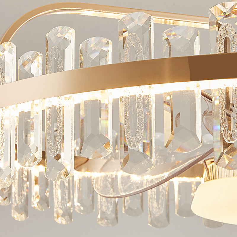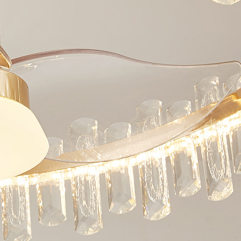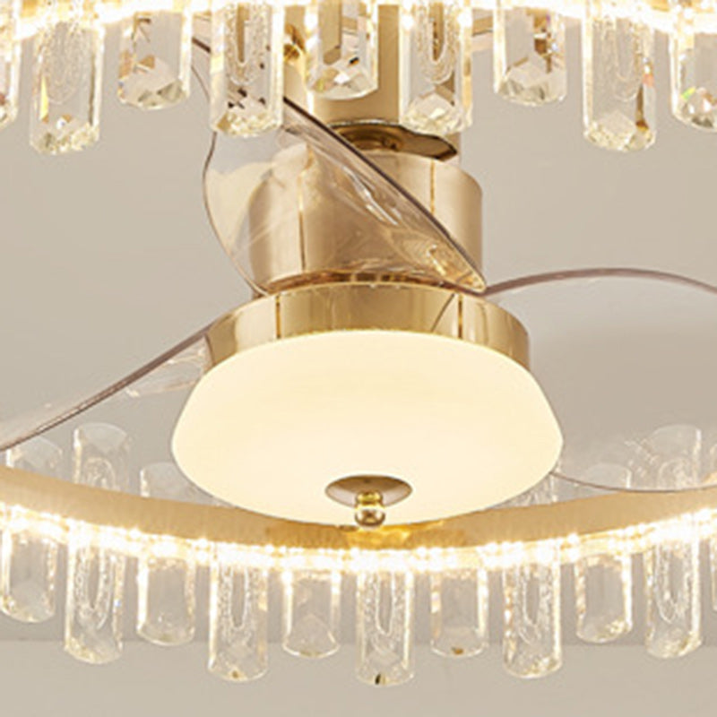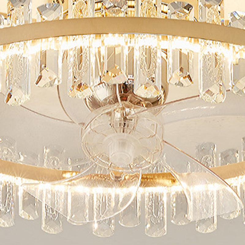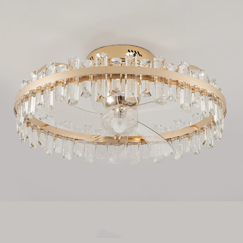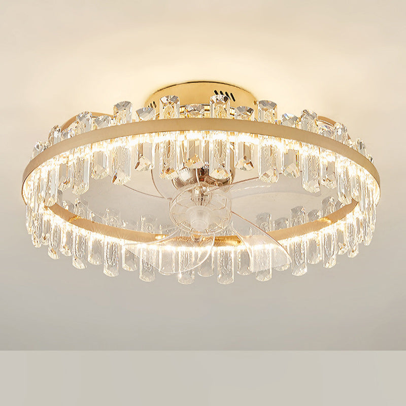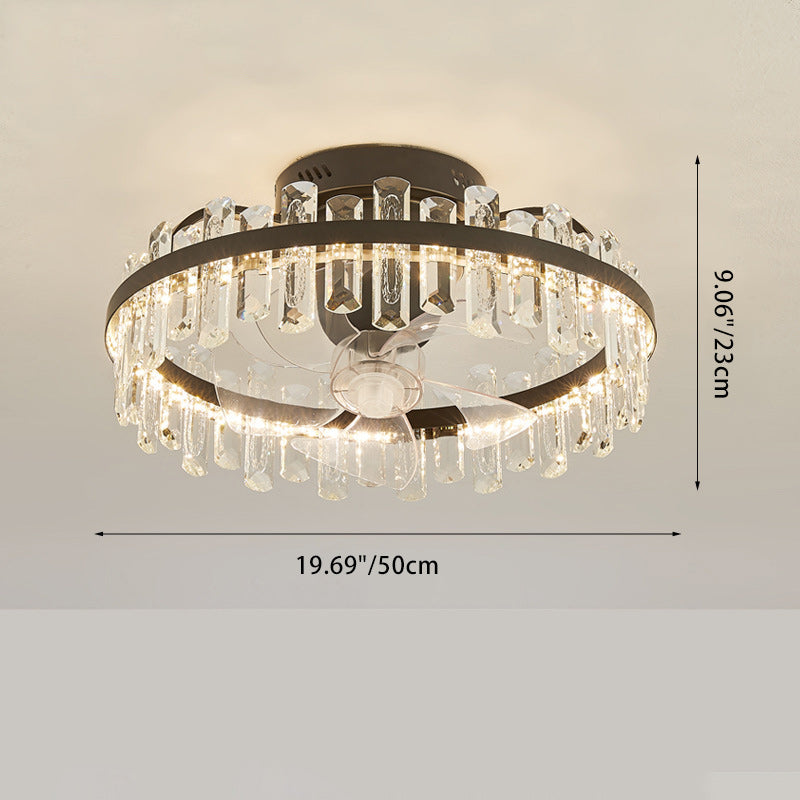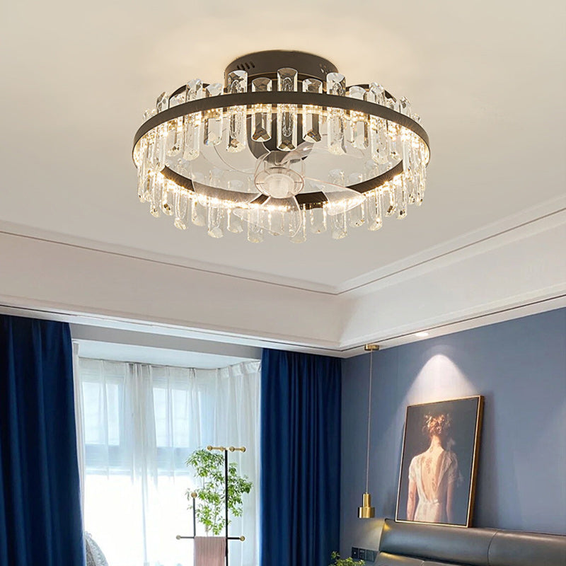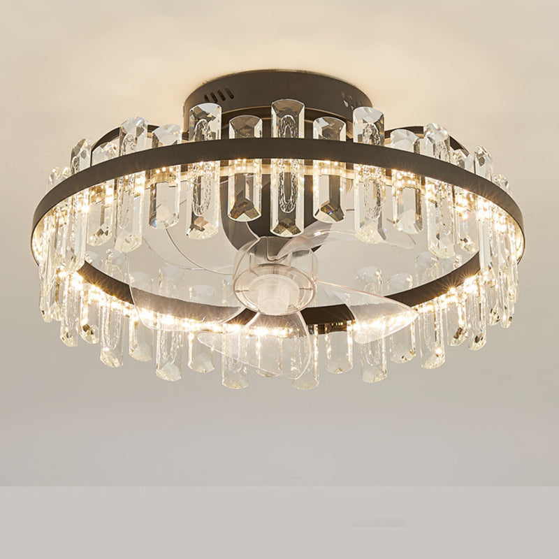 مروحة سقف LED شبه مسطحة من الكريستال ABS ذات شفرة دائرية فاخرة حديثة لغرفة المعيشة
