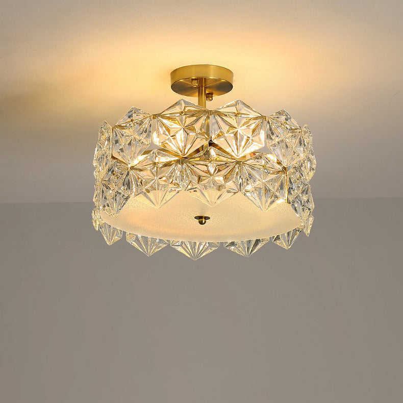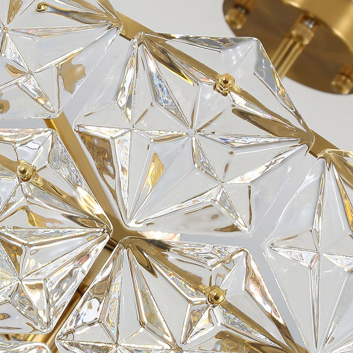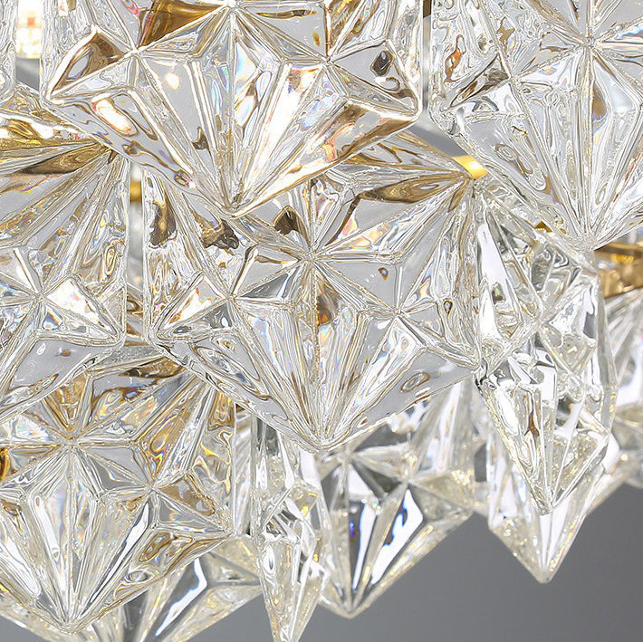 مصباح سقف شبه مسطح عصري فاخر على شكل موجة منشورية دائرية من الزجاج الكريستالي، 5/6/8 مصابيح لغرفة المعيشة