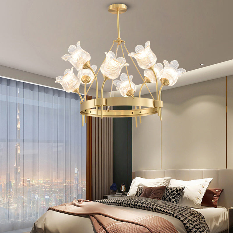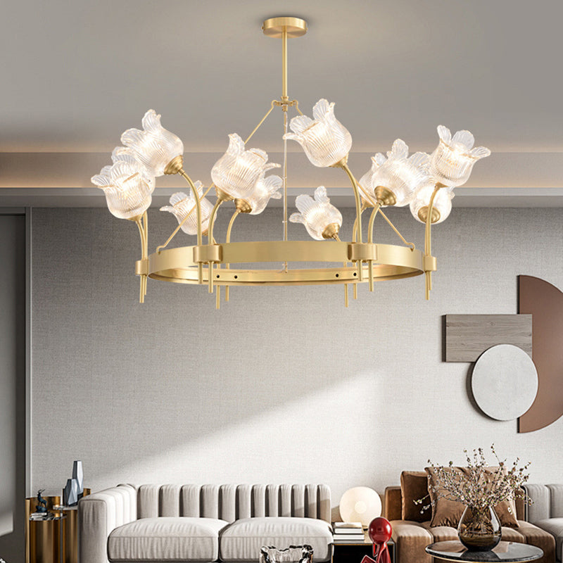 ثريا زجاجية نحاسية دائرية فاخرة حديثة مكونة من 8/10/12 ضوء لغرفة المعيشة