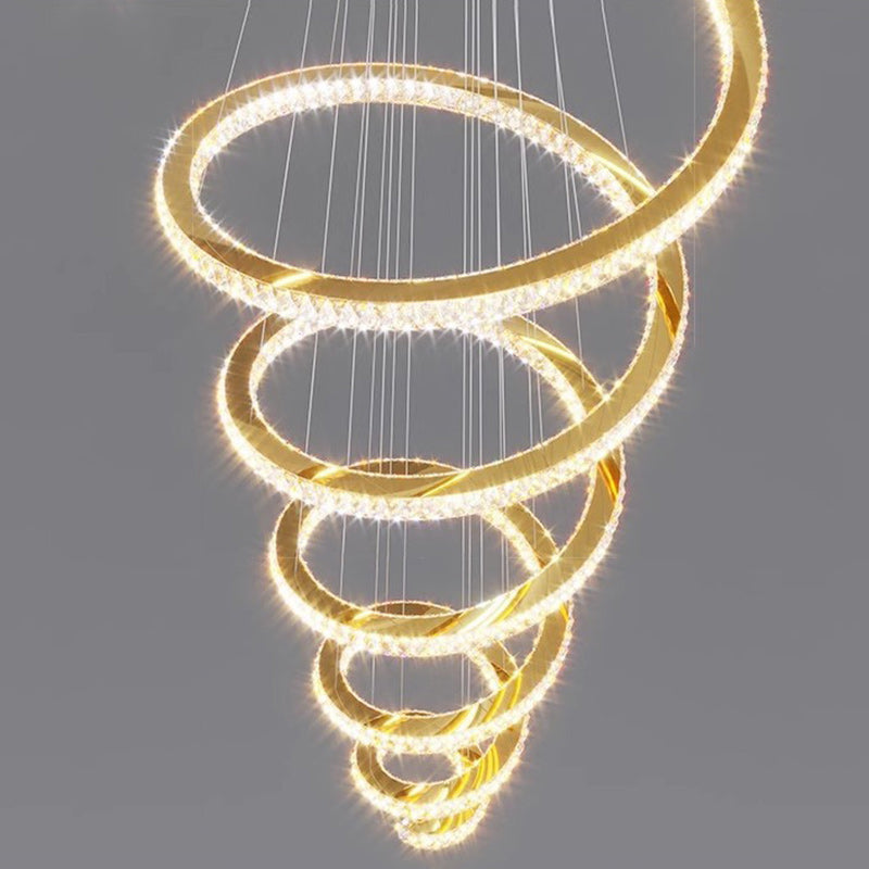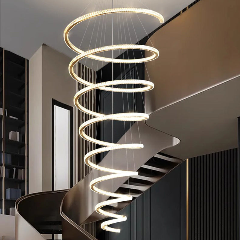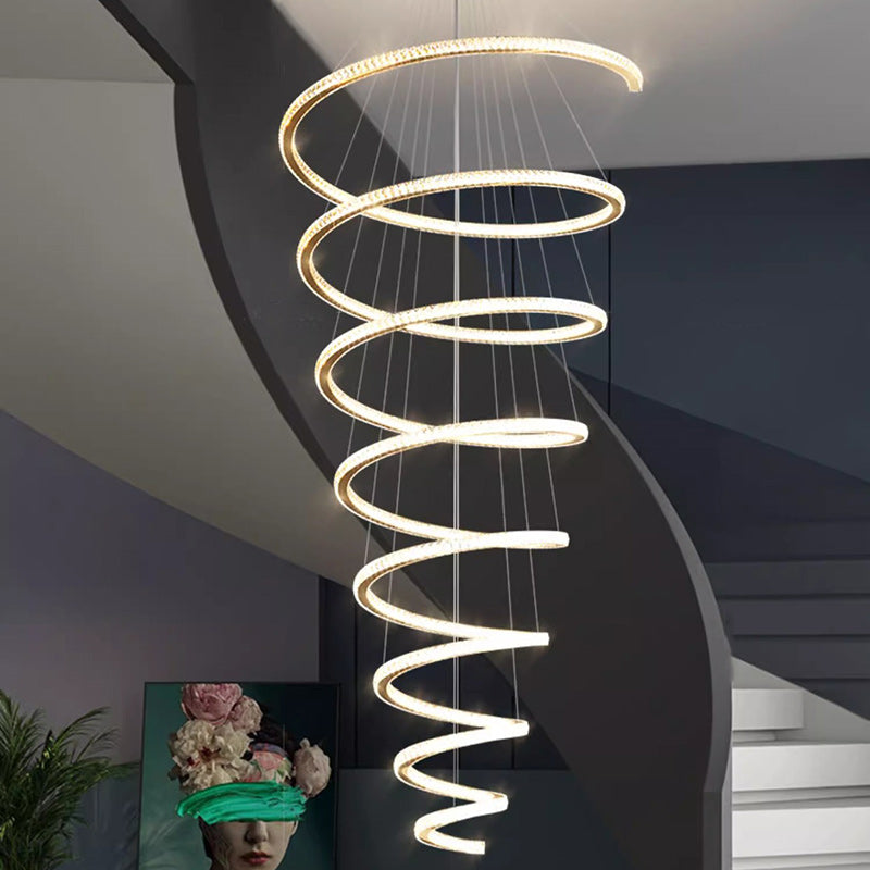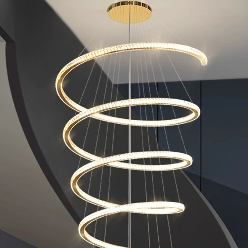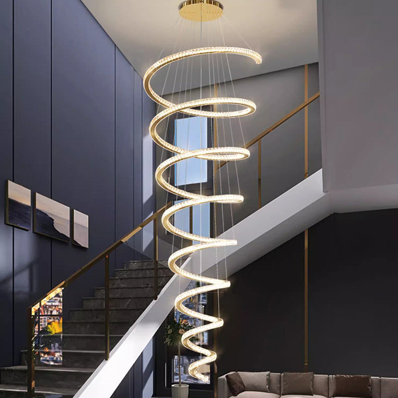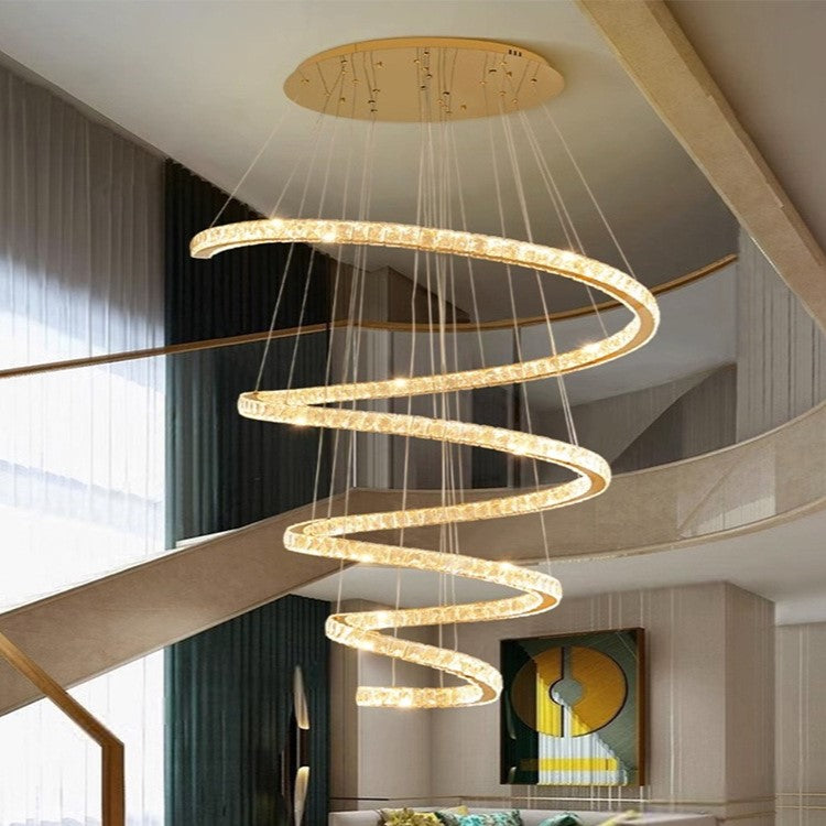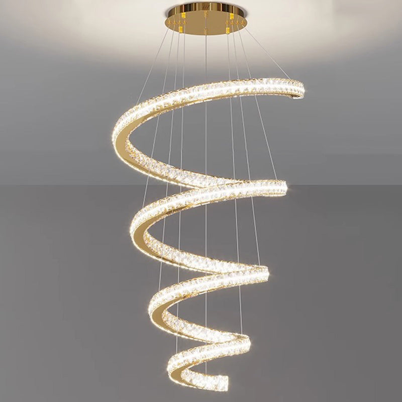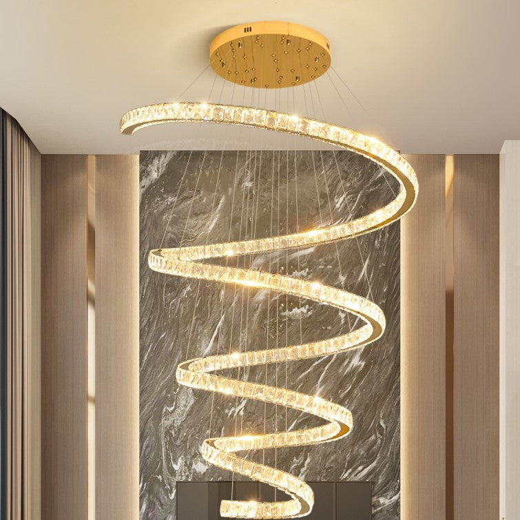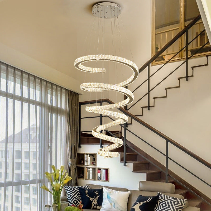 ثريا كريستال LED حديثة فاخرة من الفولاذ المقاوم للصدأ حلزونية لغرفة المعيشة
