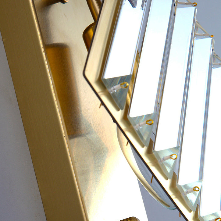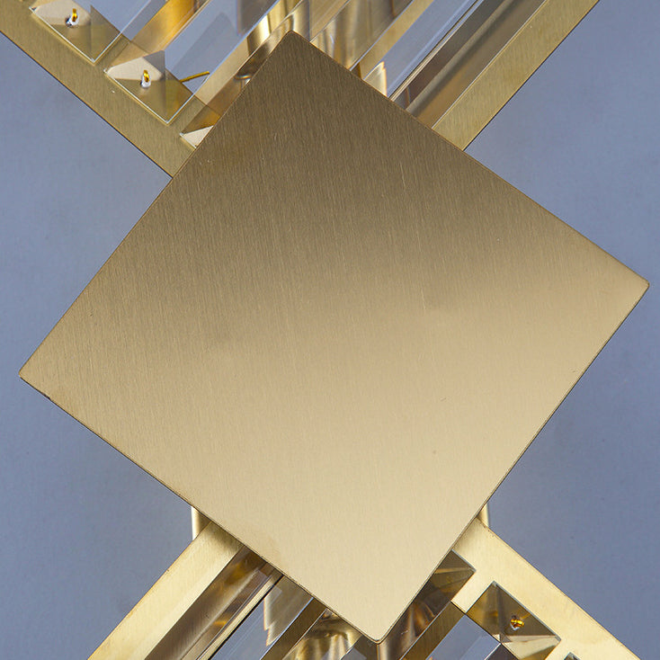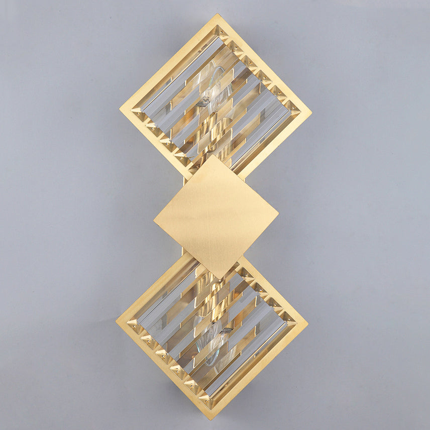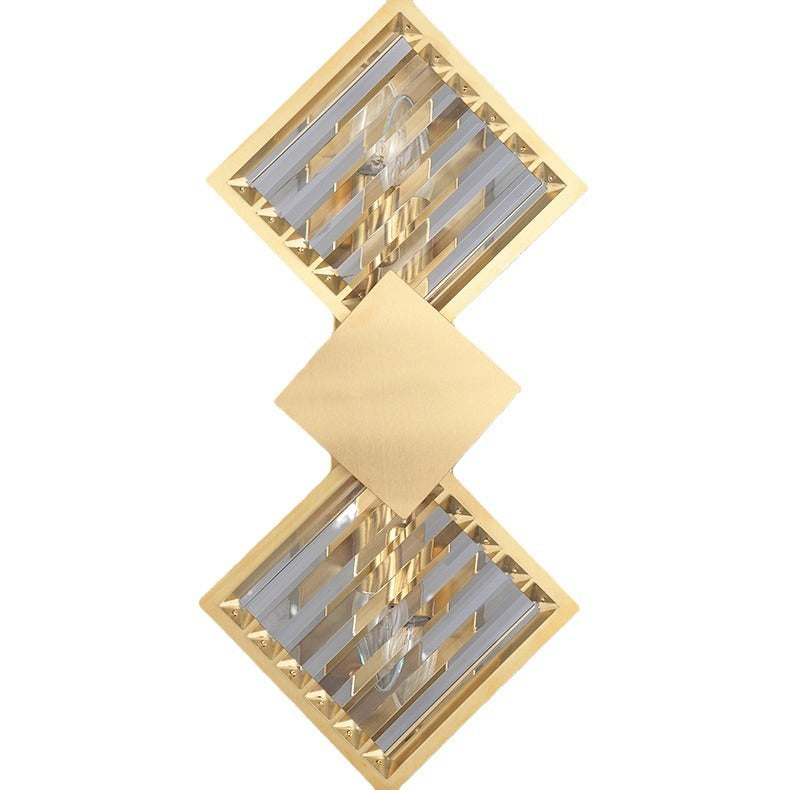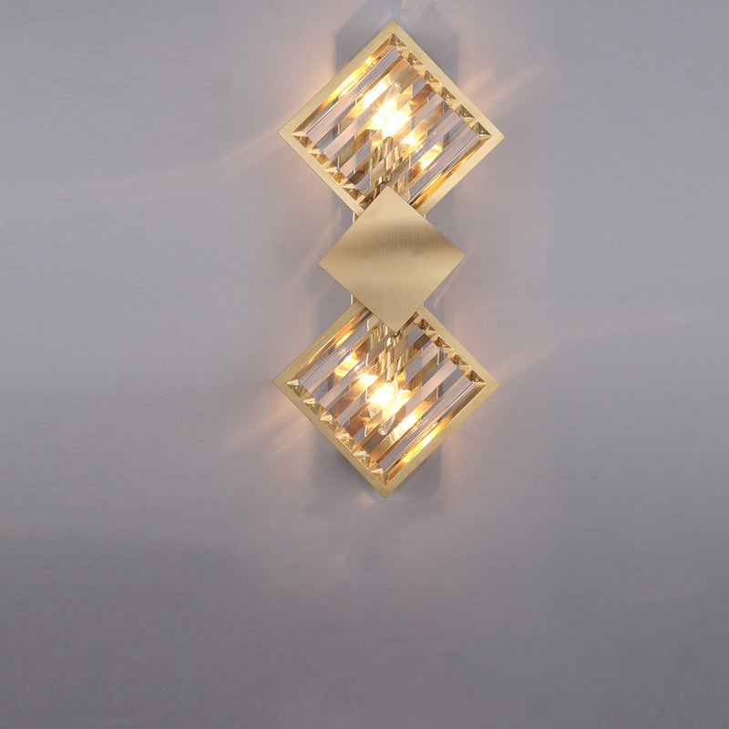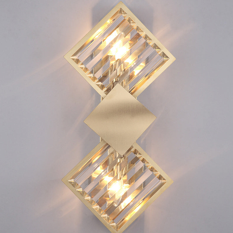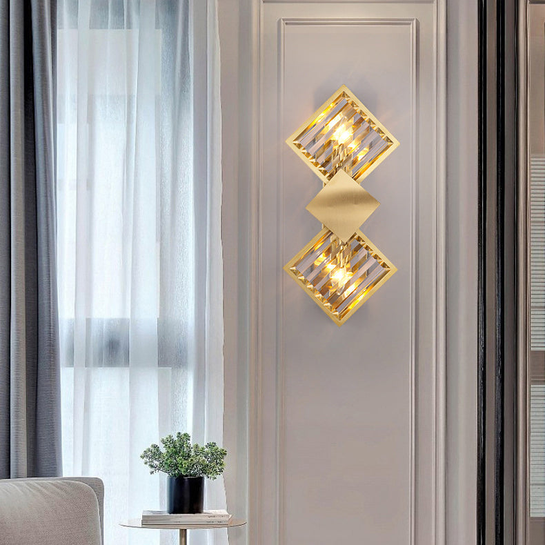 مصباح حائطي عصري فاخر مربع الشكل مصنوع من زجاج كريستالي وفولاذ مقاوم للصدأ ومكون من مصباحين لغرفة المعيشة