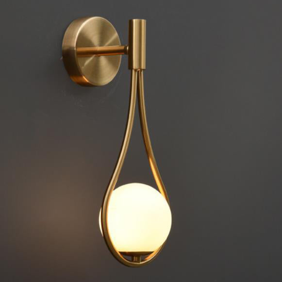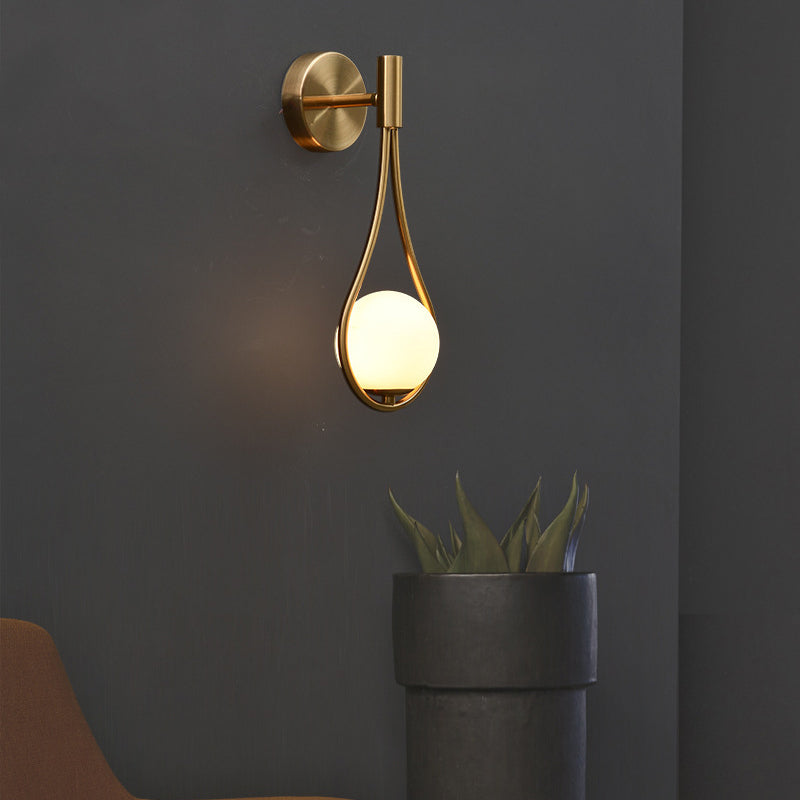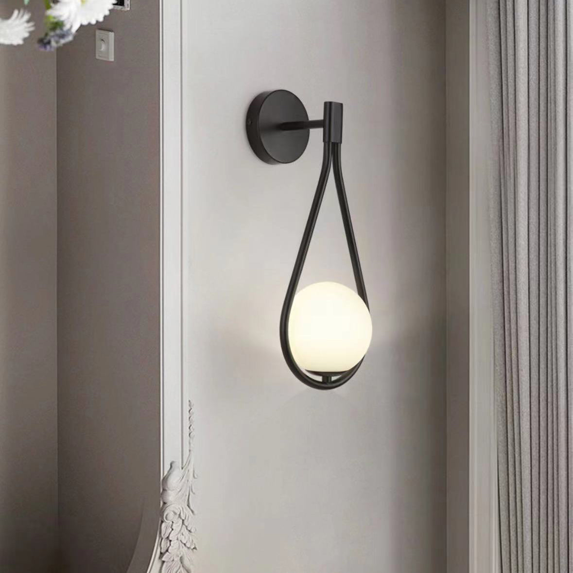 مصباح حائط عصري فاخر على شكل دمعة، كرة مستديرة من الحديد والزجاج، مزود بمصباح واحد