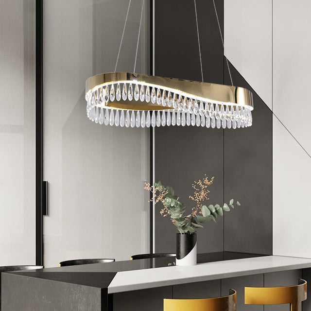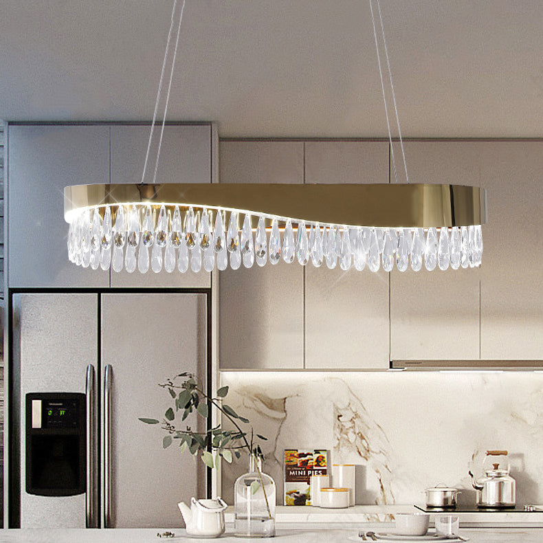 ثريا كريستال LED حديثة فاخرة على شكل دمعة من الفولاذ المقاوم للصدأ لغرفة المعيشة