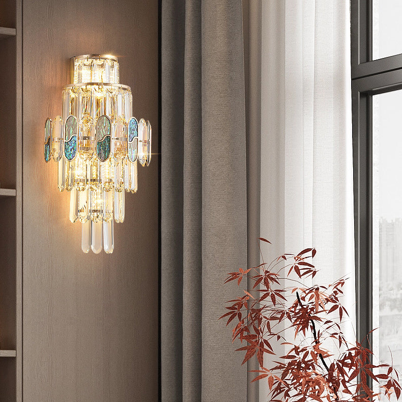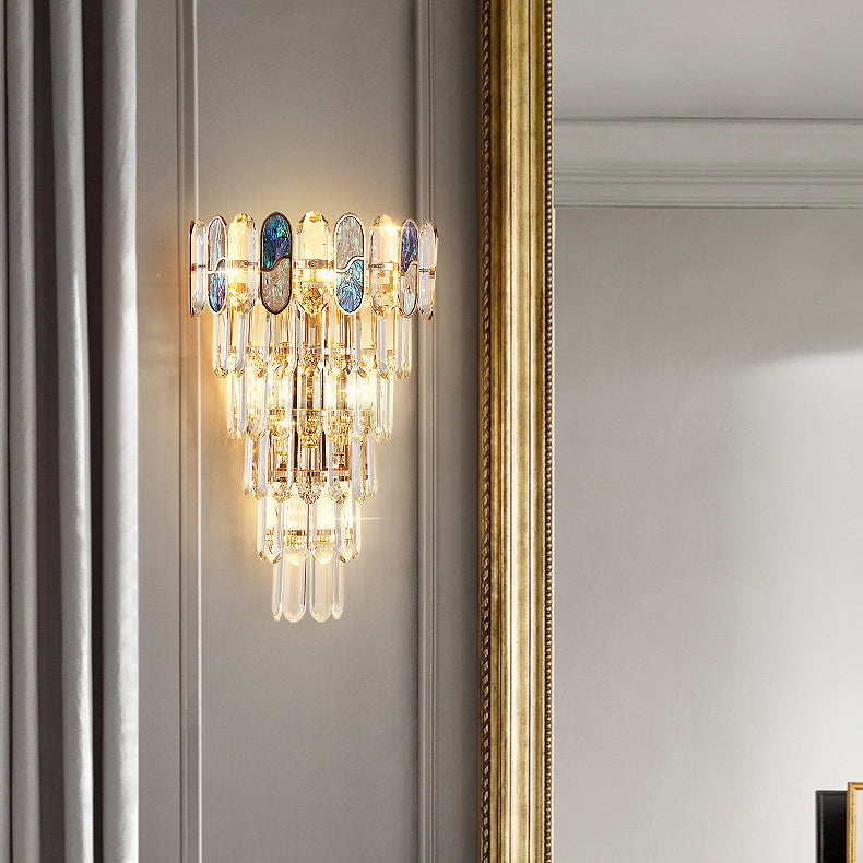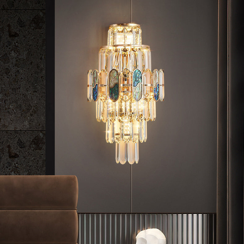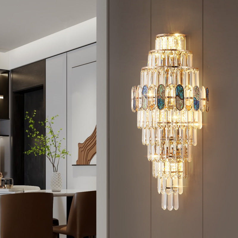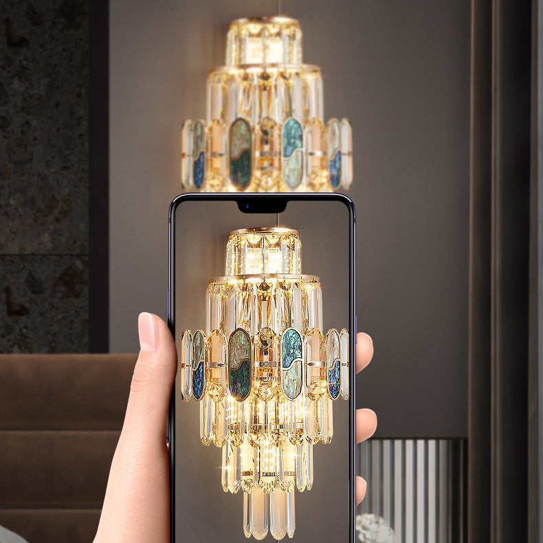 مصباح حائط عصري فاخر على شكل شبه منحرف معدني كريستالي من الألومنيوم 3/5/8 ضوء لغرفة المعيشة