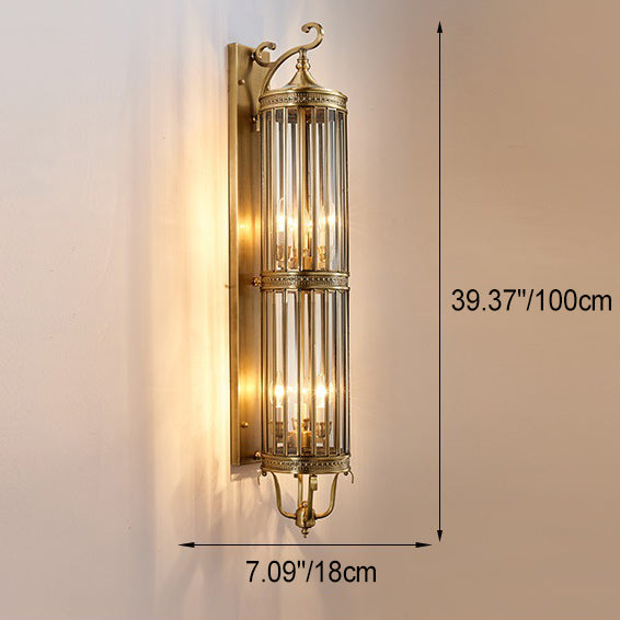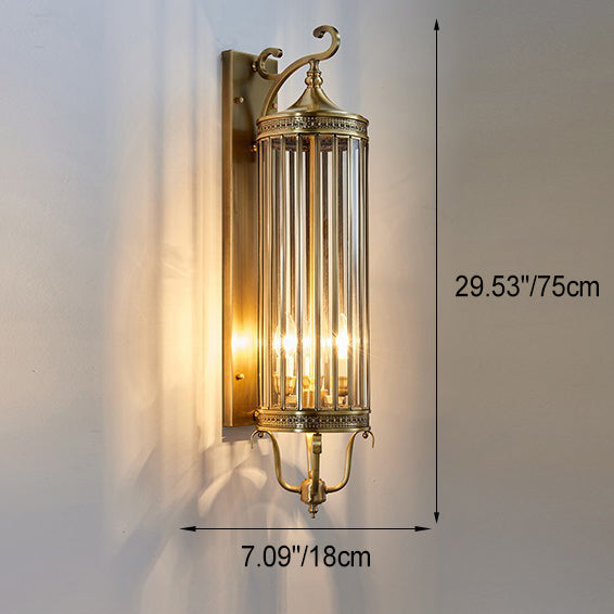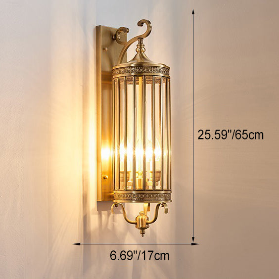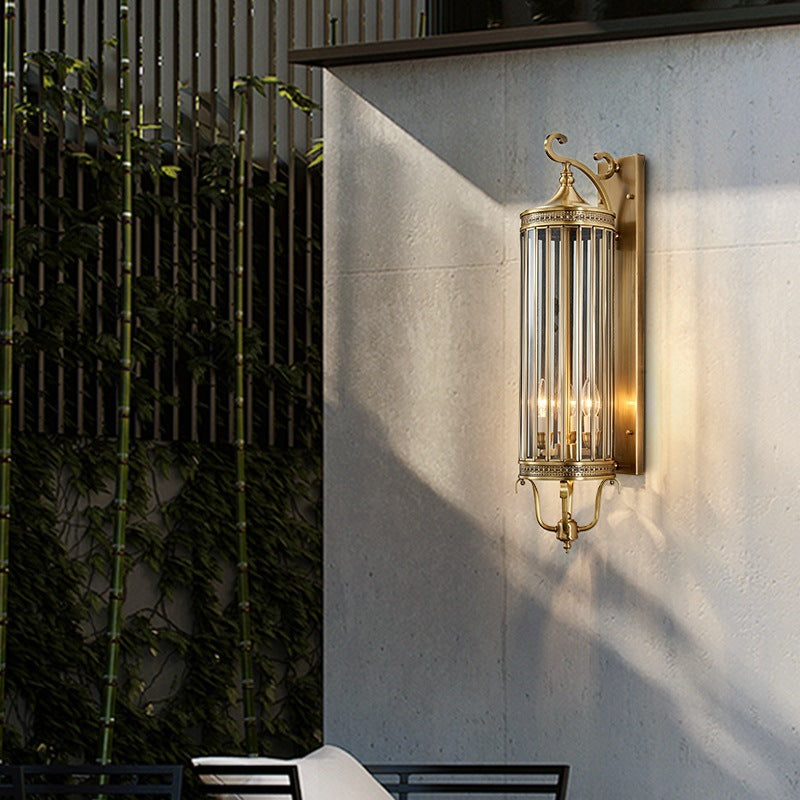 مصباح حائط أسطواني عصري فاخر مقاوم للماء بإطار نحاسي وغطاء زجاجي 1/3/6 ضوء للحديقة