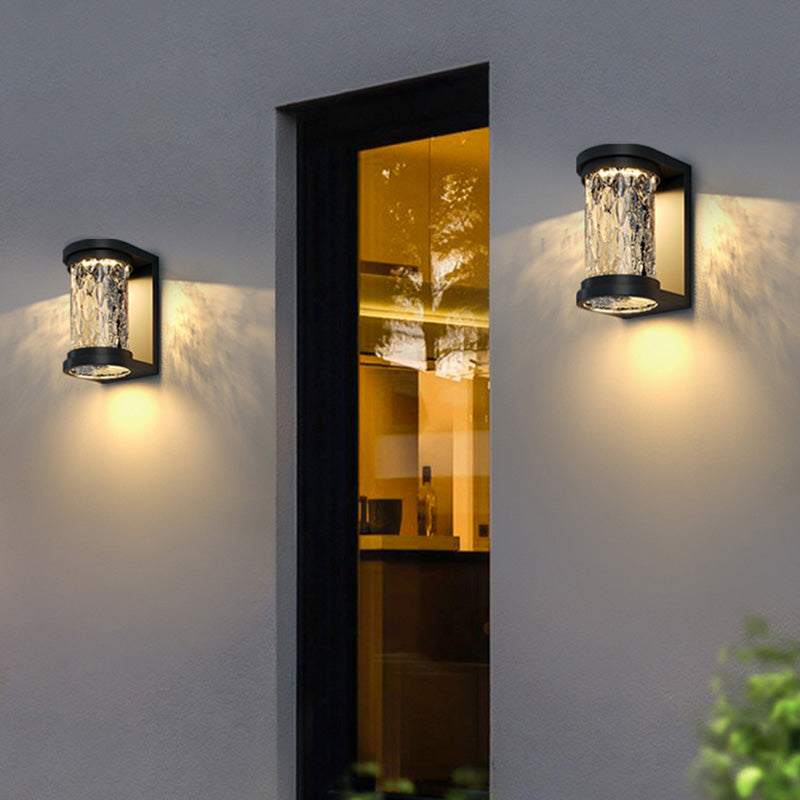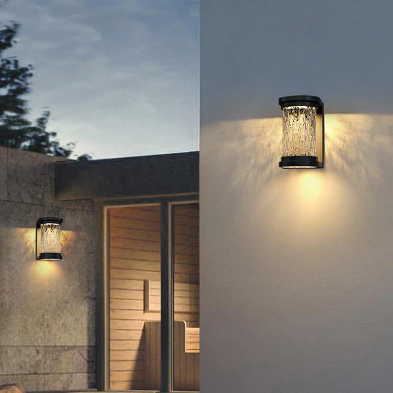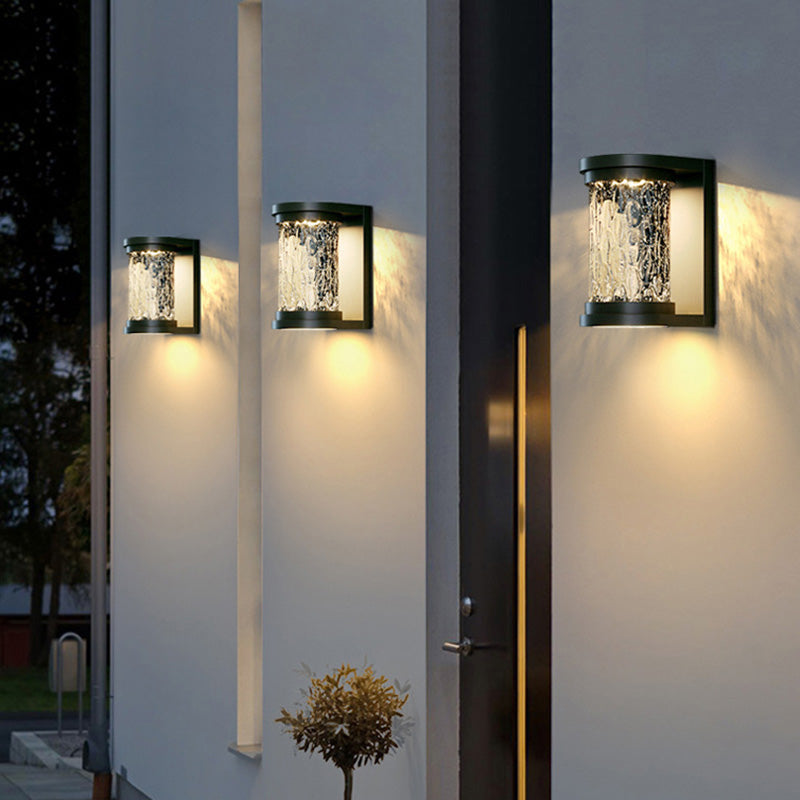 مصباح حائط LED أسطواني زجاجي من الفولاذ المقاوم للصدأ مقاوم للماء وعصري فاخر للفناء الخارجي
