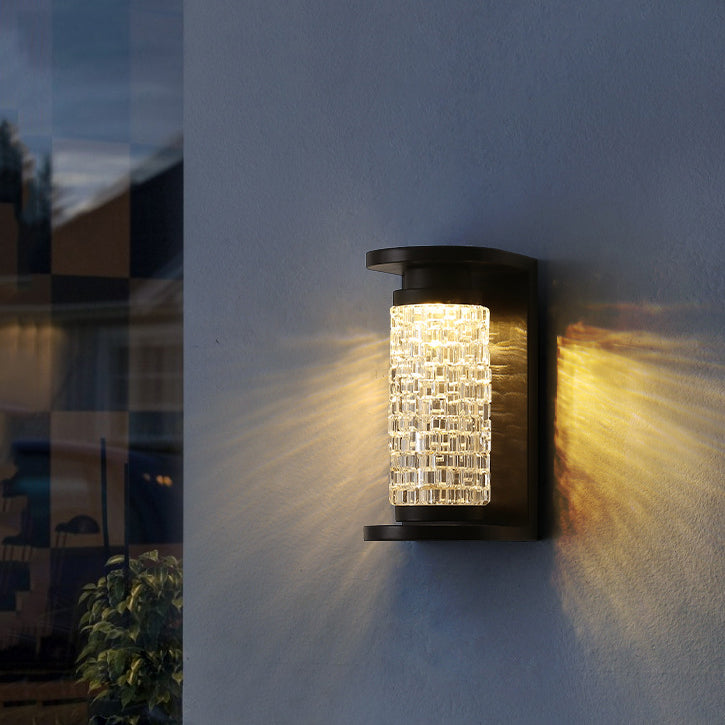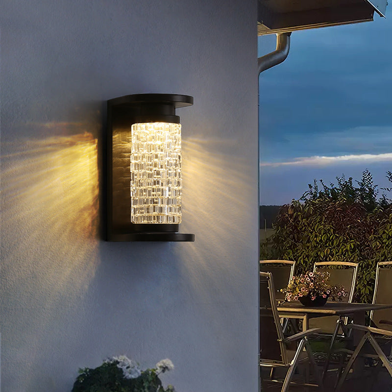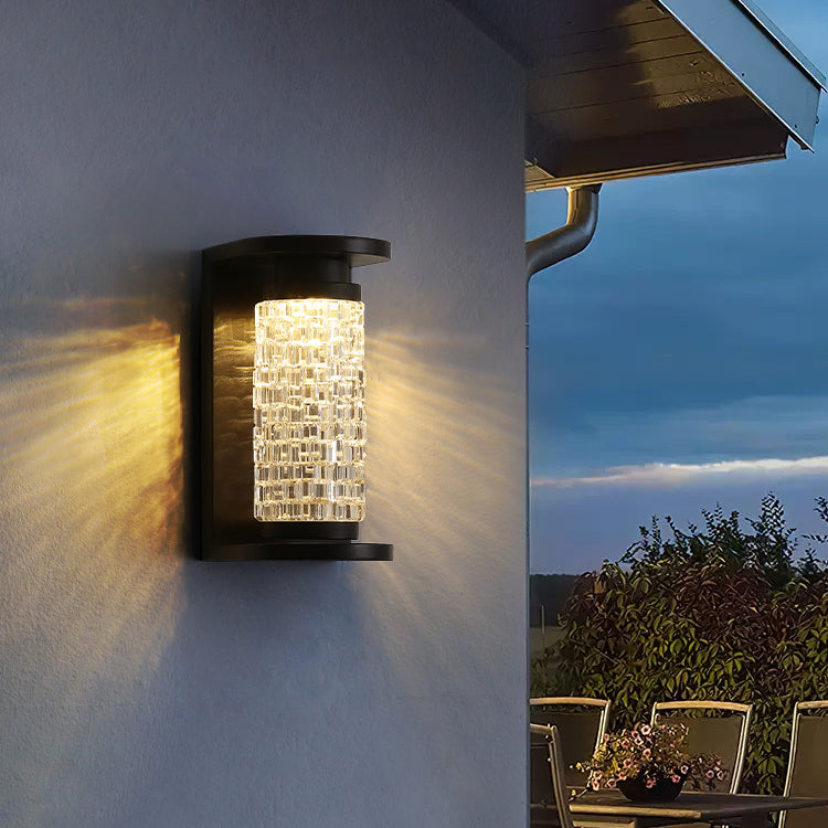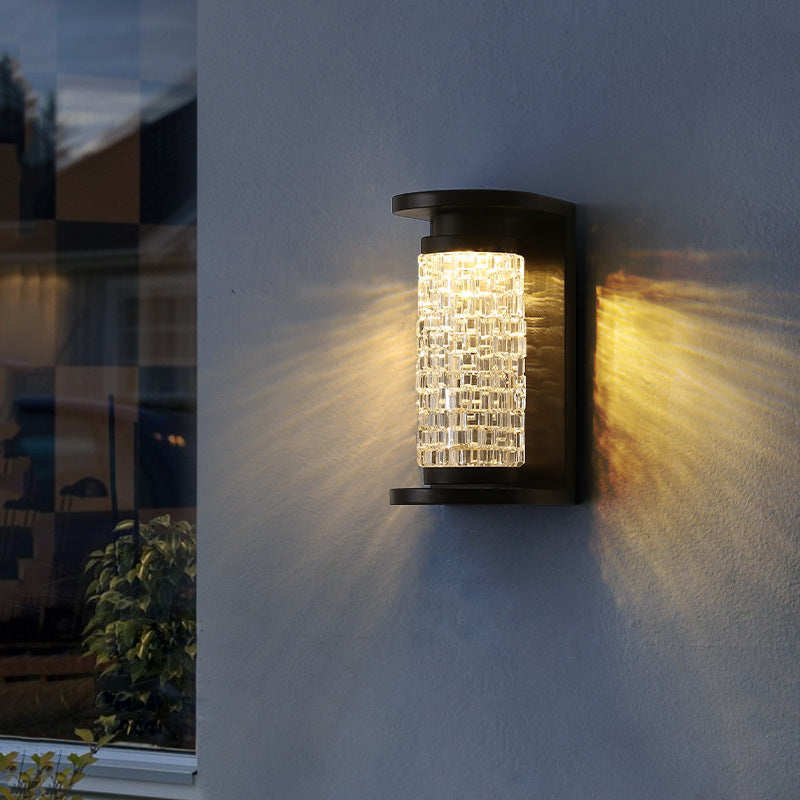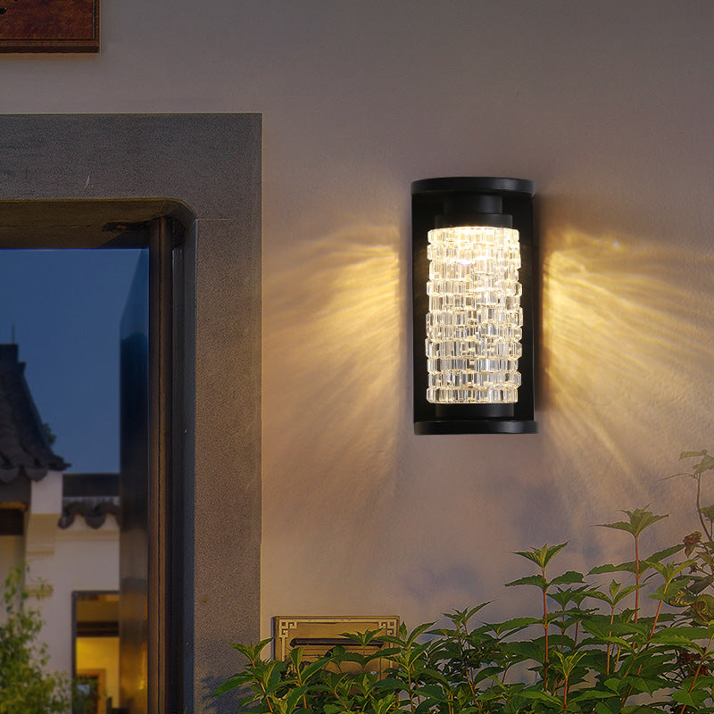 مصباح جداري LED أسطواني الشكل مصنوع من الفولاذ المقاوم للصدأ بتصميم عصري فاخر مقاوم للماء مصنوع من الكريستال الأكريليكي للفناء الخارجي