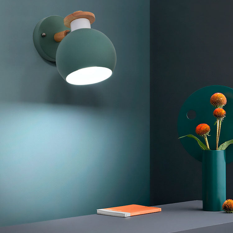 مصباح حائط دائري عصري من خشب الحديد بتصميم ماكارون، مزود بمصباح واحد
