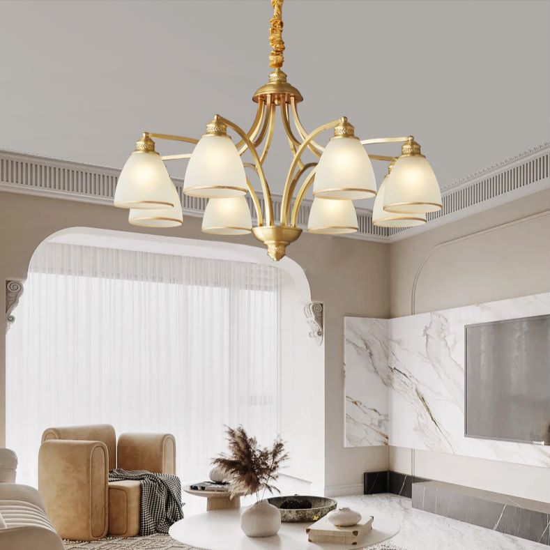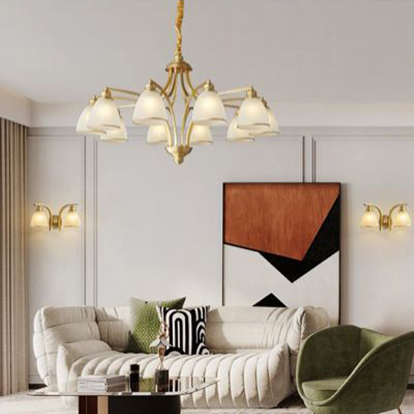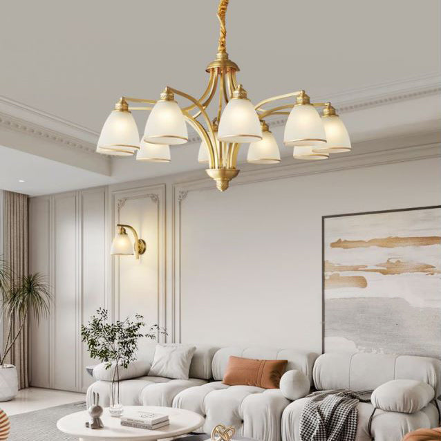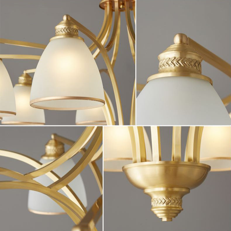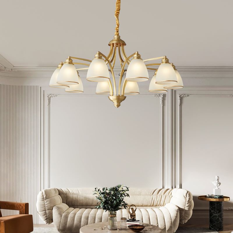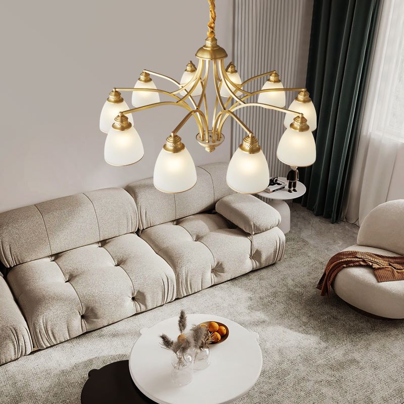 ثريات زجاجية نحاسية حديثة من منتصف القرن، 3/5/6/8/10 مصابيح لغرفة المعيشة