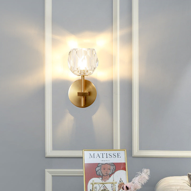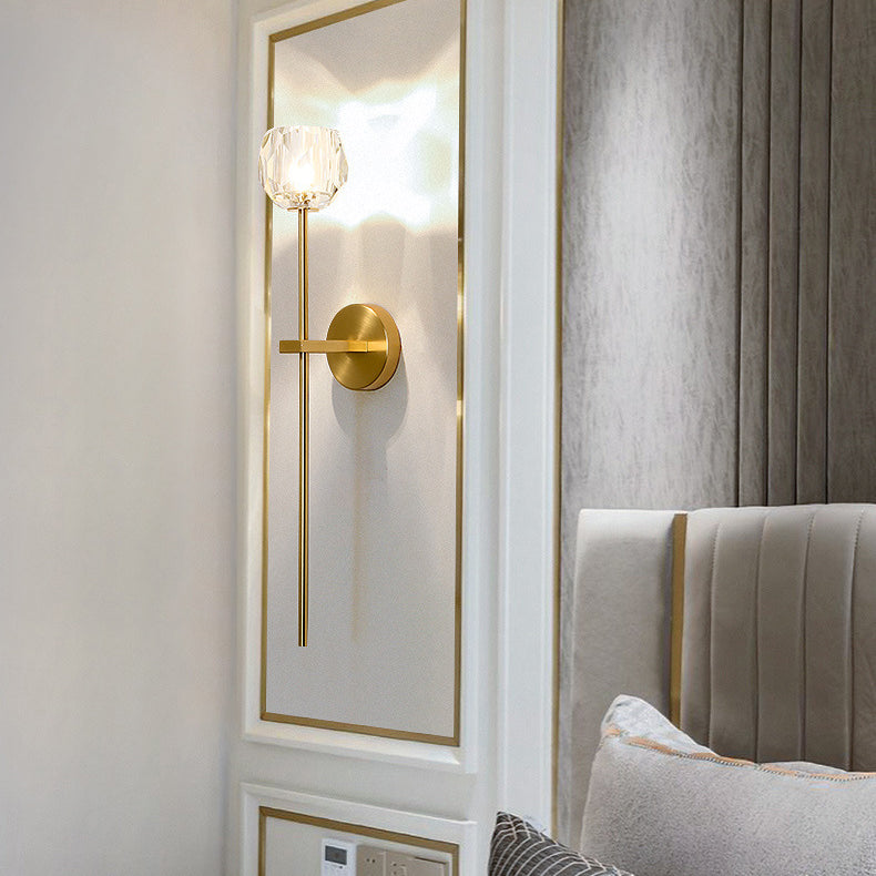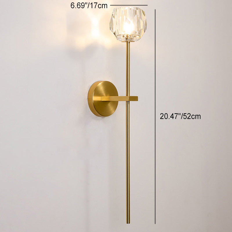 مصباح حائطي عصري من منتصف القرن مصنوع من الحديد المستقيم على شكل كرة بلورية، مزود بإضاءة واحدة، لغرفة المعيشة