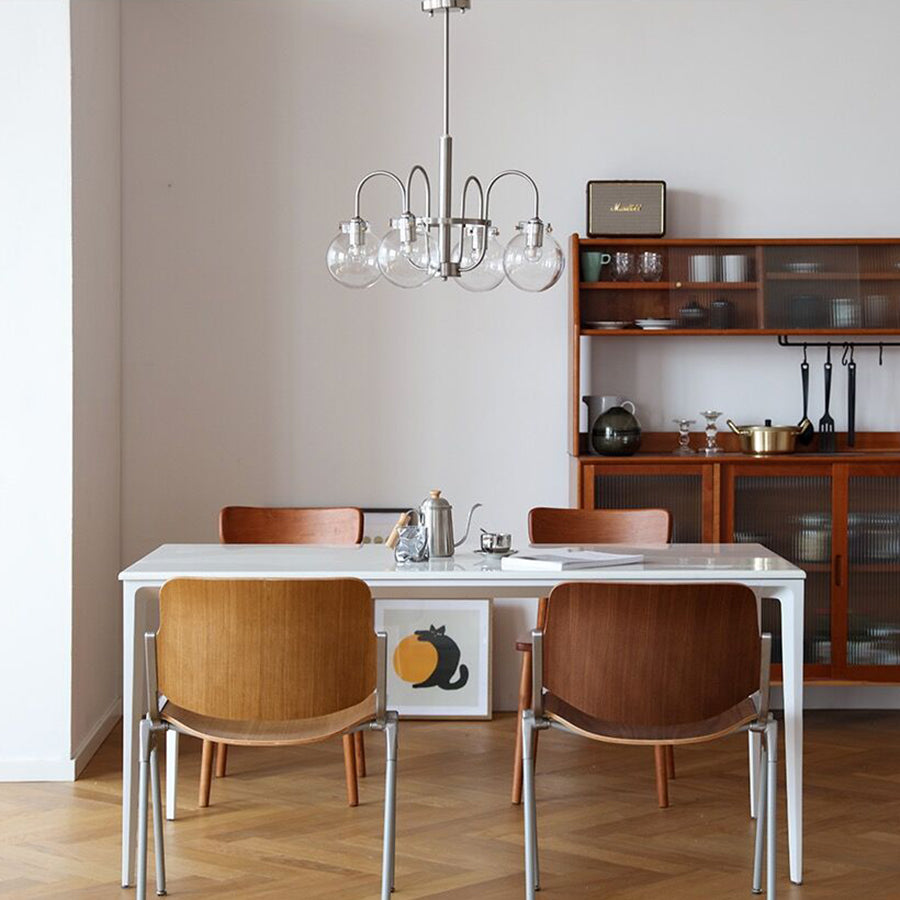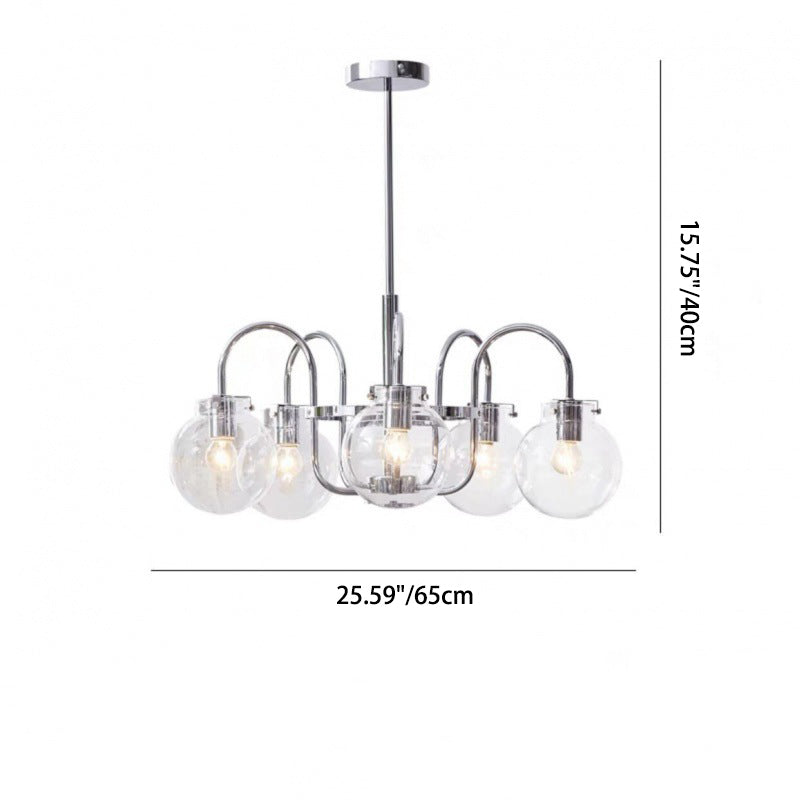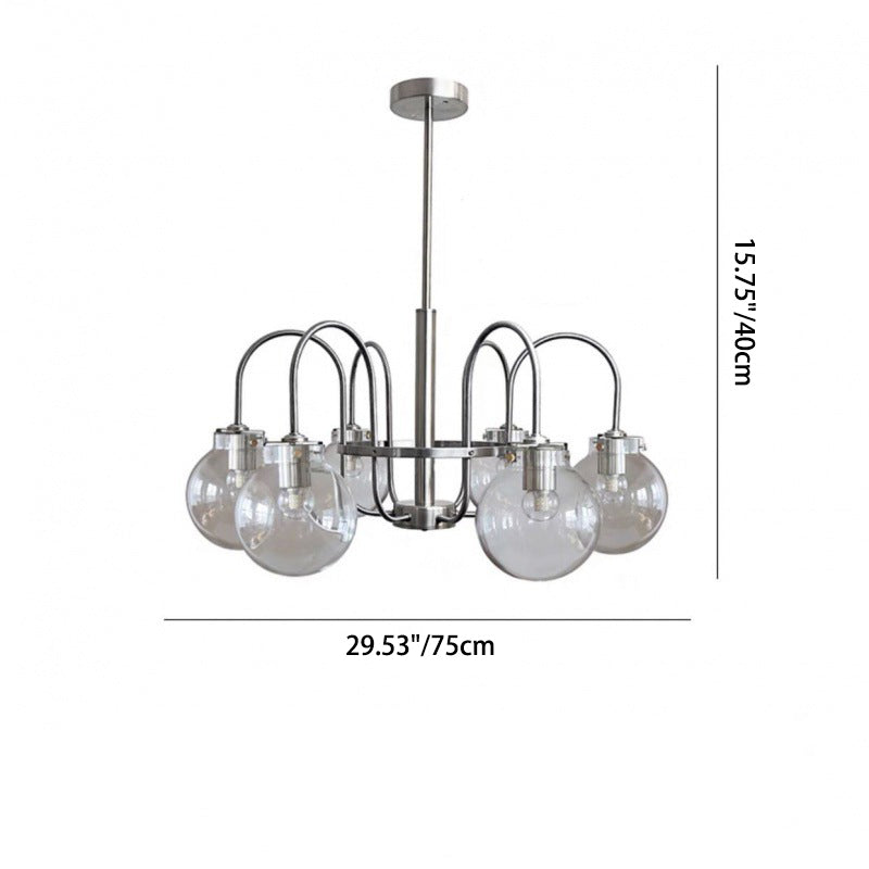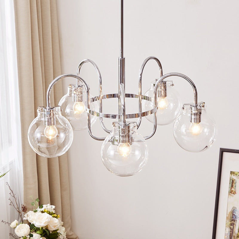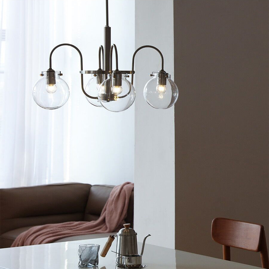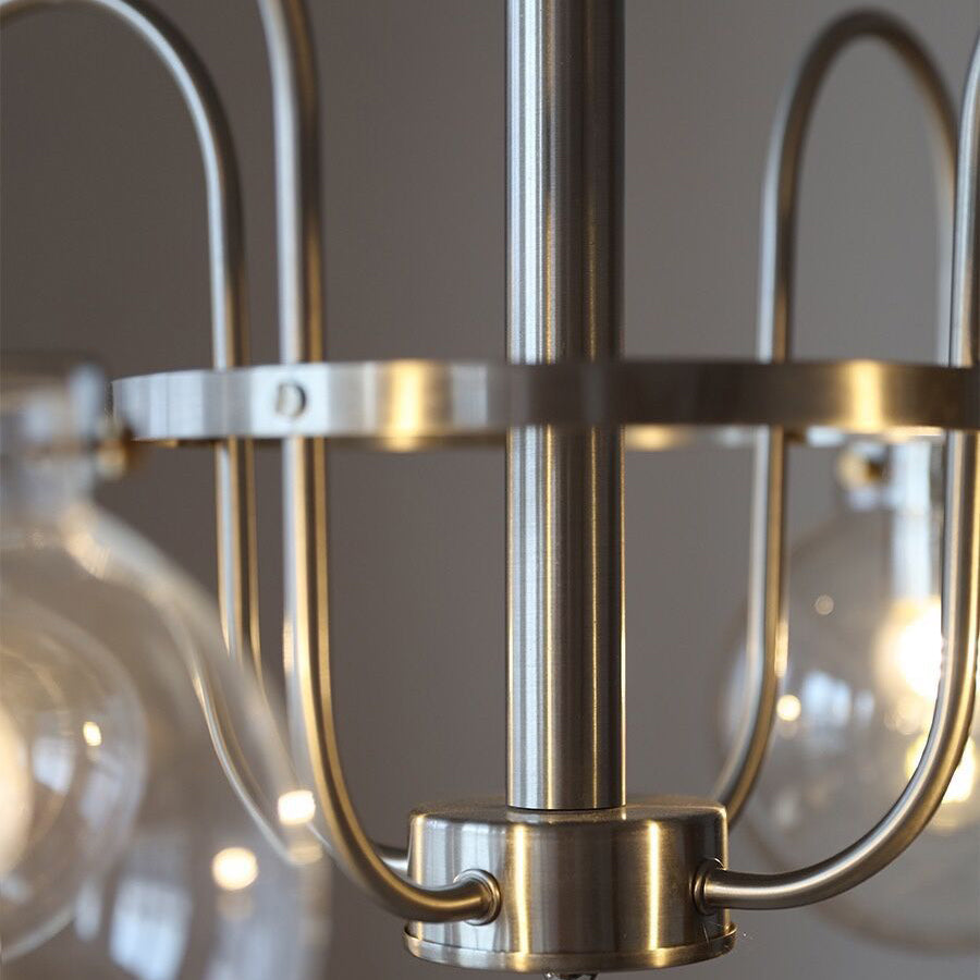 ثريا حديدية حديثة من منتصف القرن، بغطاء كرة زجاجية، 4/5/6 مصابيح لغرفة المعيشة