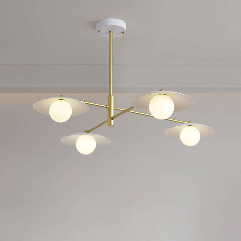 ثريا عصرية من منتصف القرن مصنوعة من الحديد والزجاج، بأربعة مصابيح، لغرفة المعيشة
