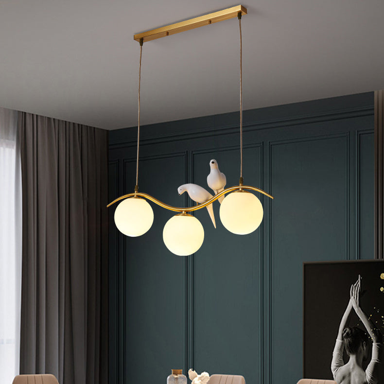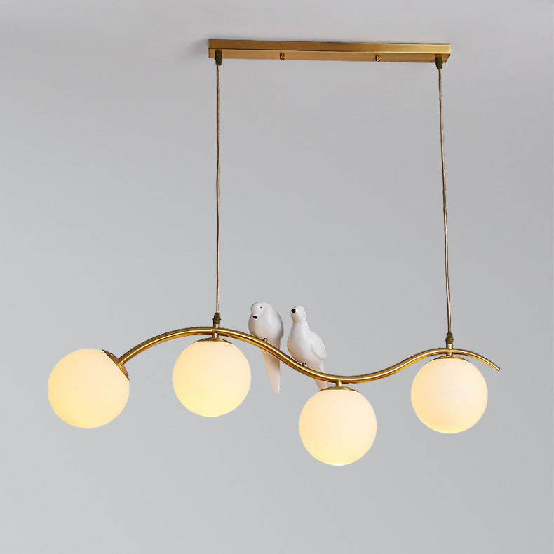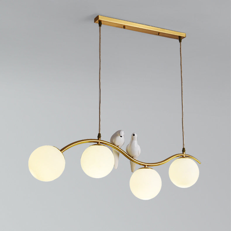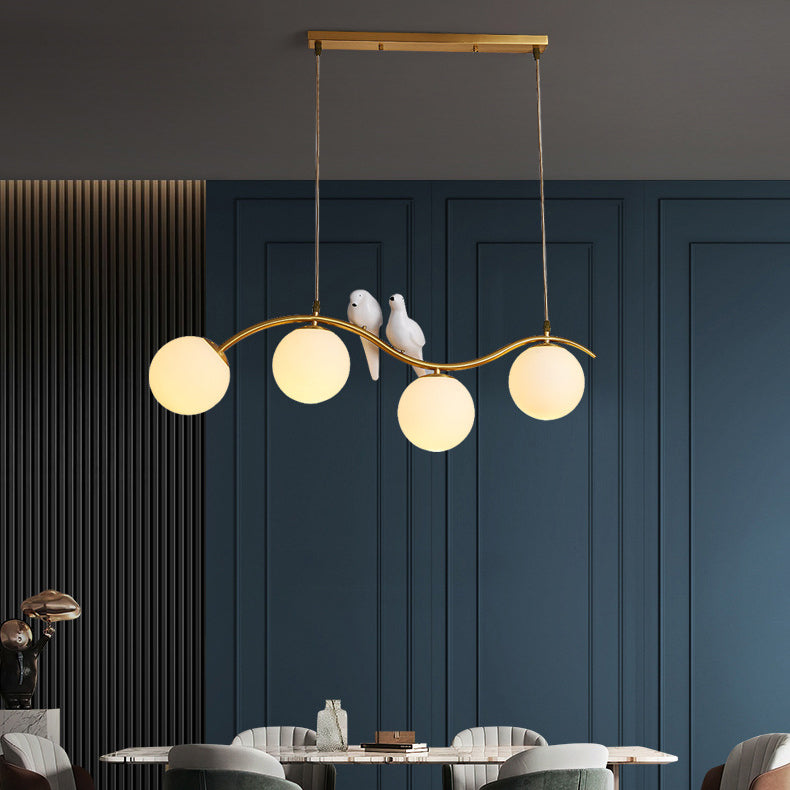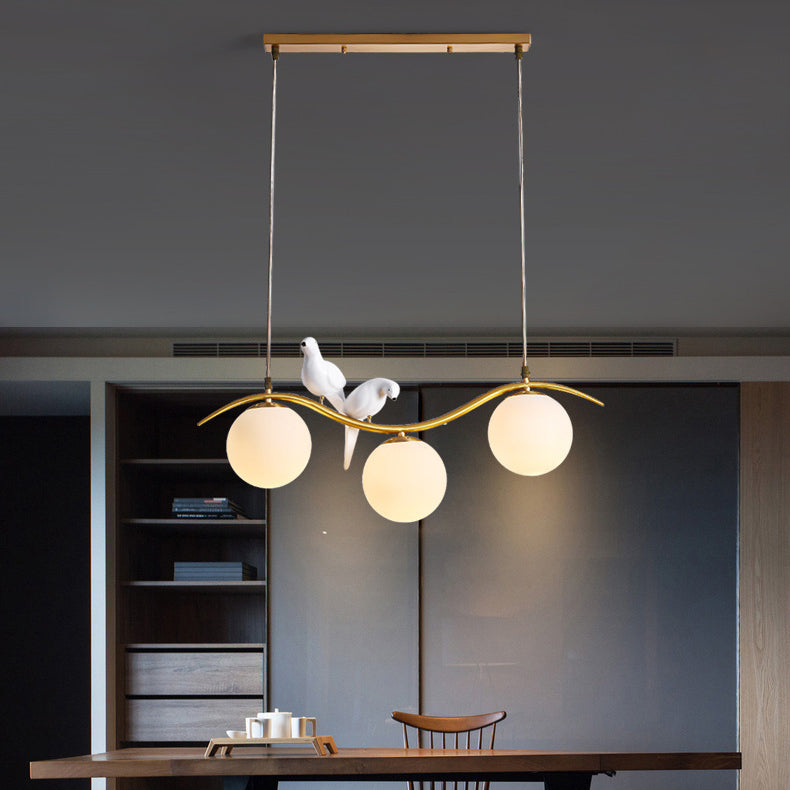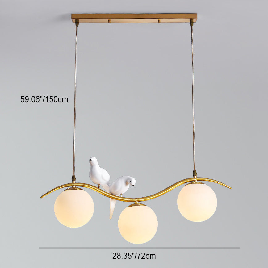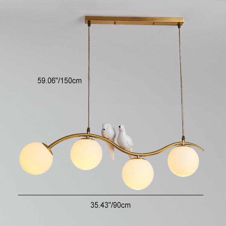 ثريا جزيرة حديثة من منتصف القرن على شكل طائر كروي من النحاس والزجاج بإضاءة 3/4 لغرفة الطعام