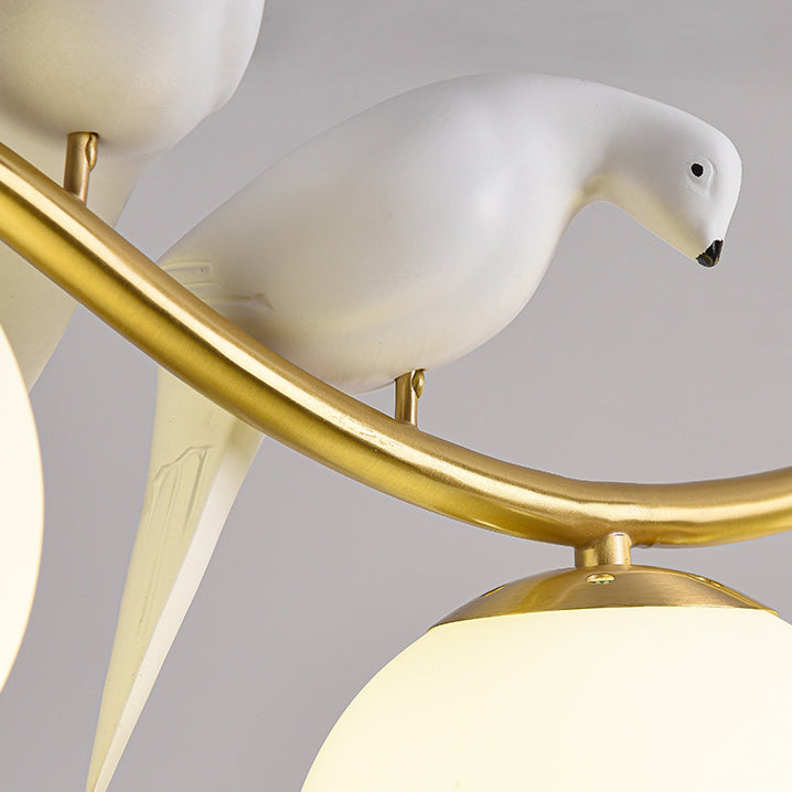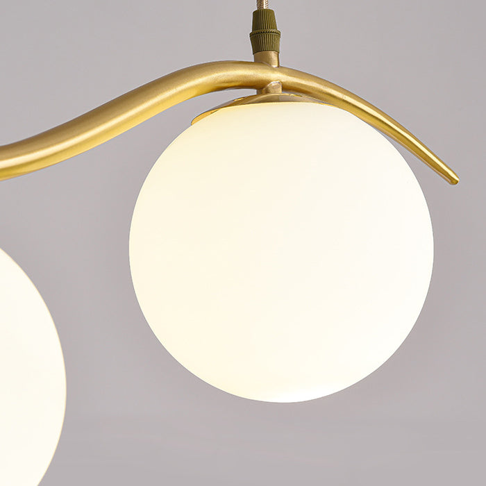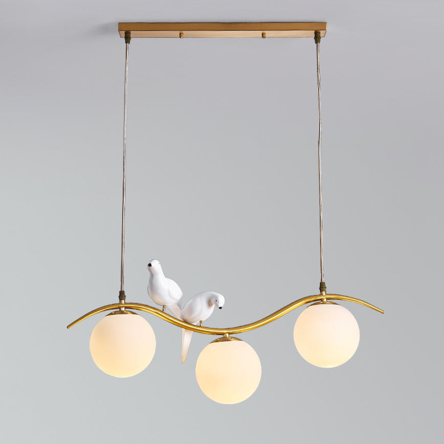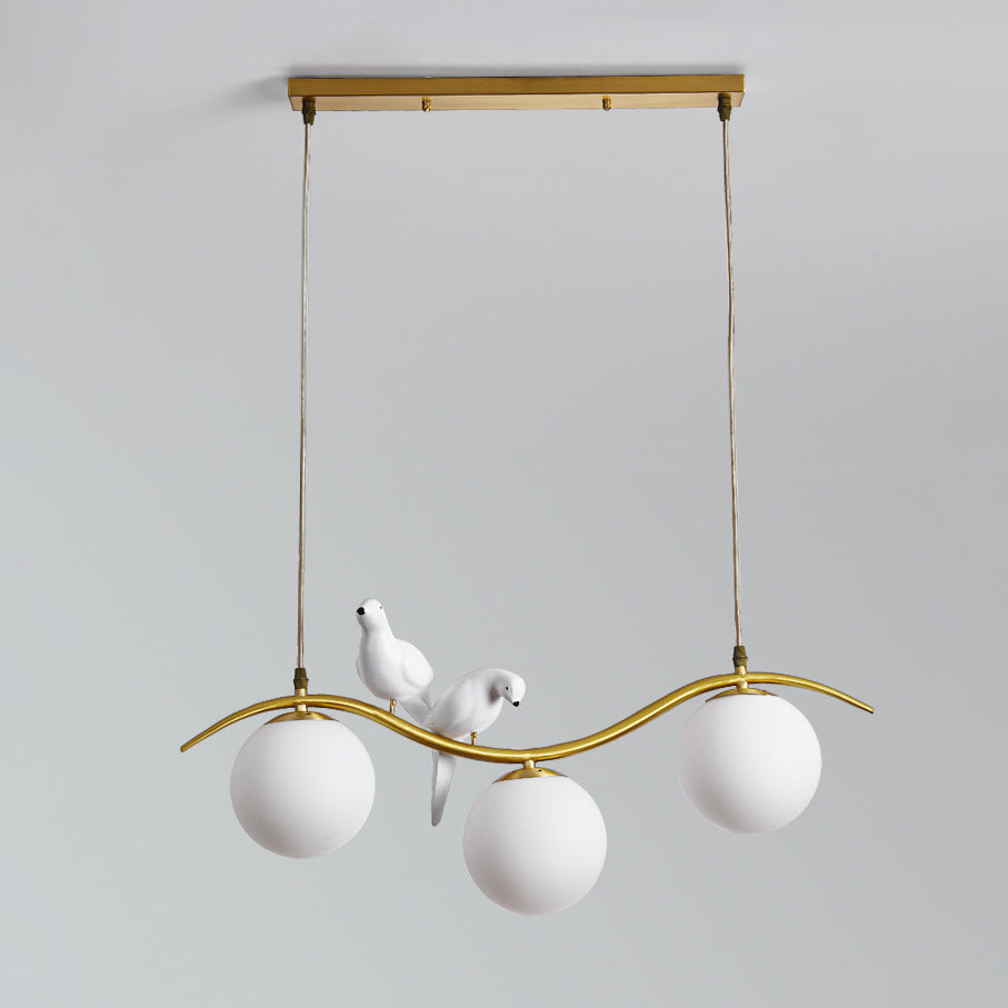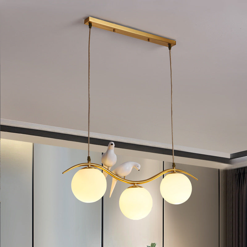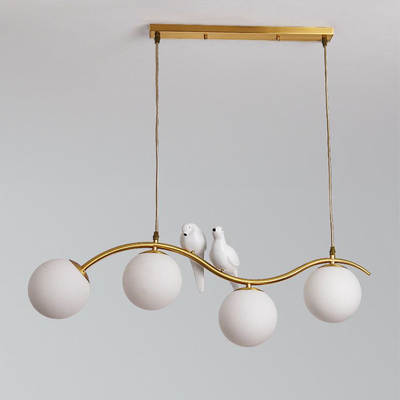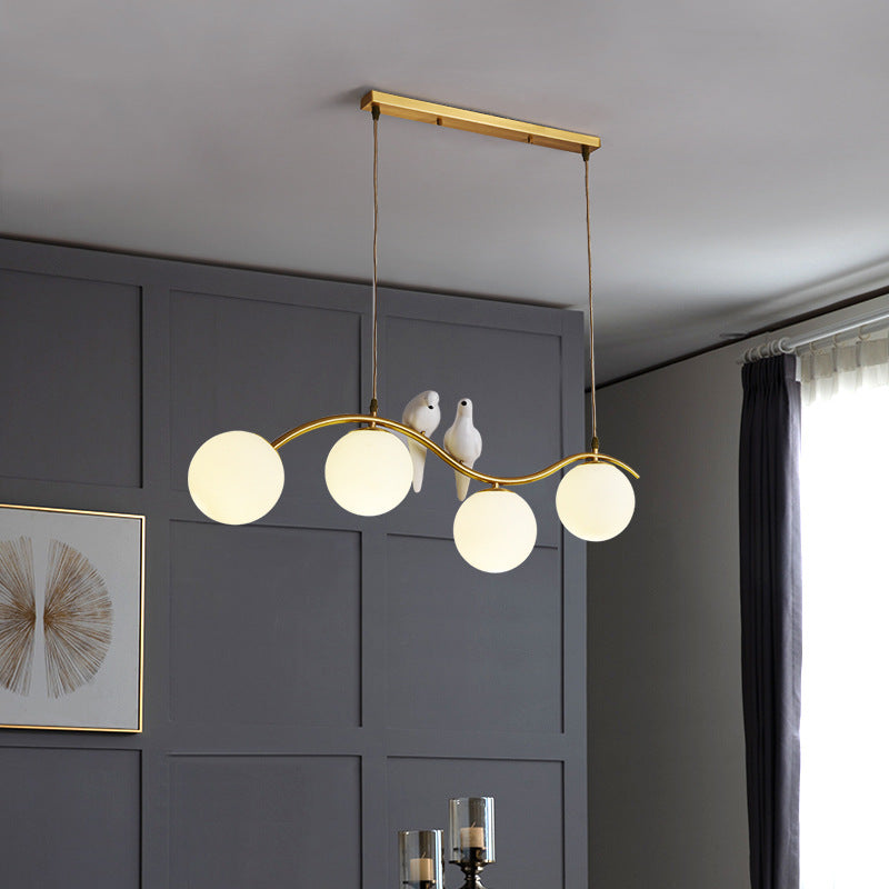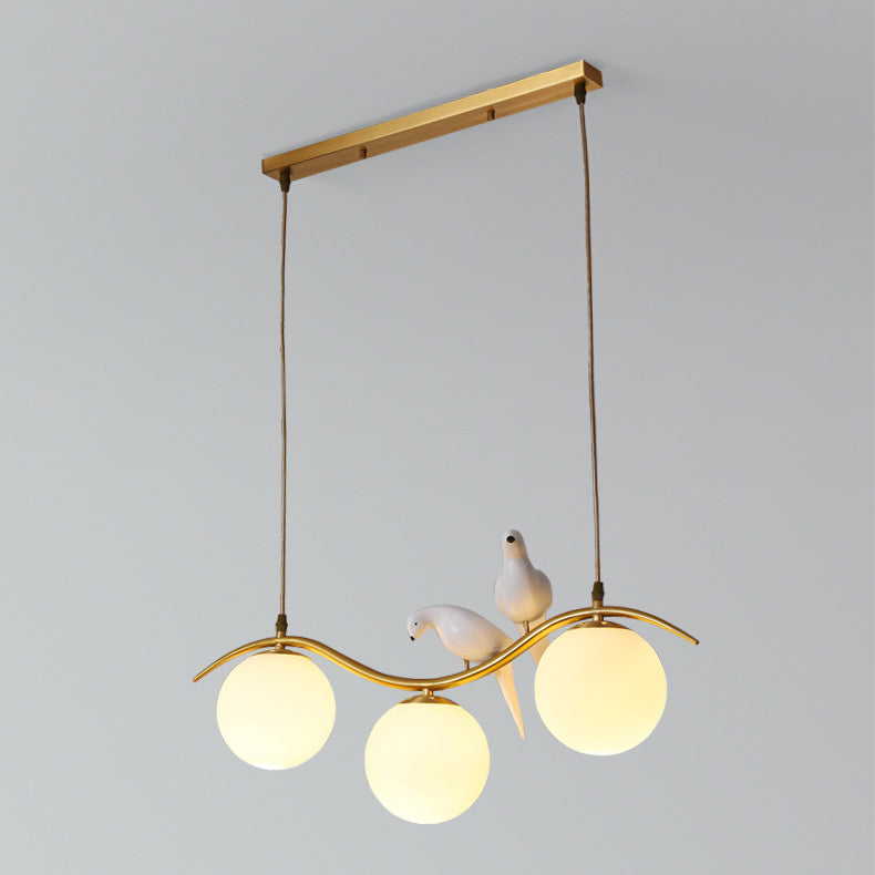 ثريا جزيرة حديثة من منتصف القرن على شكل طائر كروي من النحاس والزجاج بإضاءة 3/4 لغرفة الطعام