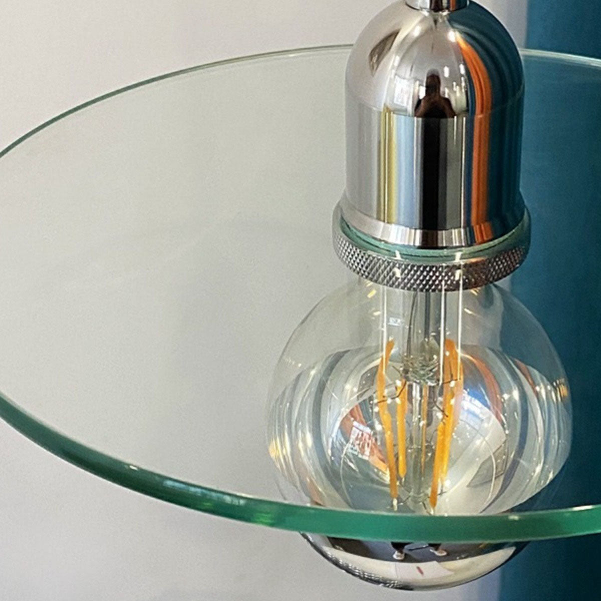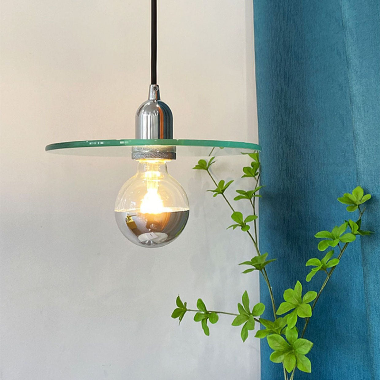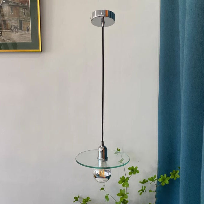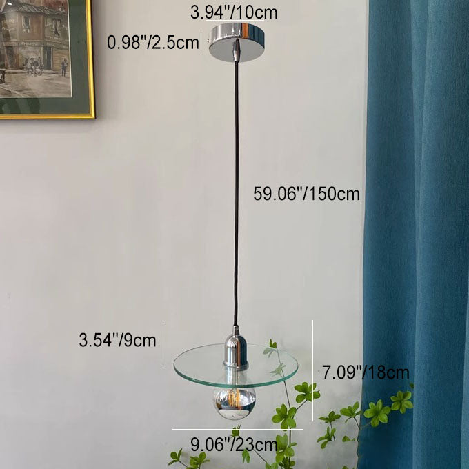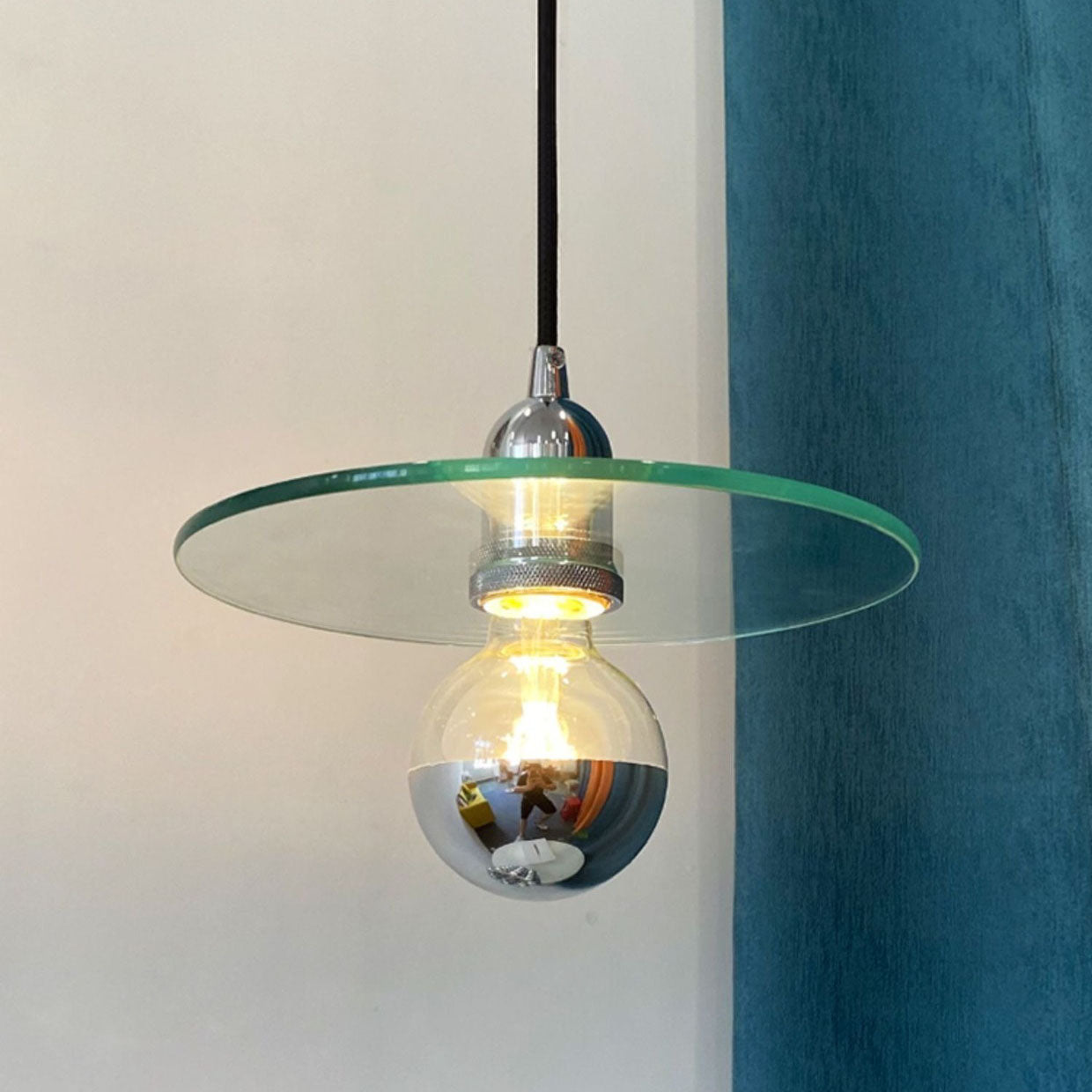 مصباح معلق حديث من منتصف القرن مصنوع من الحديد والزجاج على شكل قرص دائري، مزود بمصباح واحد لغرفة المعيشة