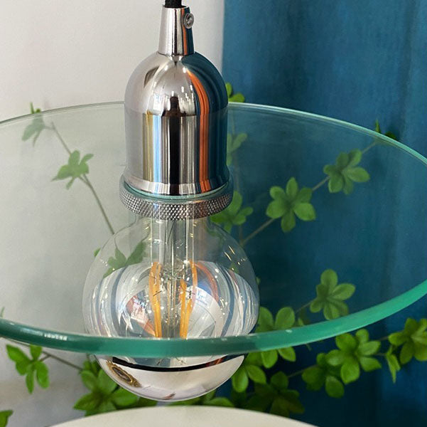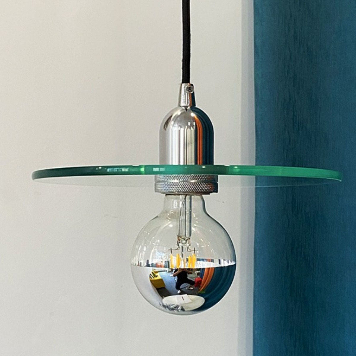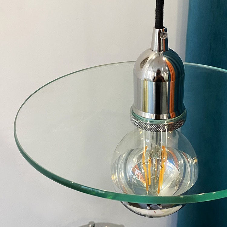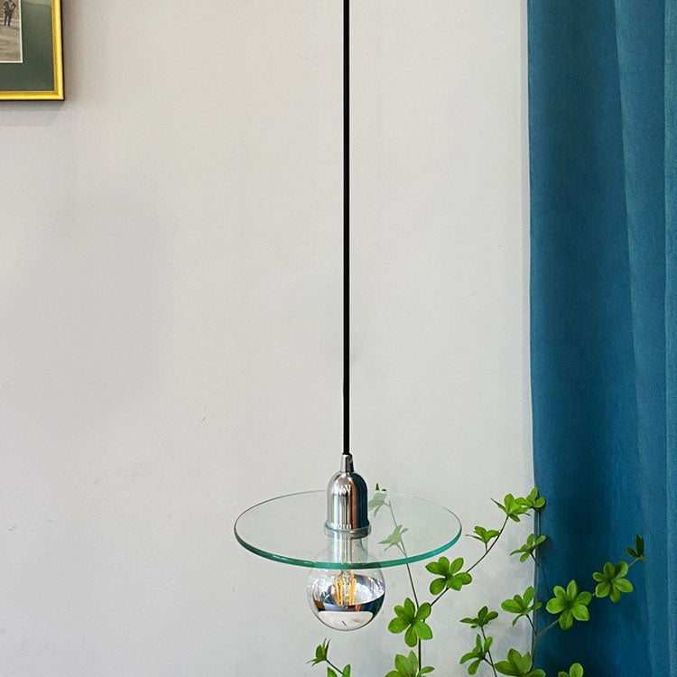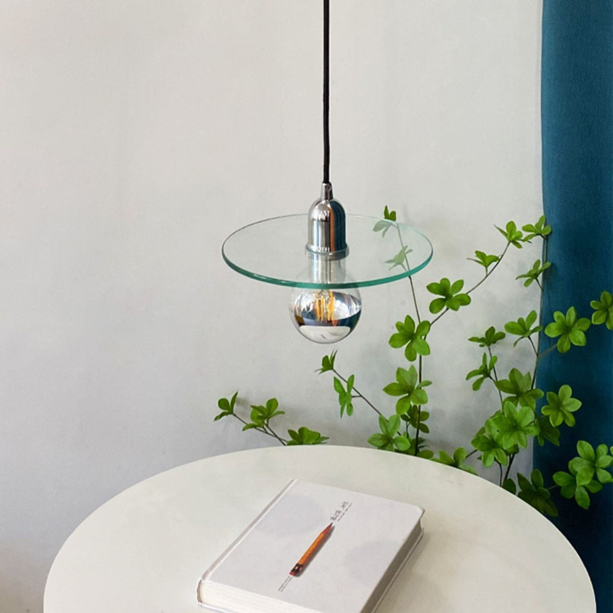 مصباح معلق حديث من منتصف القرن مصنوع من الحديد والزجاج على شكل قرص دائري، مزود بمصباح واحد لغرفة المعيشة