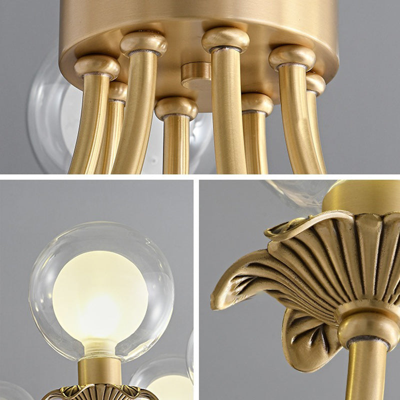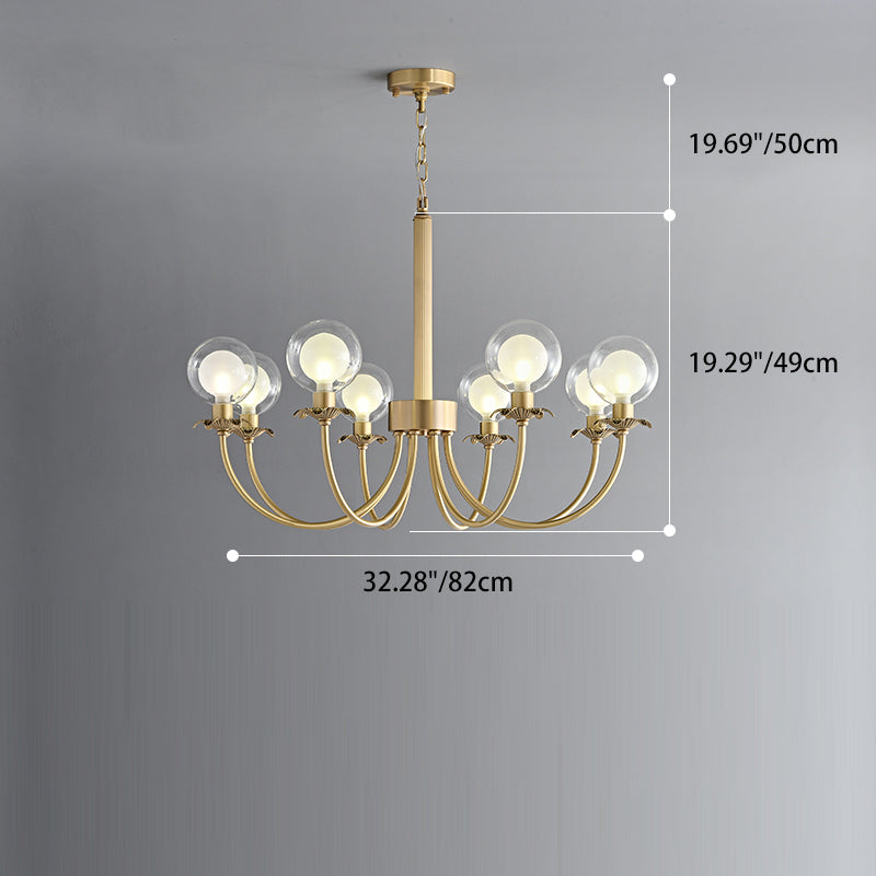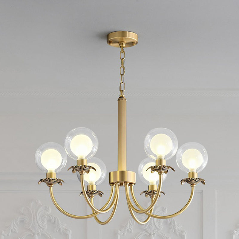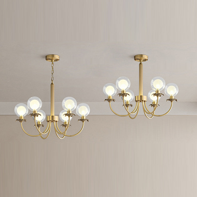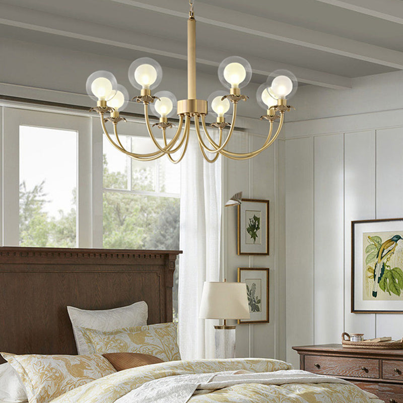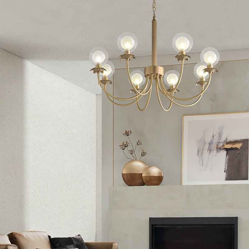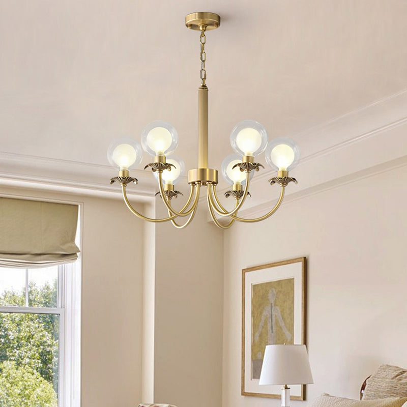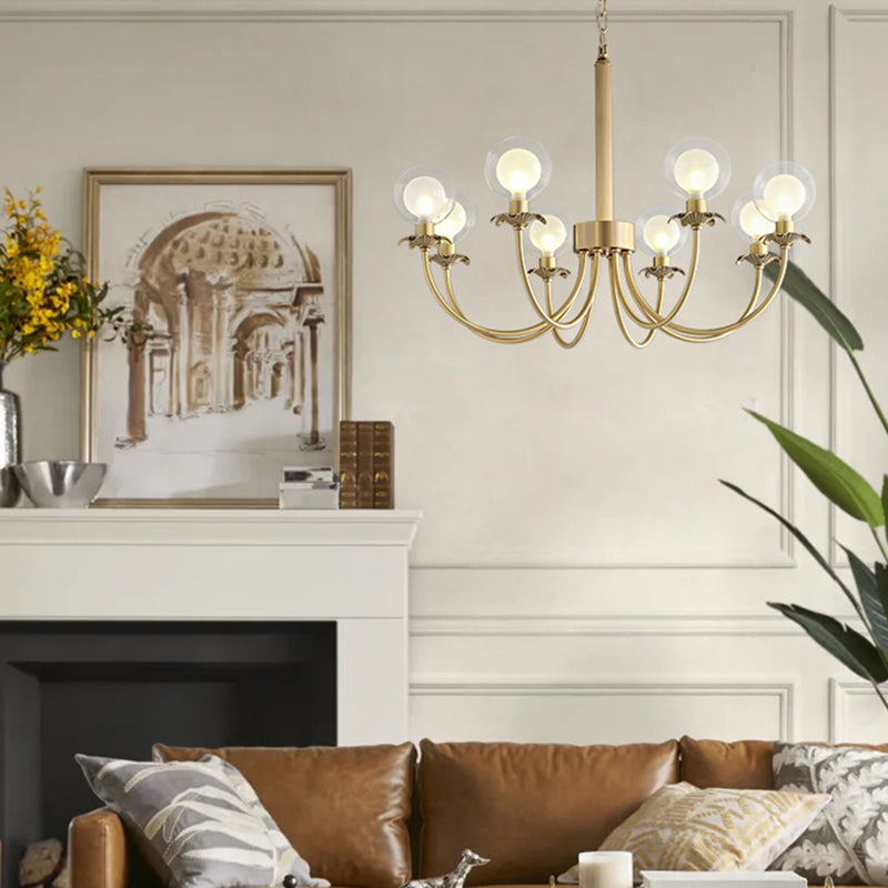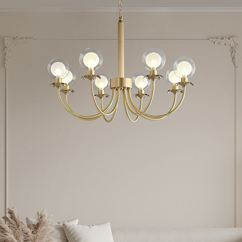ثريا زجاجية نحاسية دائرية حديثة من منتصف القرن، 6/8 ضوء لغرفة المعيشة