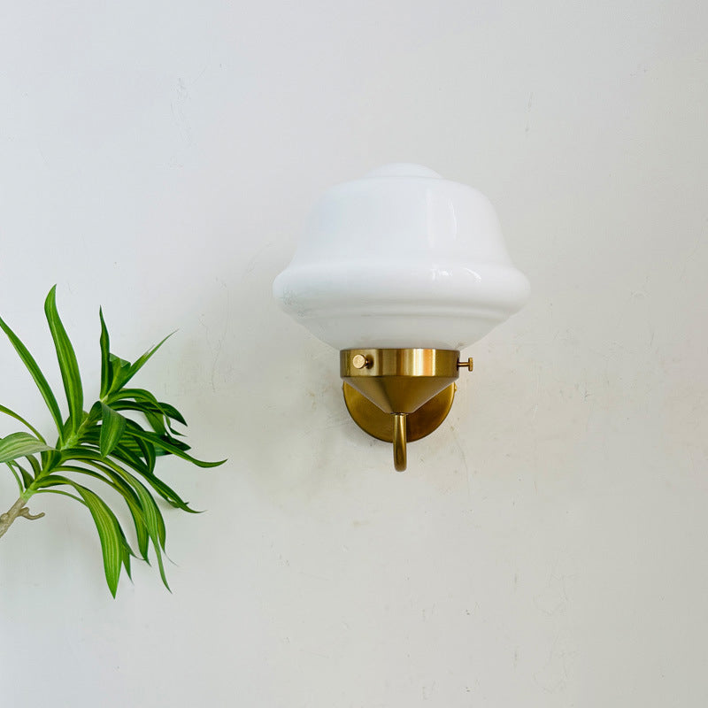 مصباح حائطي حديث من منتصف القرن، دائري الشكل، مصنوع من الحديد والزجاج، مزود بإضاءة واحدة، لغرفة النوم