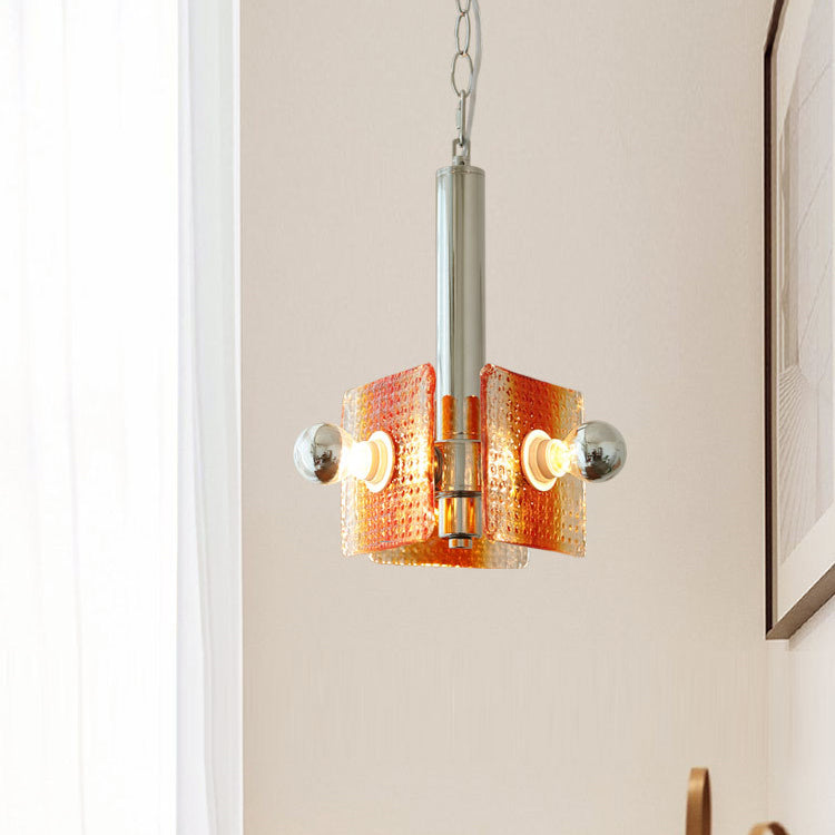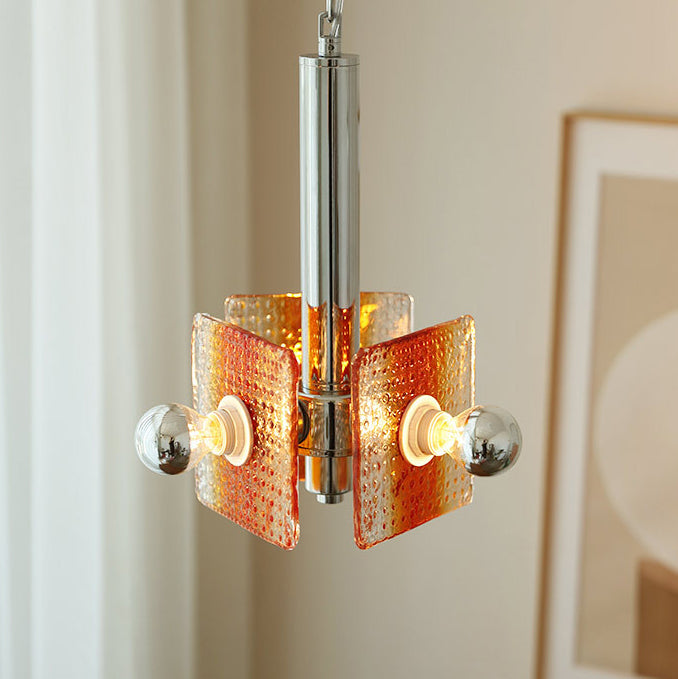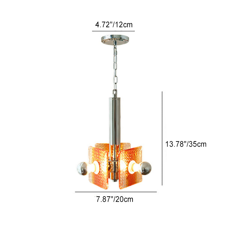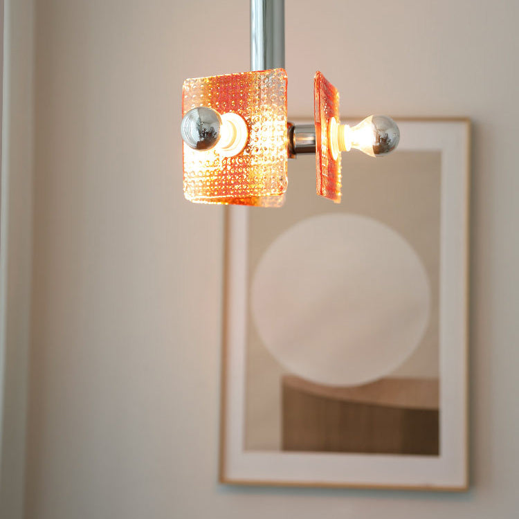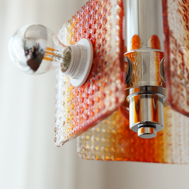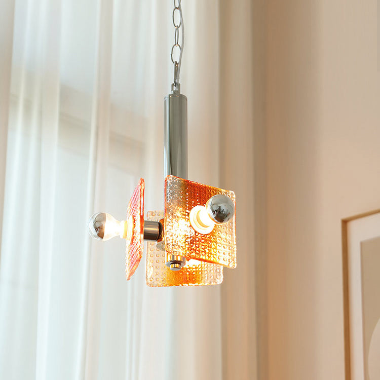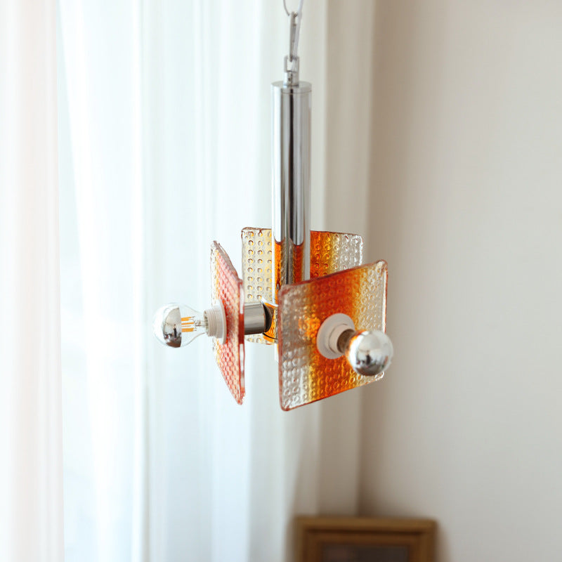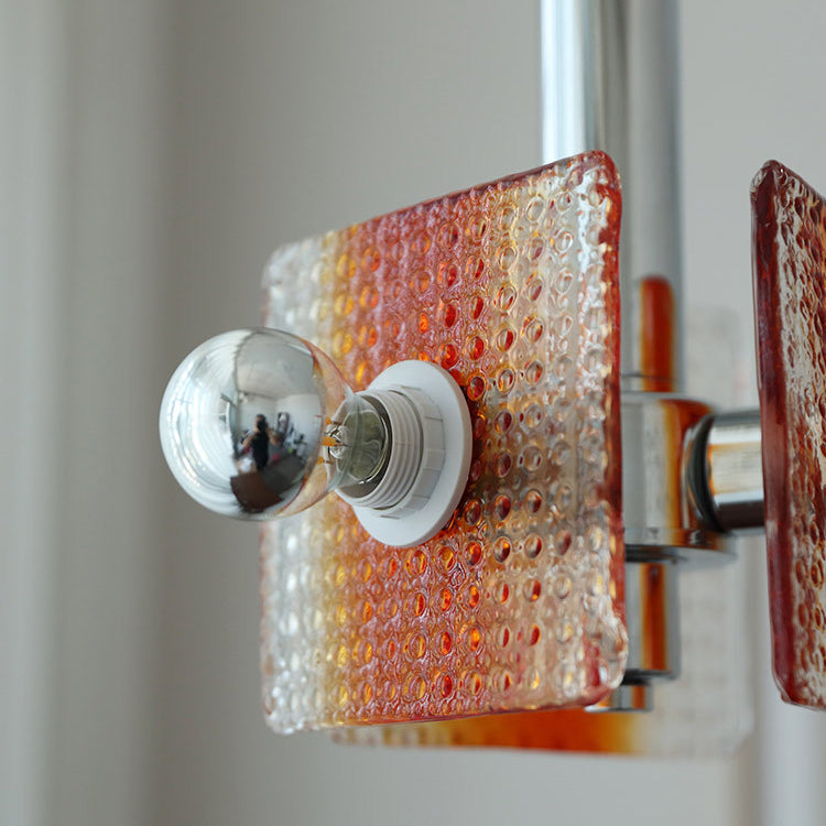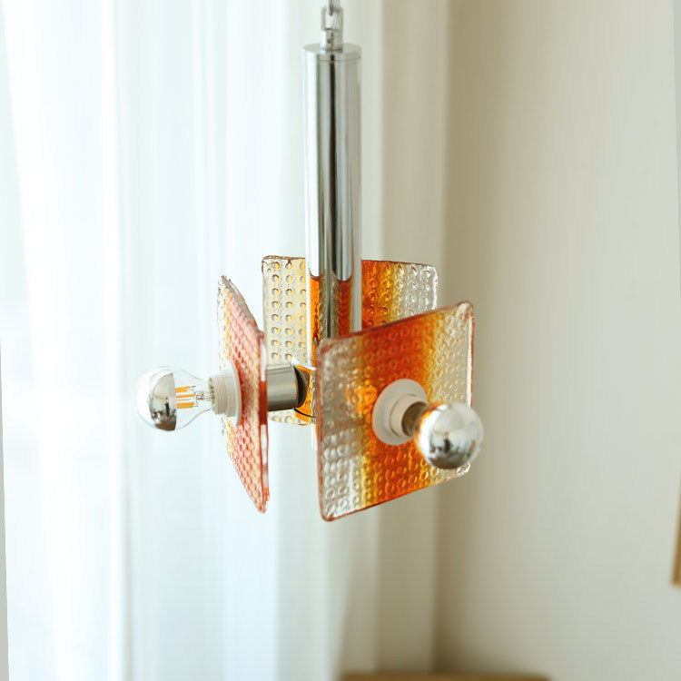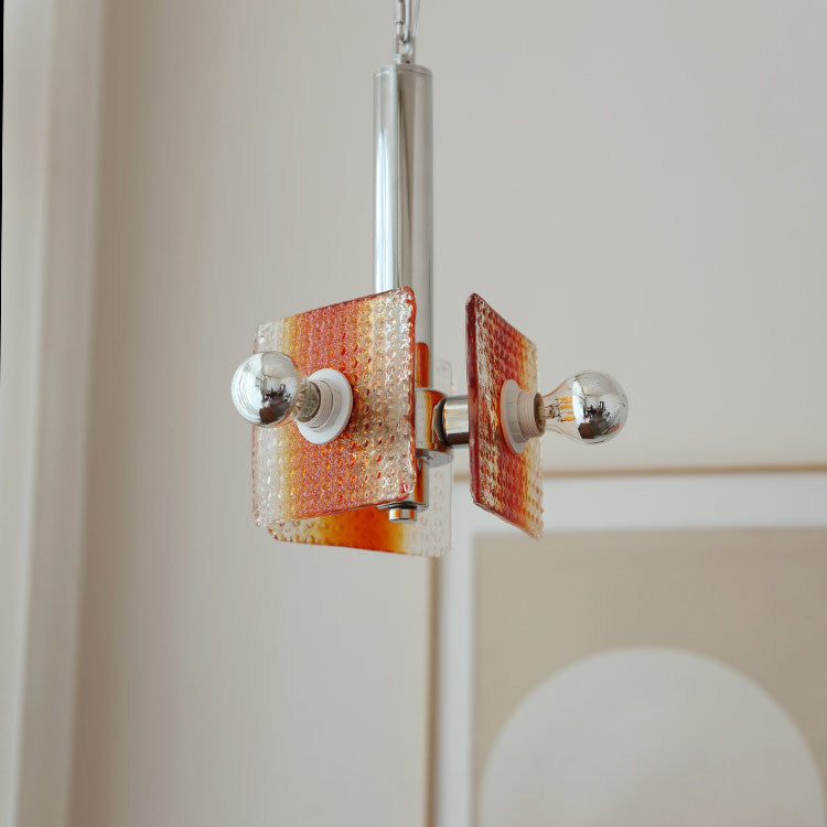 ثريا عصرية من منتصف القرن بتصميم مثلث مربع من الحديد والزجاج بثلاثة مصابيح لغرفة النوم