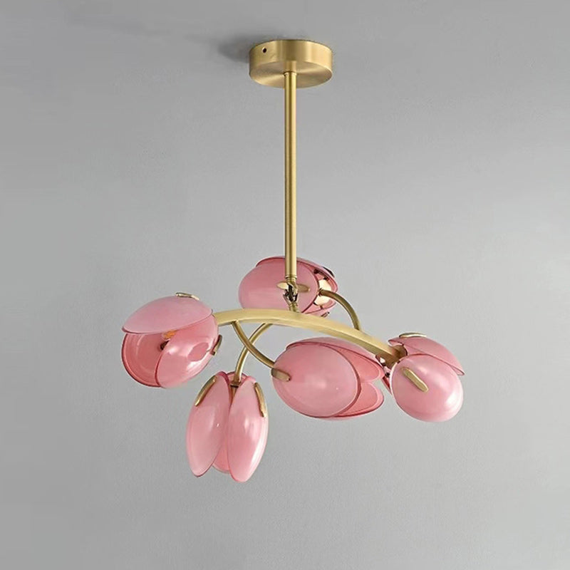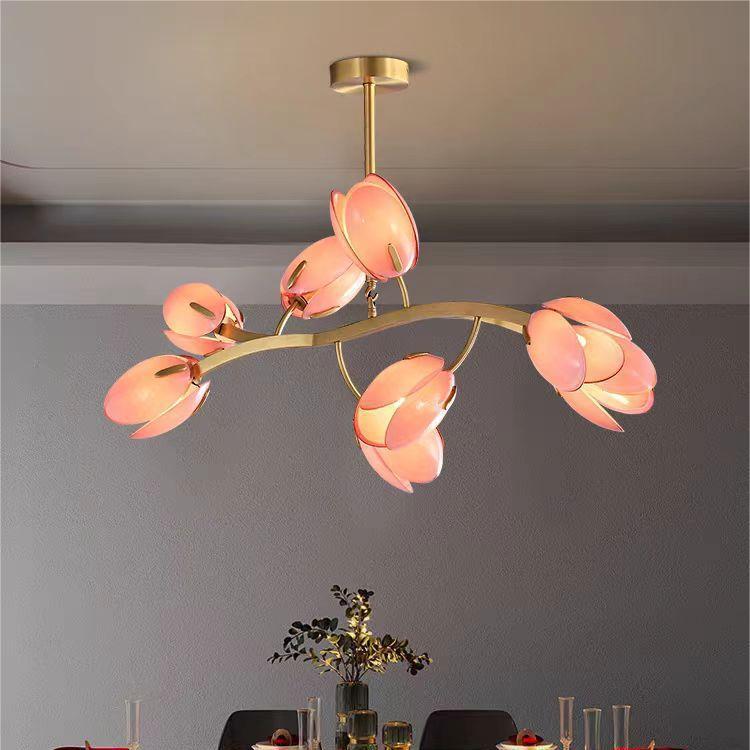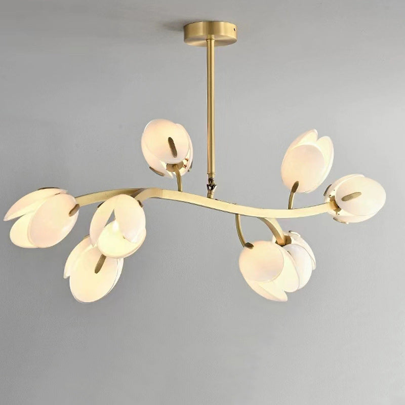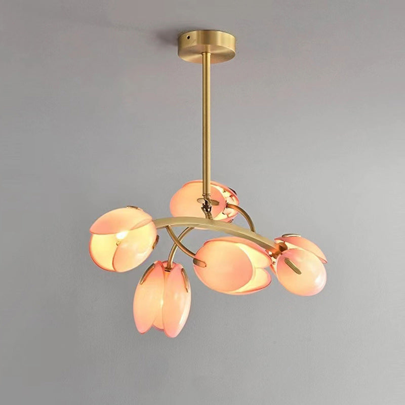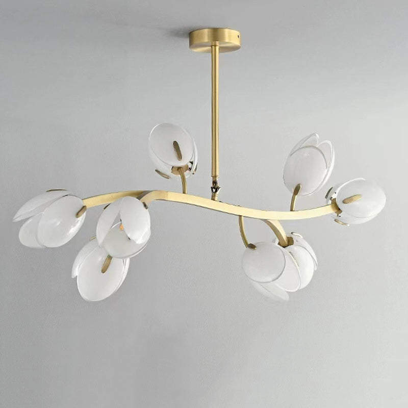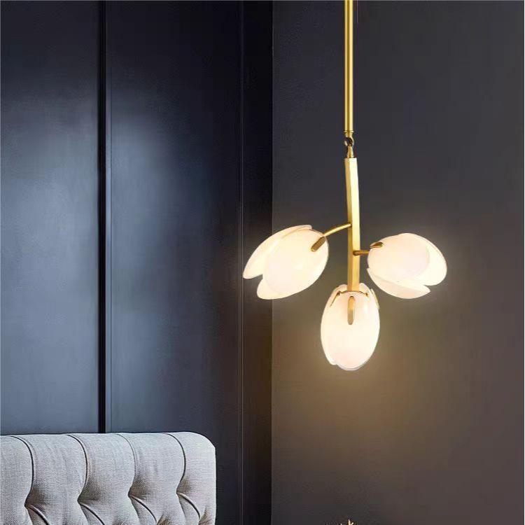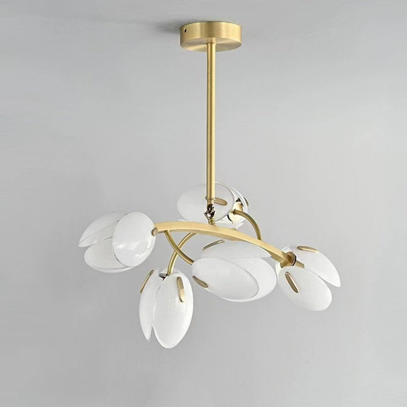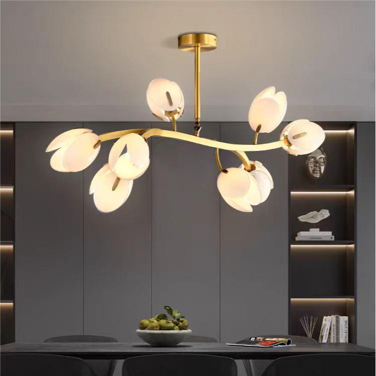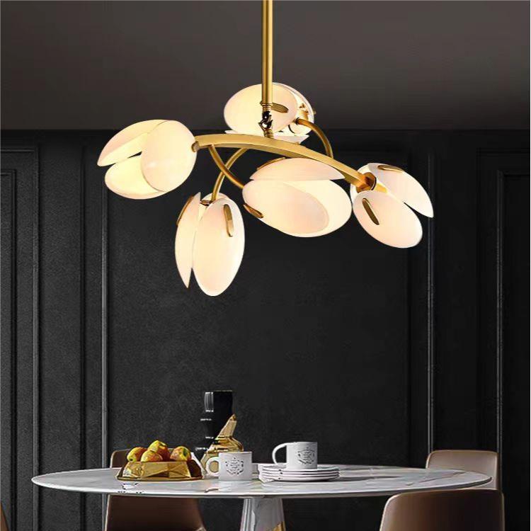 ثريا عصرية بسيطة بإطار نحاسي وغطاء زجاجي 3/5/8 مصابيح لغرفة المعيشة