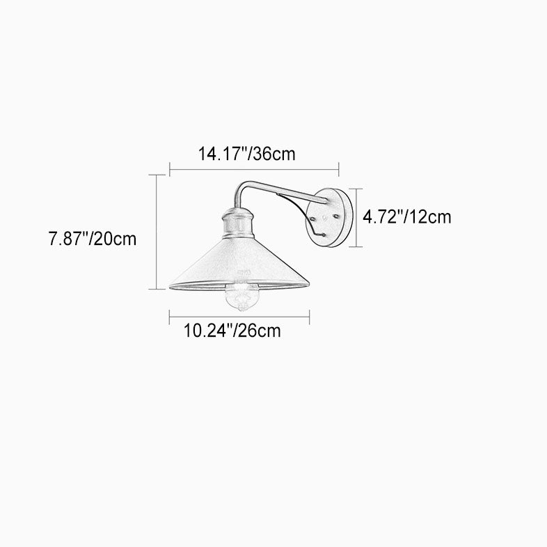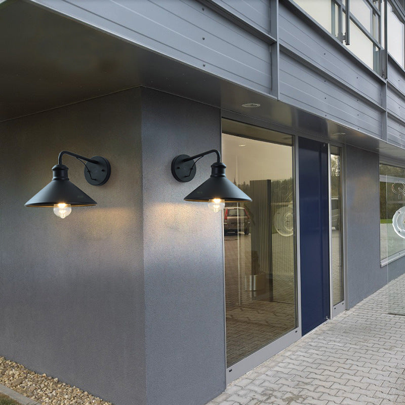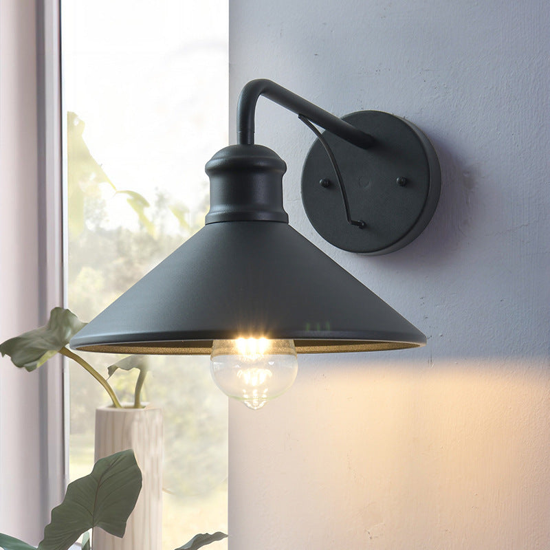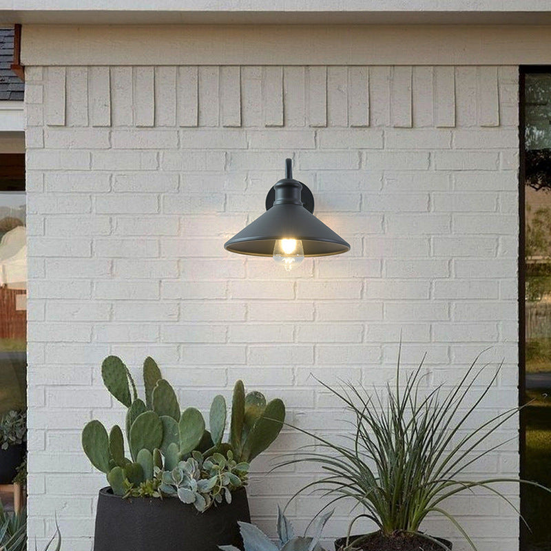 مصباح حائط مخروطي حديدي حديث بسيط بإضاءة واحدة للفناء الخارجي
