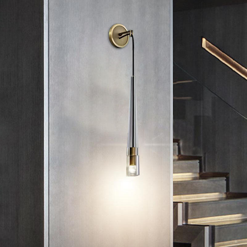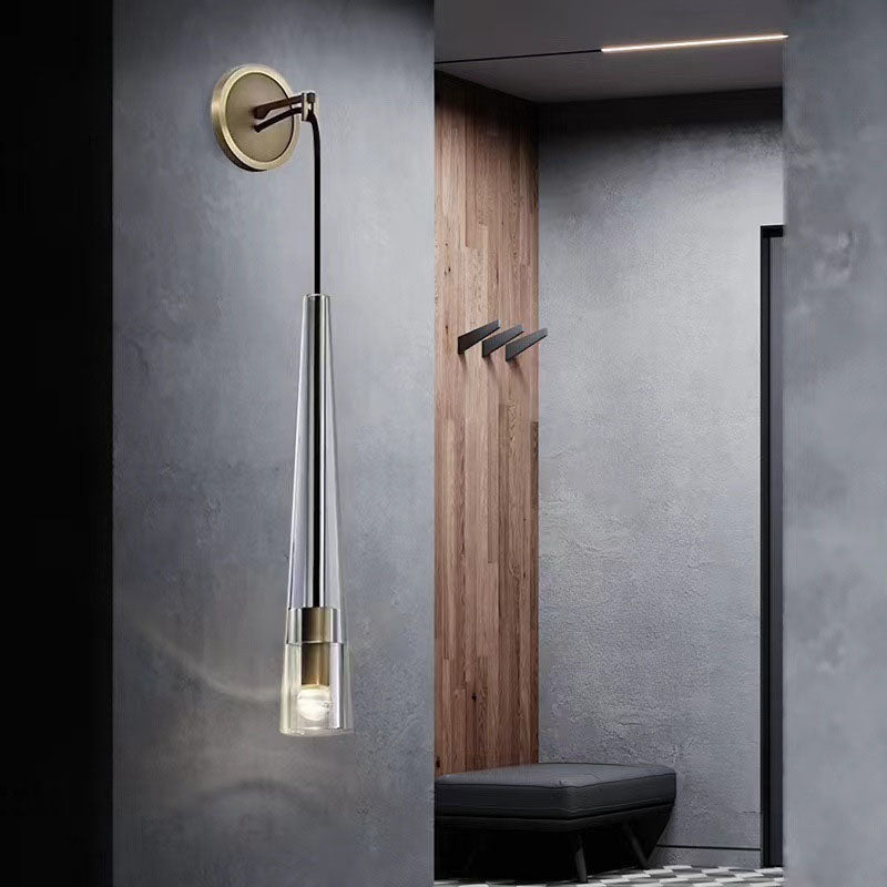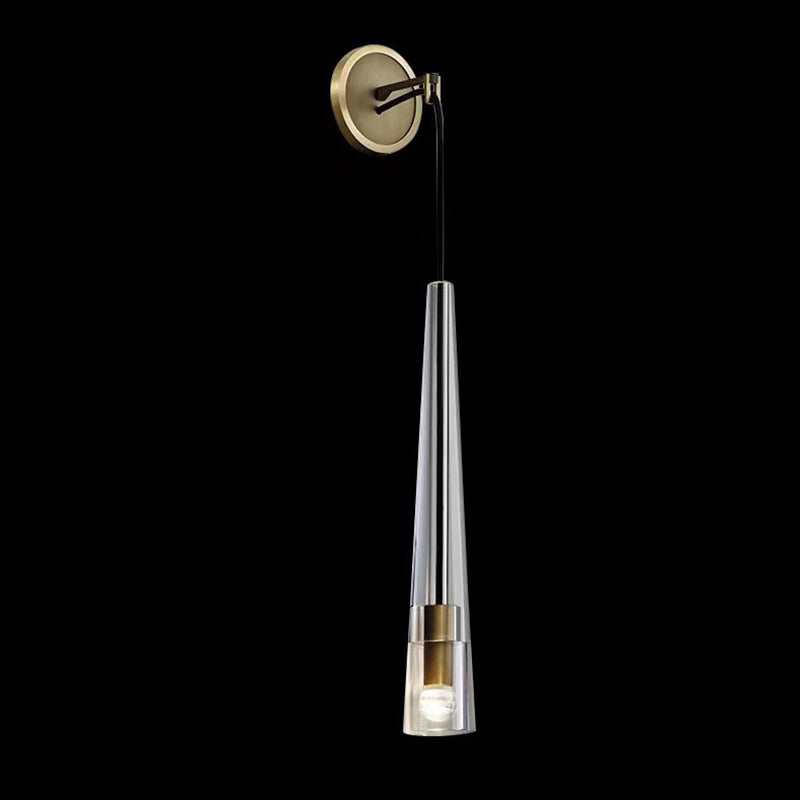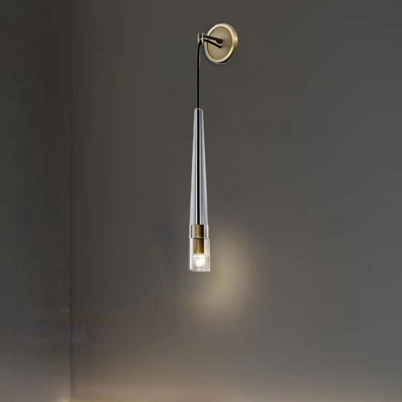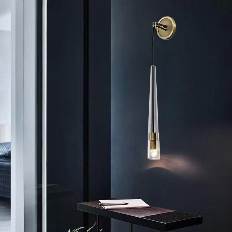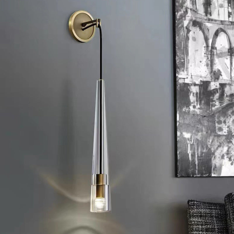مصباح حائطي أسطواني مخروطي حديث بسيط مصنوع من النحاس الكريستالي مزود بإضاءة واحدة لغرفة المعيشة