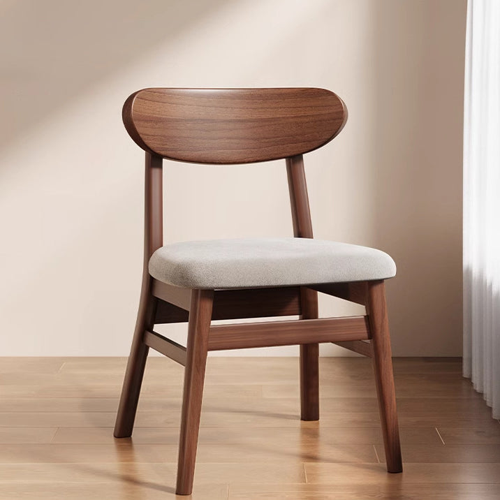 Modern Minimalist Cotton Linen Faux Leather Solid Wood Curved Dining Chair With Backrest For Dining Room