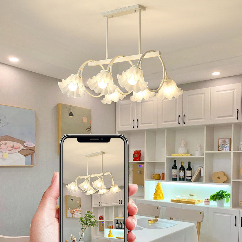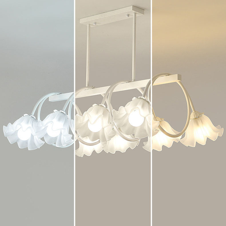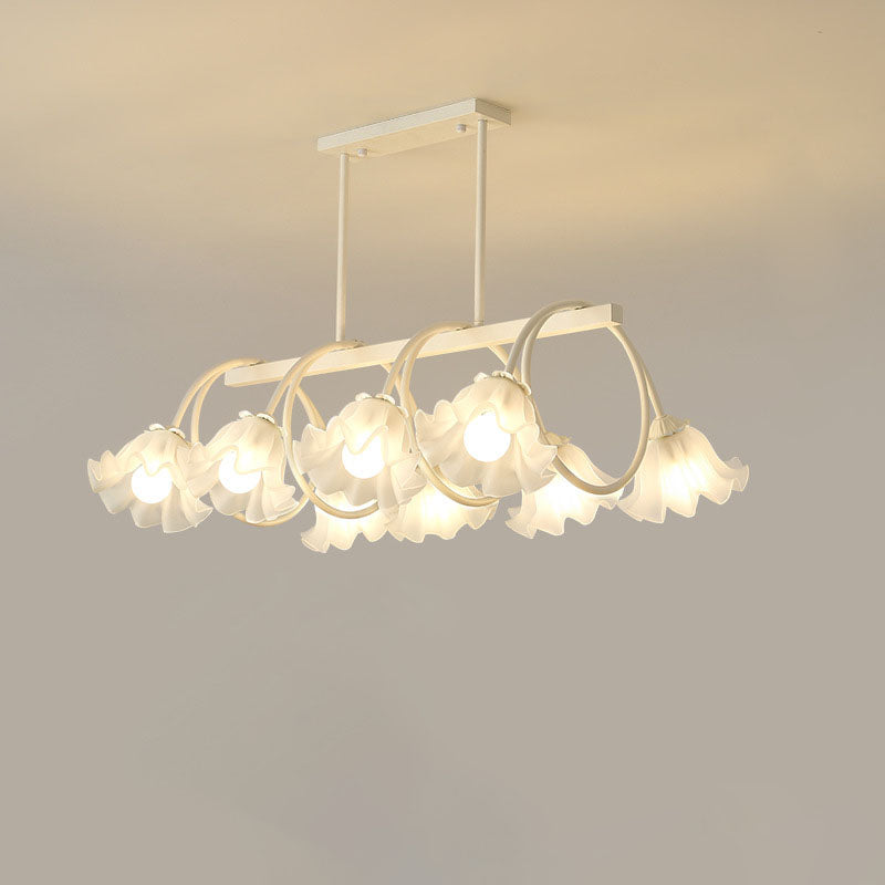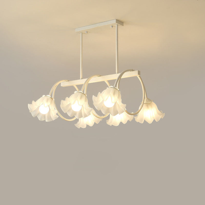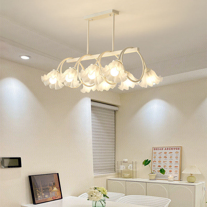 ثريا جزيرة من الحديد والزجاج بتصميم عصري بسيط بلون كريمي، 6/8 ضوء، لغرفة الطعام
