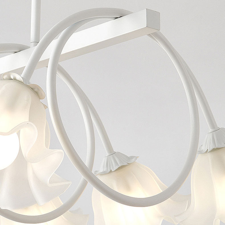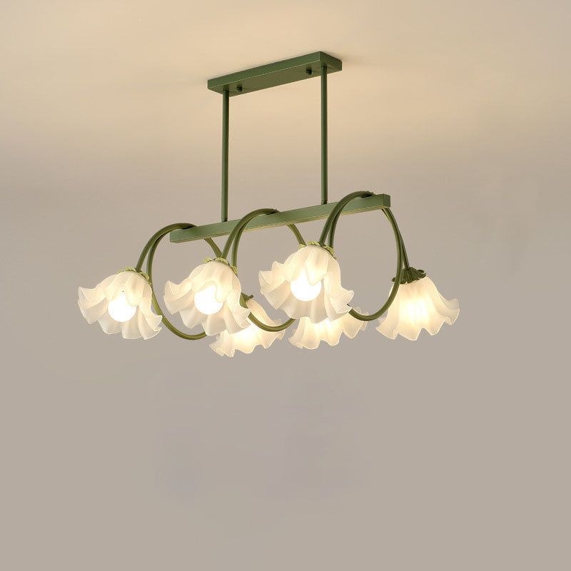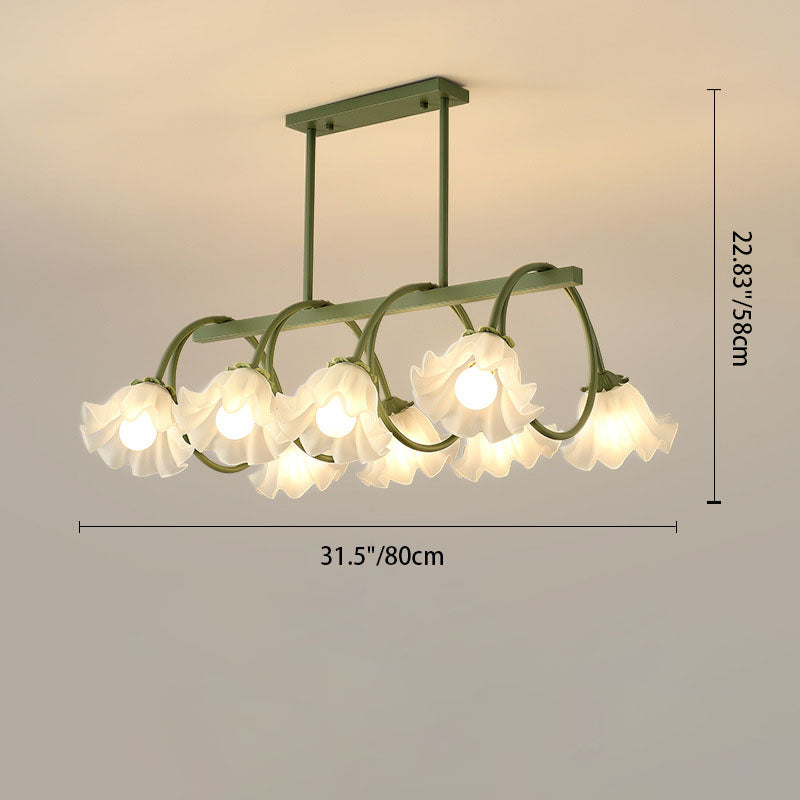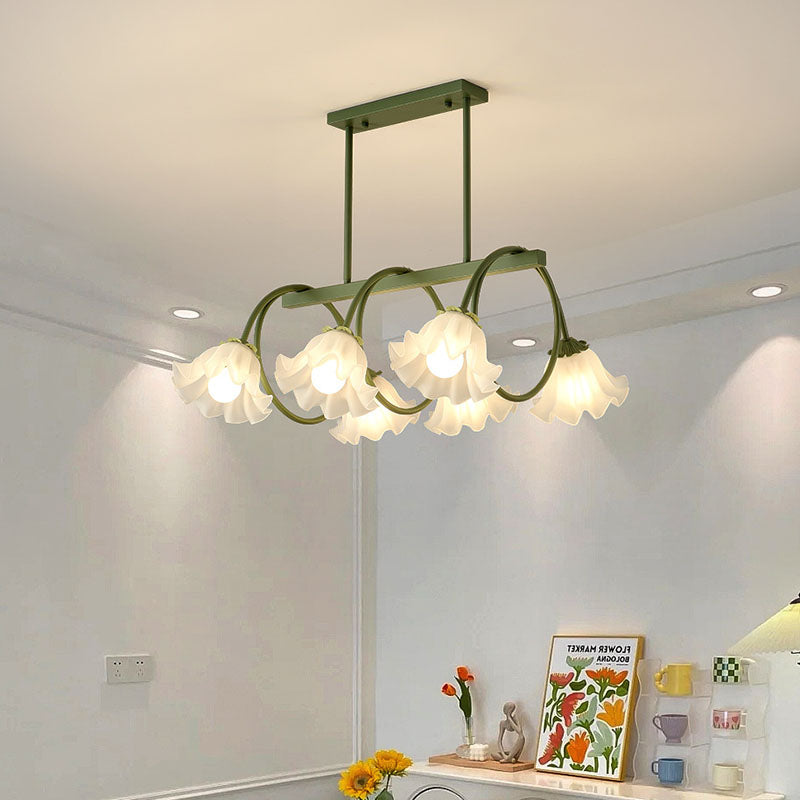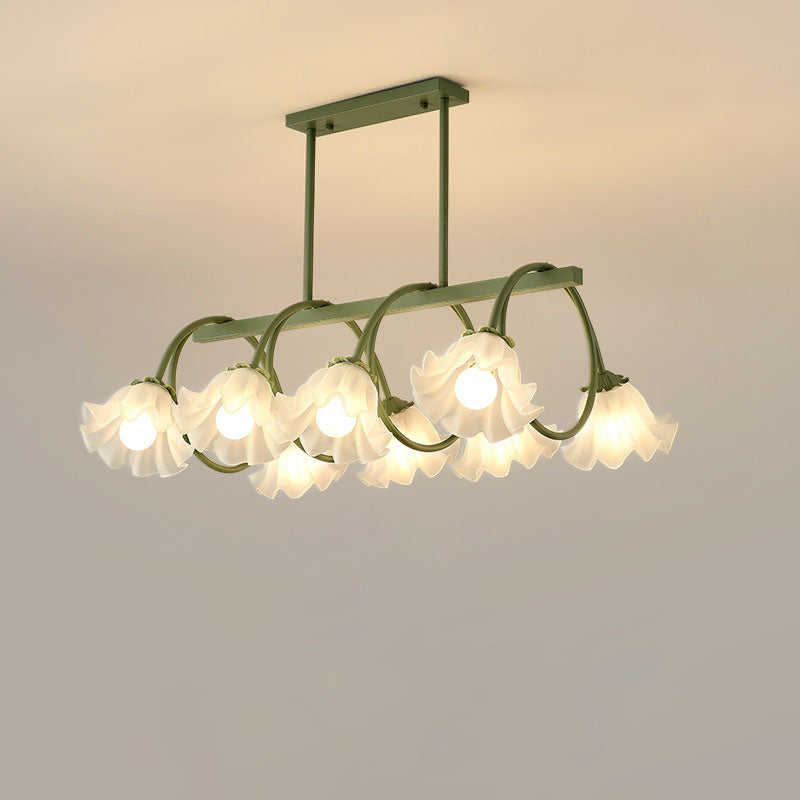 ثريا جزيرة من الحديد والزجاج بتصميم عصري بسيط بلون كريمي، 6/8 ضوء، لغرفة الطعام