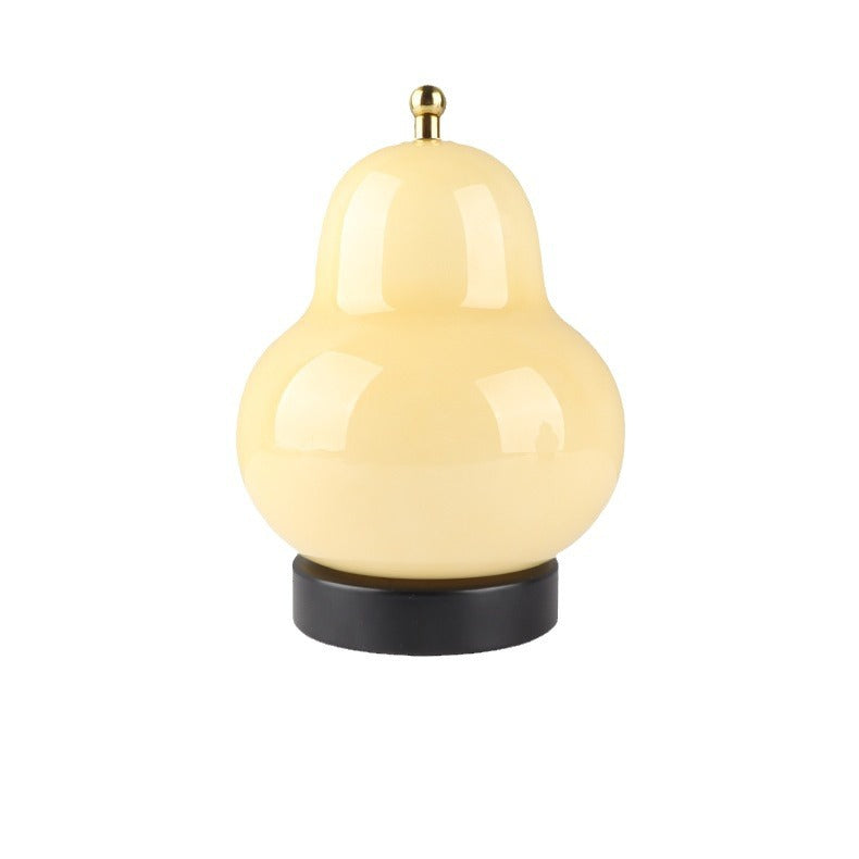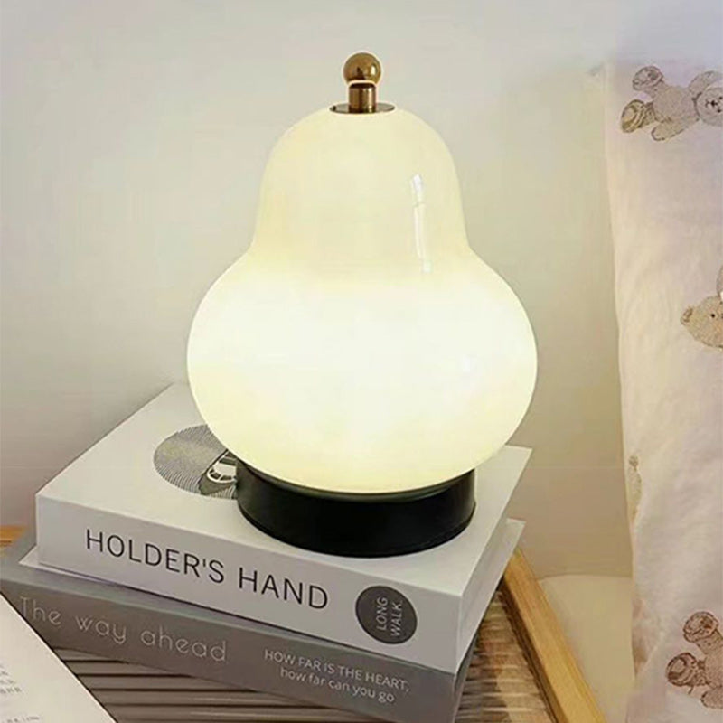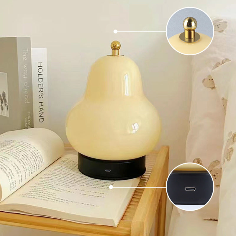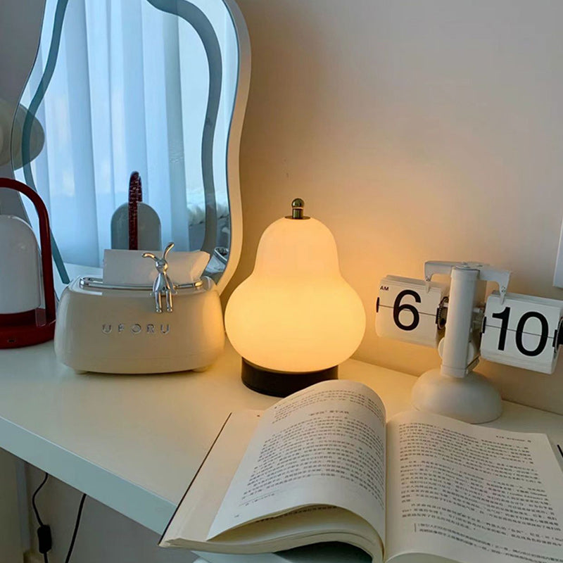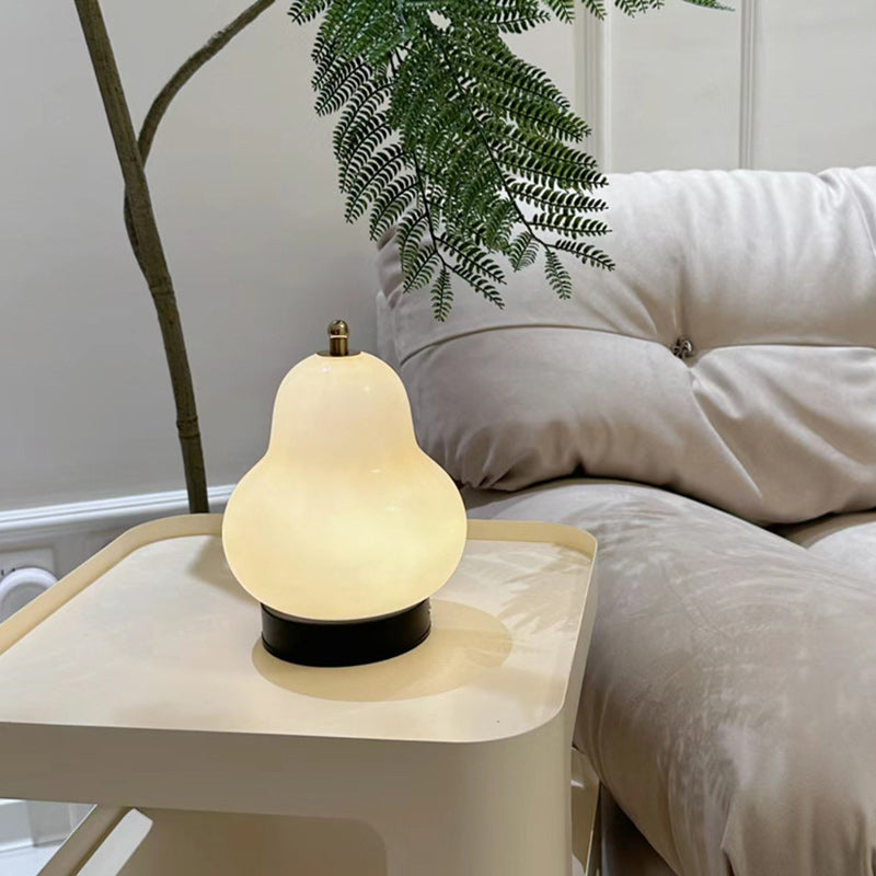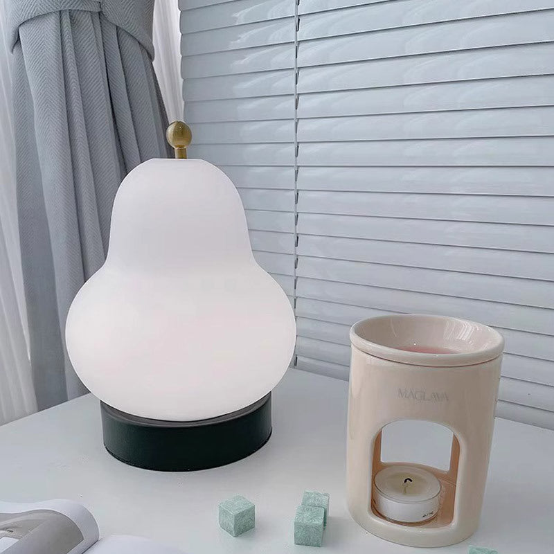 Modern Minimalist Cream Pear Disc Base Hardware Glass LED Table Lamp For Bedroom