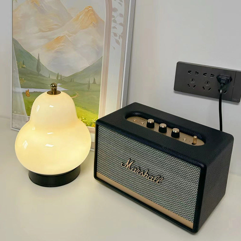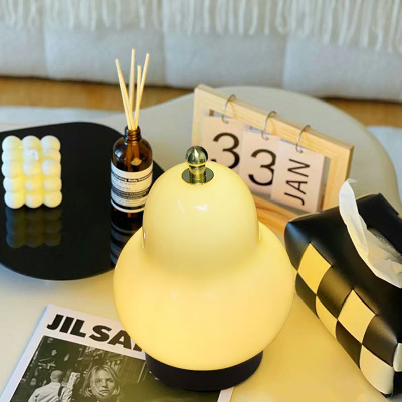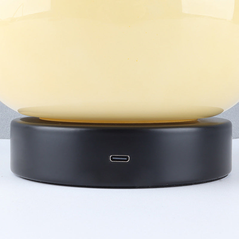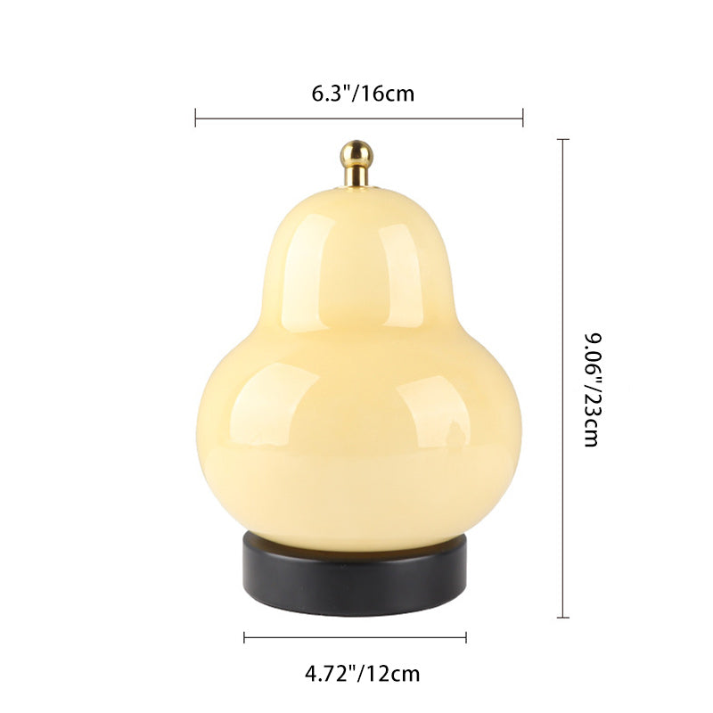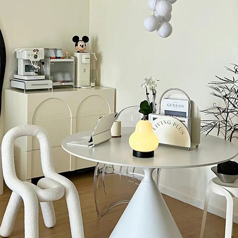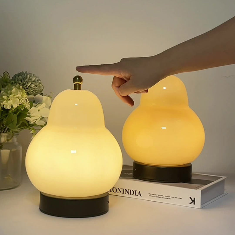 Modern Minimalist Cream Pear Disc Base Hardware Glass LED Table Lamp For Bedroom