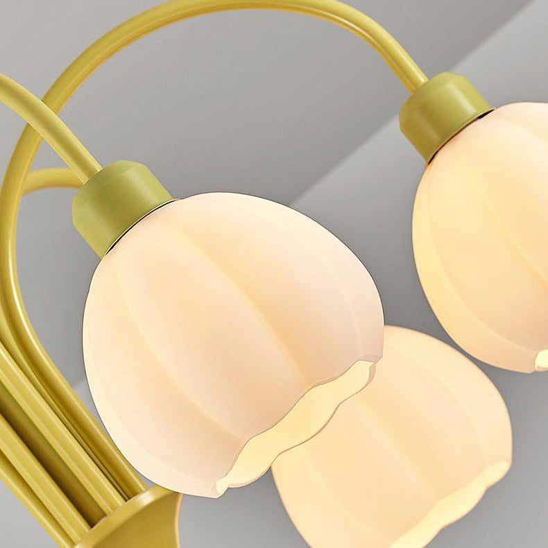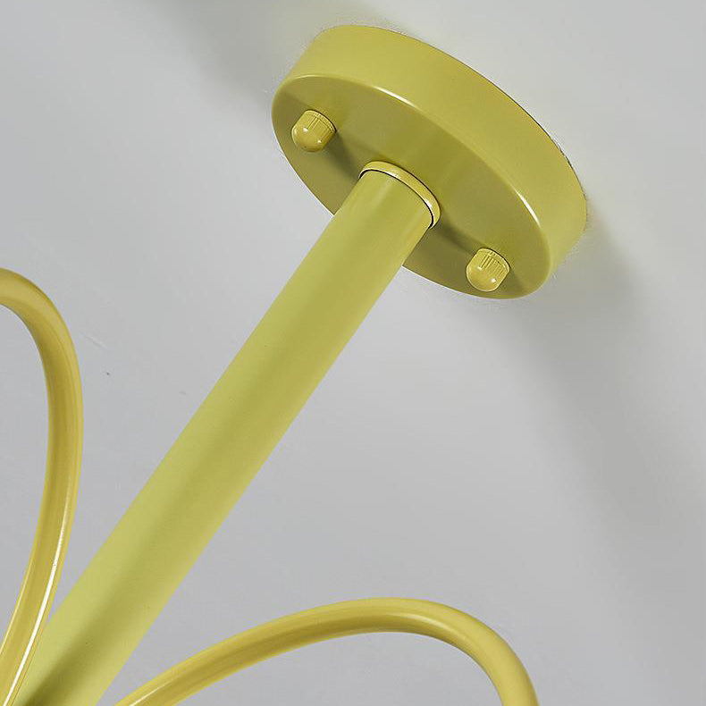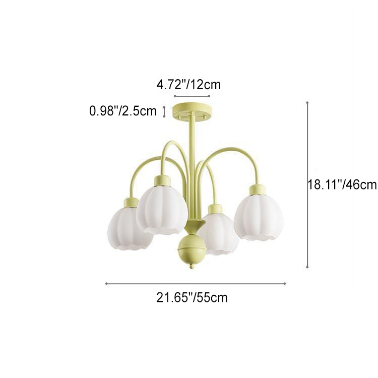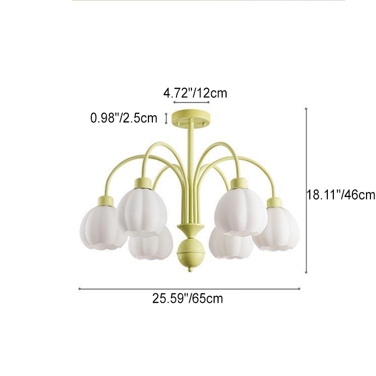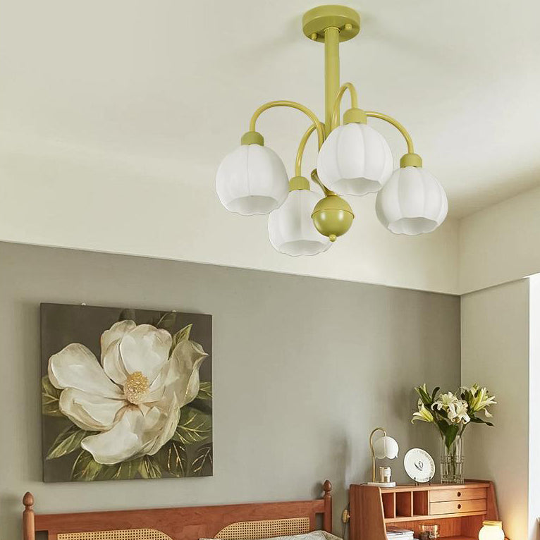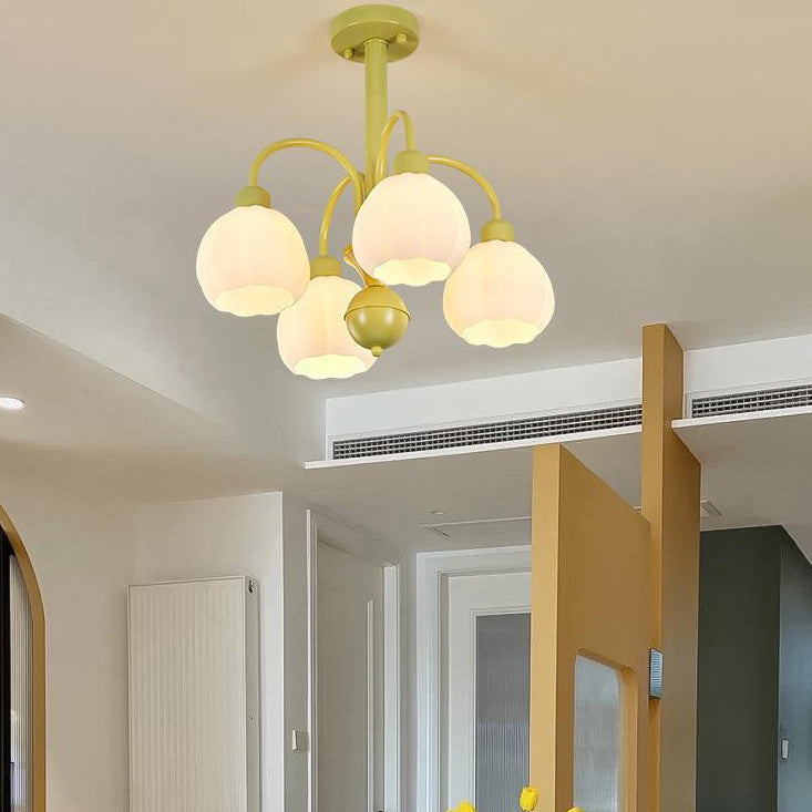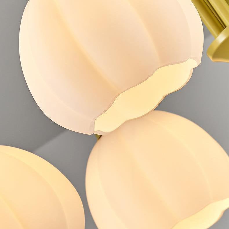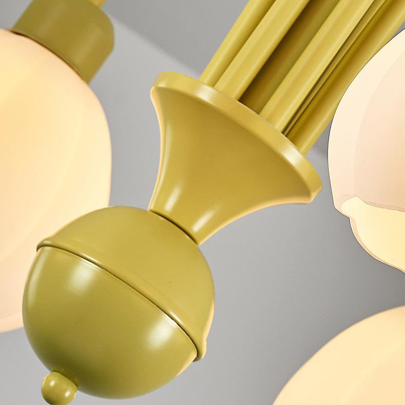 ثريا معدنية زجاجية بتصميم عصري بسيط على شكل قرع كريمي، مكونة من 4/6 مصابيح لغرفة المعيشة