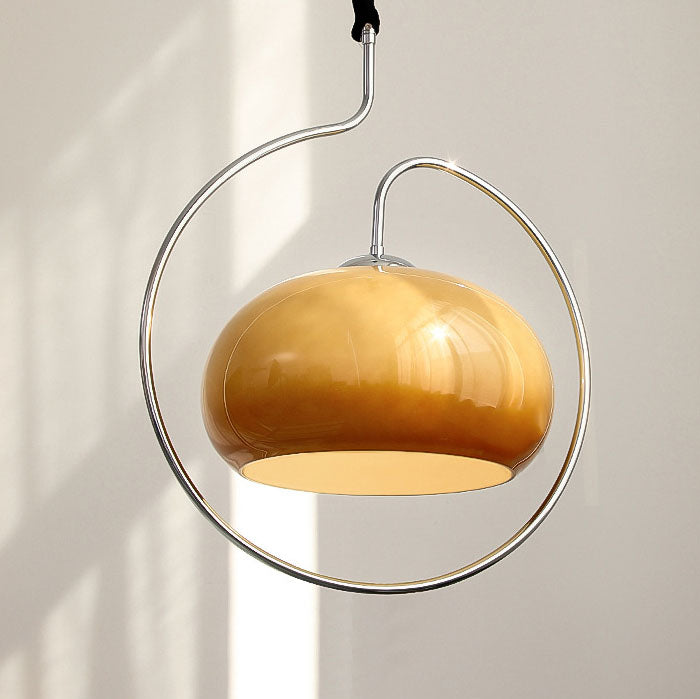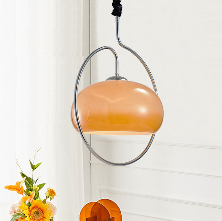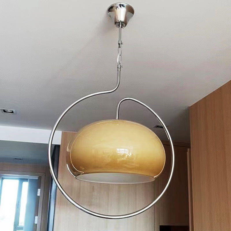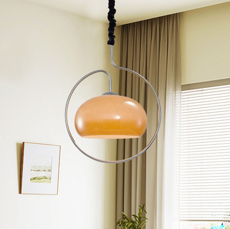 مصباح معلق عصري بسيط من الحديد والزجاج، دائري الشكل، كريمي اللون، لغرفة المعيشة