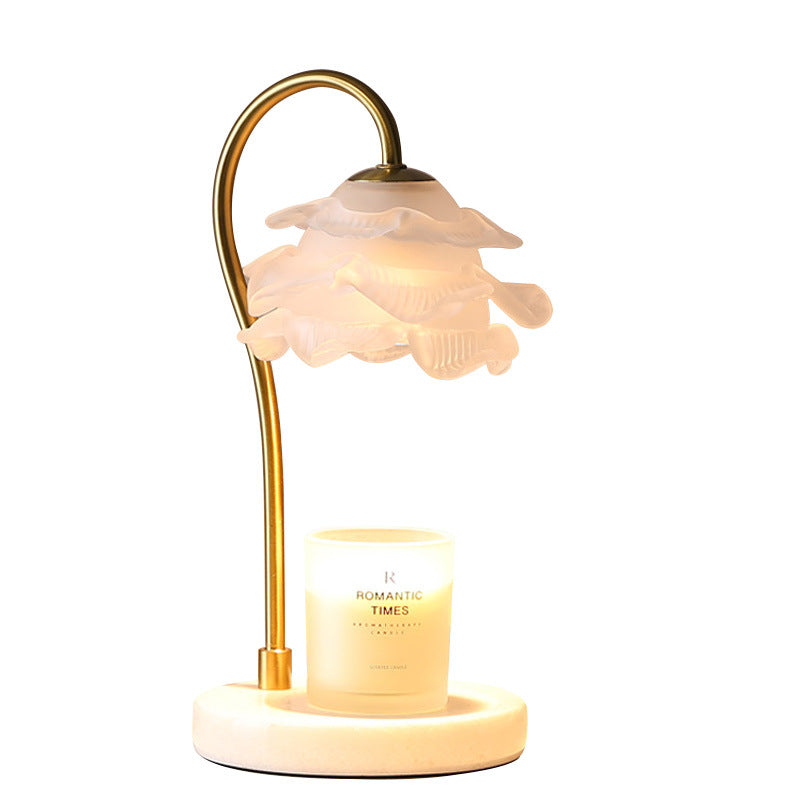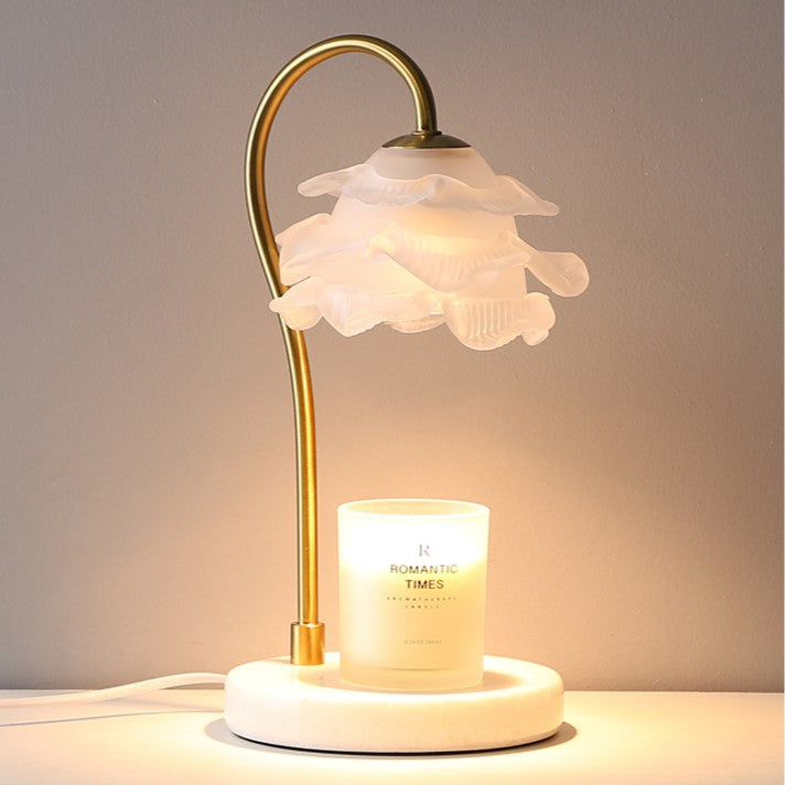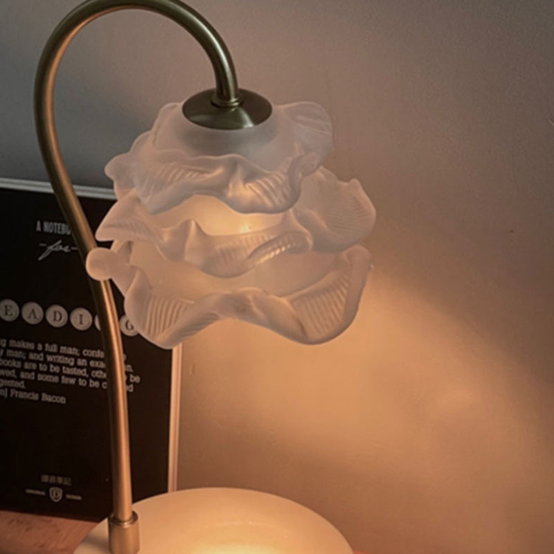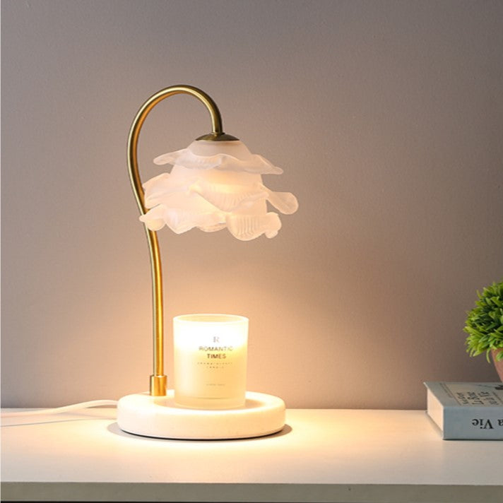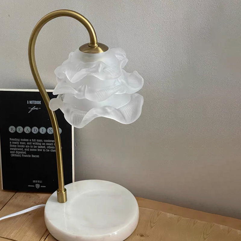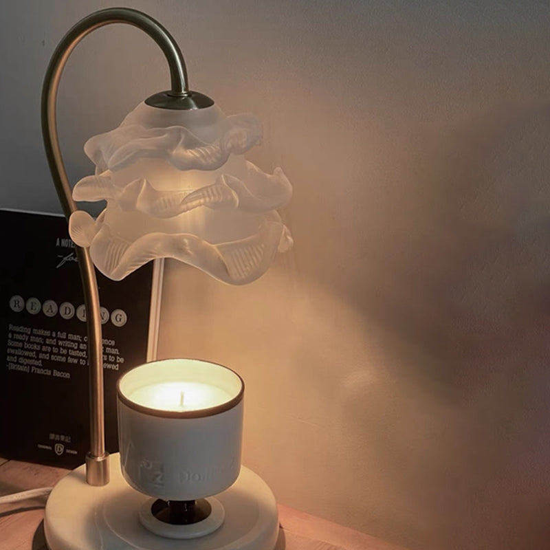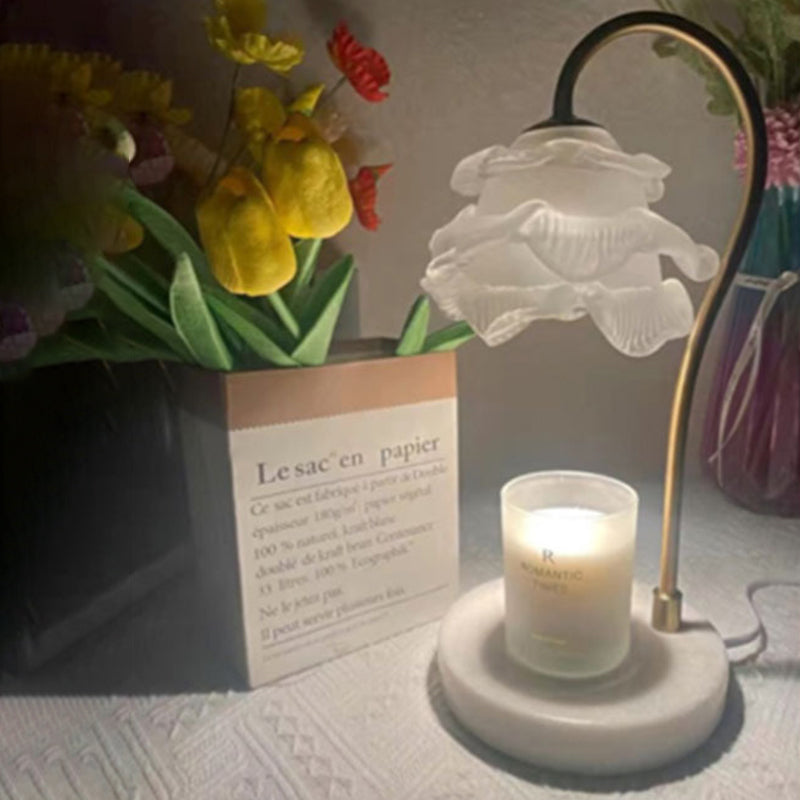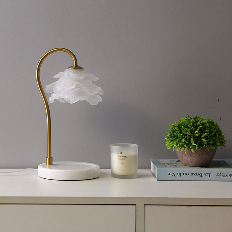 Modern Minimalist Curved Pole Flower Marble Base Iron Frame Glass Shade 1-Light Aroma Melting Wax Table Lamp For Bedroom