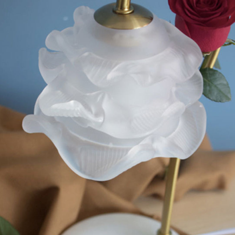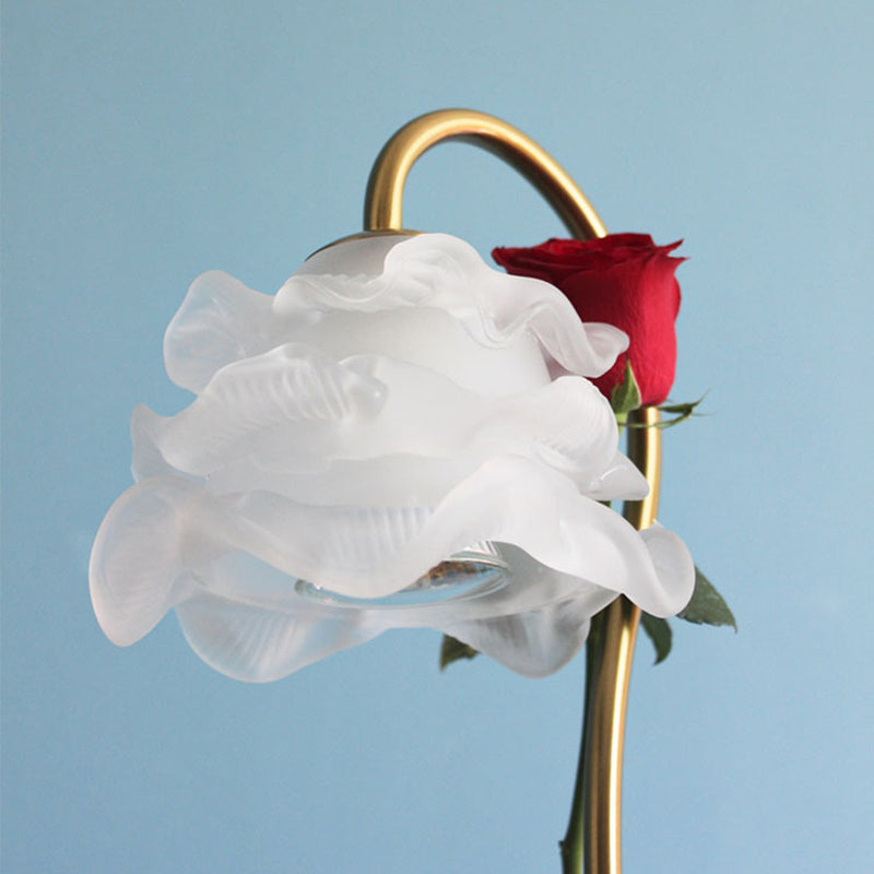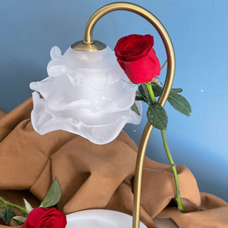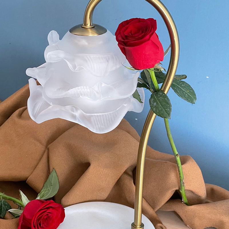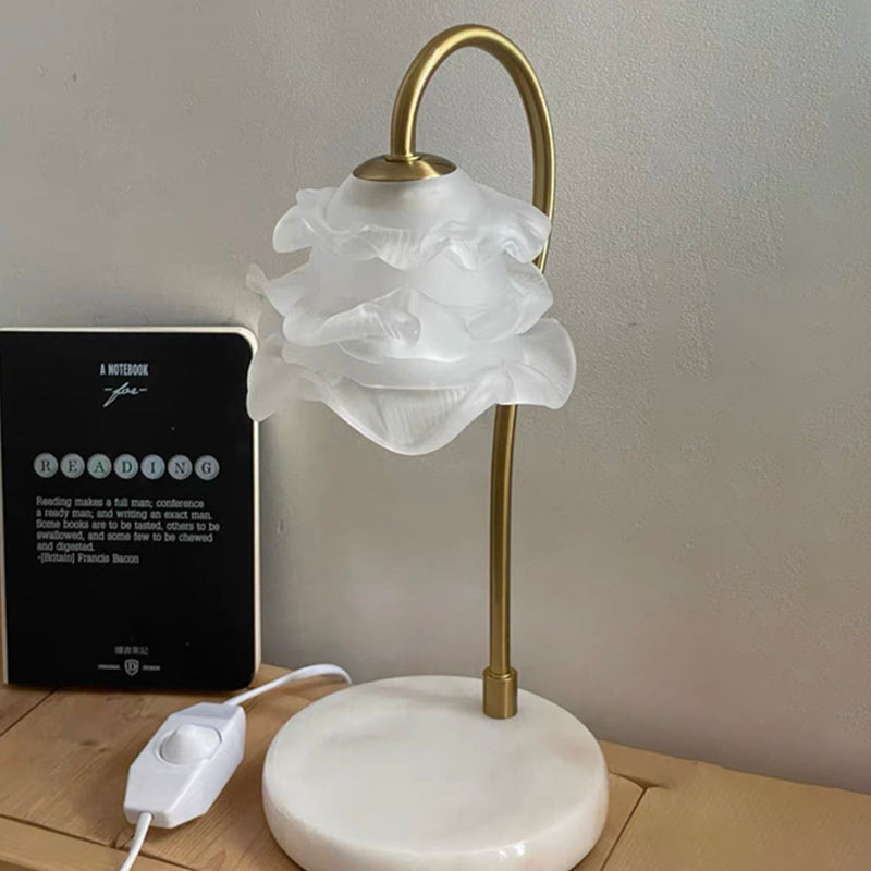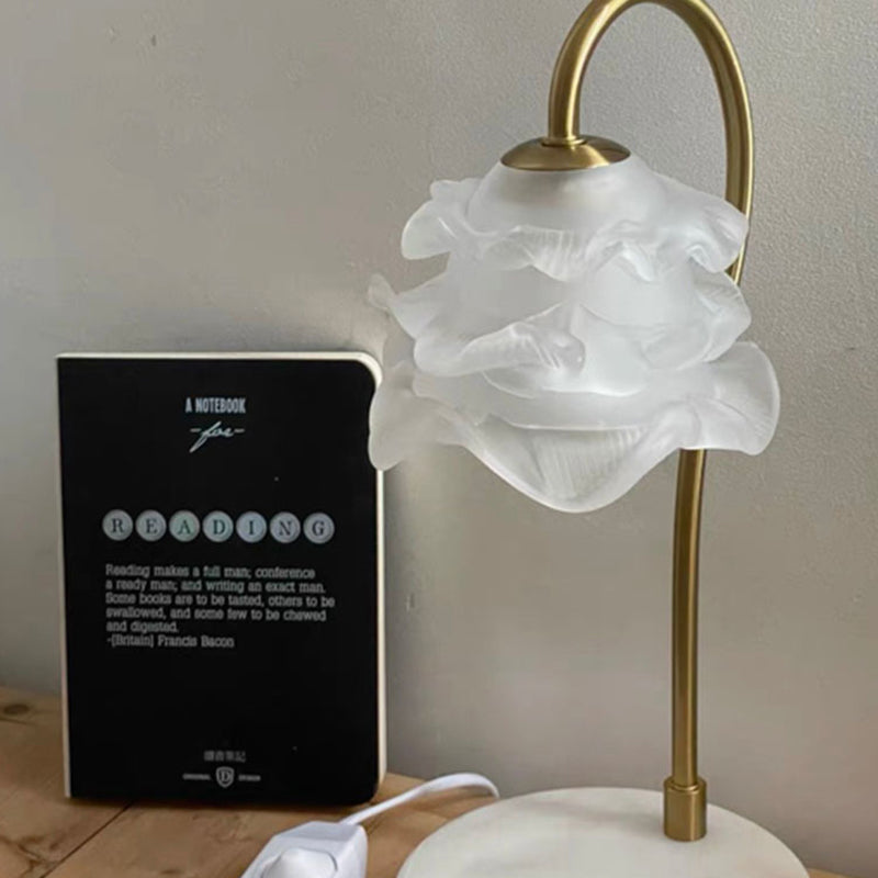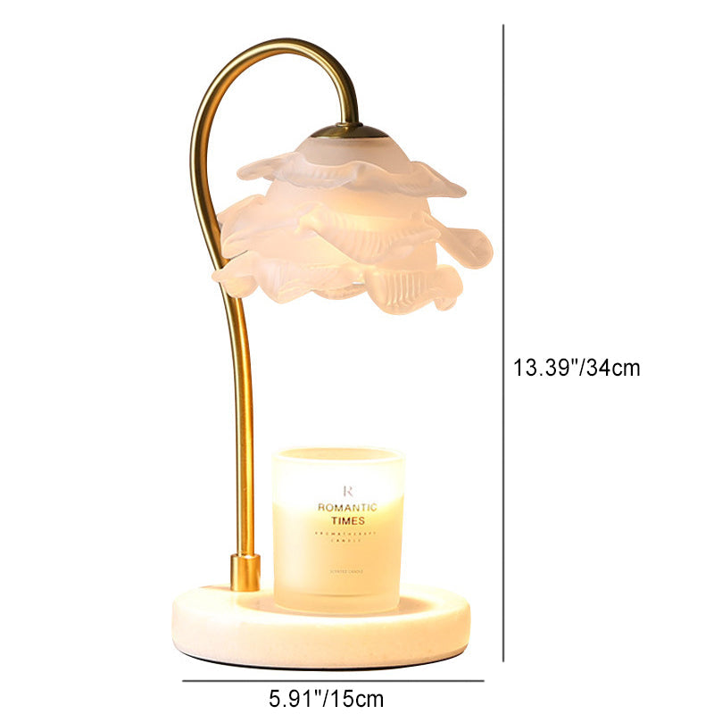 Modern Minimalist Curved Pole Flower Marble Base Iron Frame Glass Shade 1-Light Aroma Melting Wax Table Lamp For Bedroom