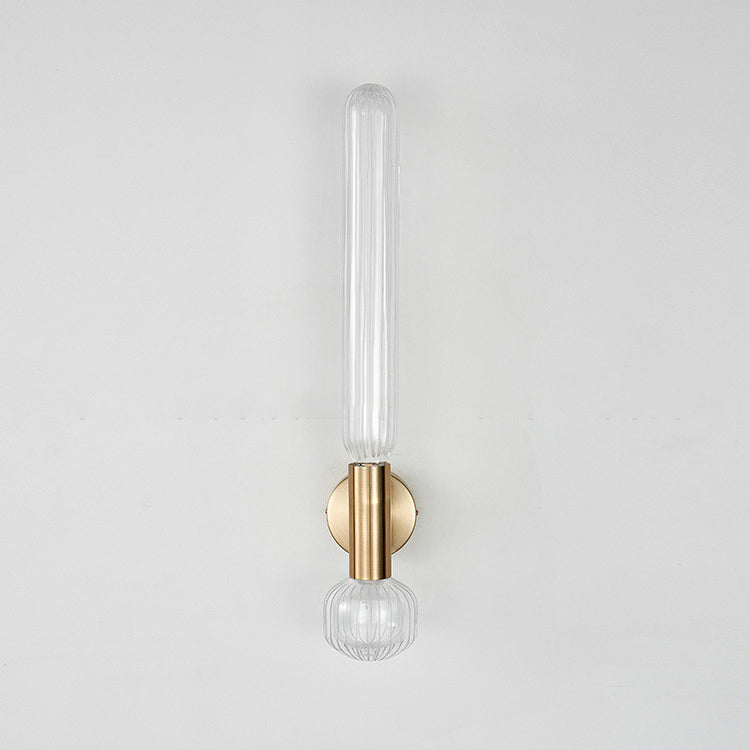 مصباح حائط LED بتصميم أسطواني مخطط من الزجاج والحديد بتصميم عصري بسيط لغرفة المعيشة