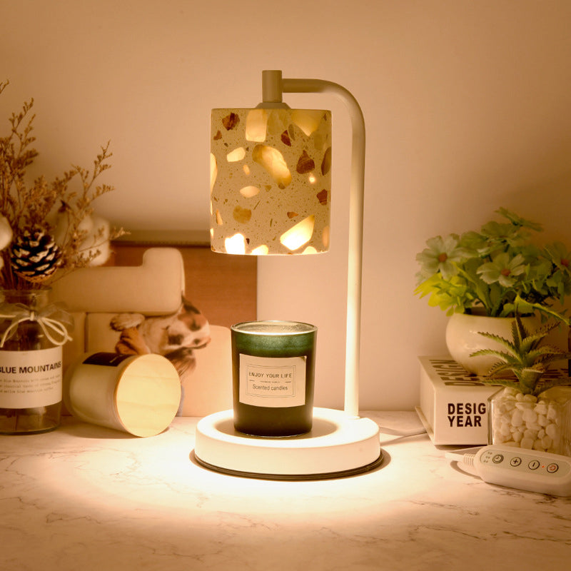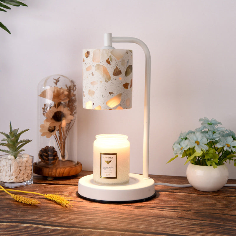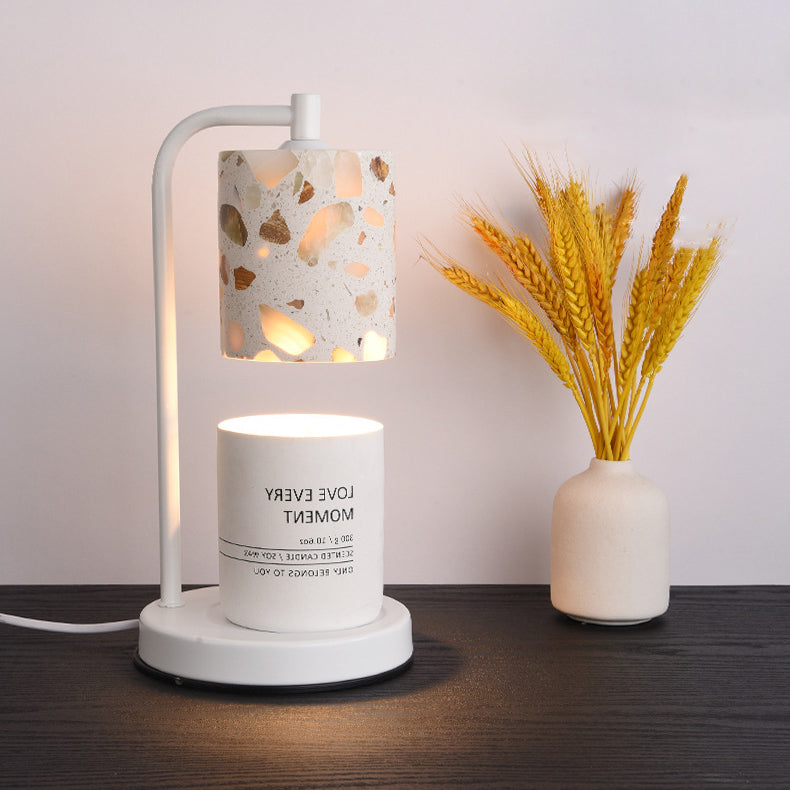 Modern Minimalist Cylindrical Disc Base Iron Stone 1-Light Aromatherapy Melting Wax Table Lamp For Bedroom