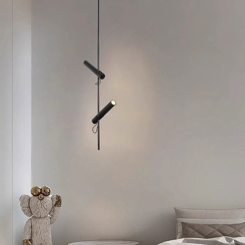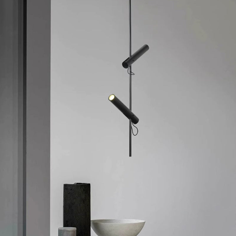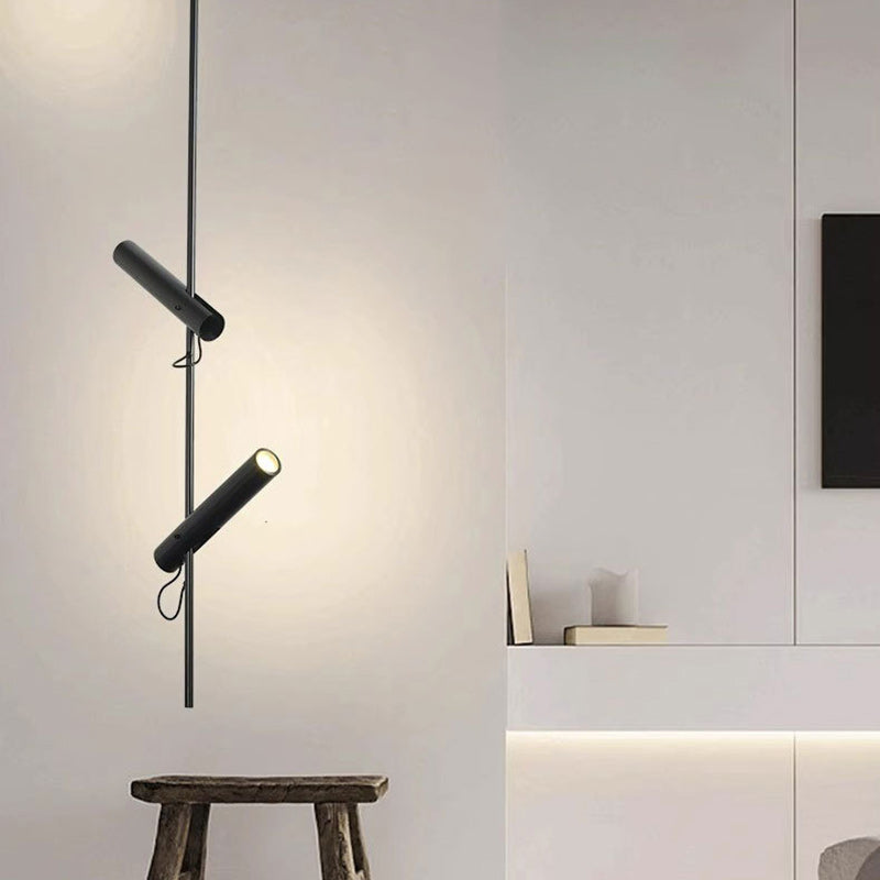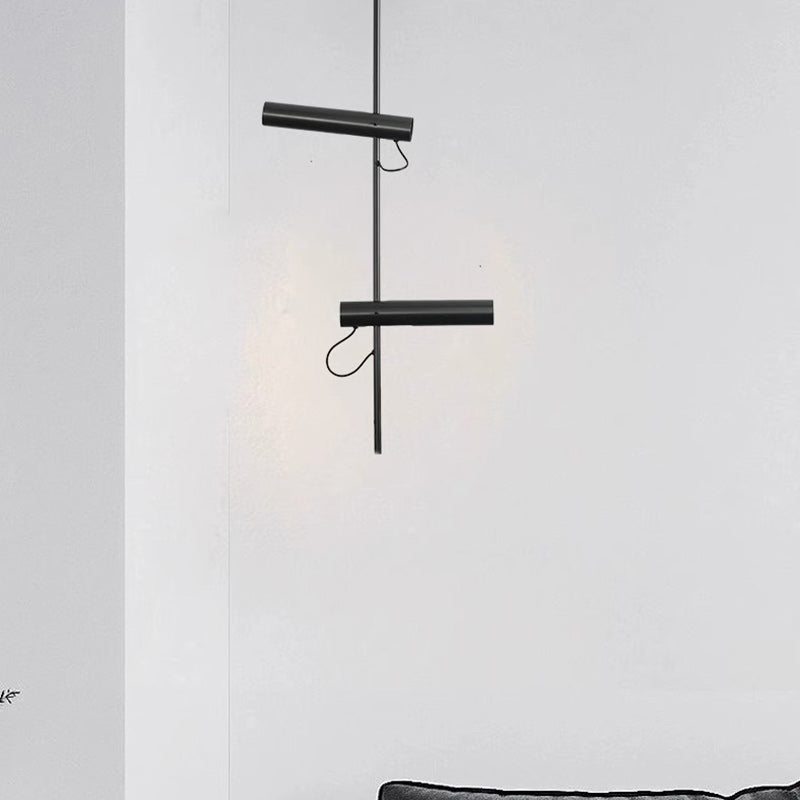 ثريا حديدية خطية أسطوانية حديثة بسيطة مزودة بمصباحين لغرفة المعيشة