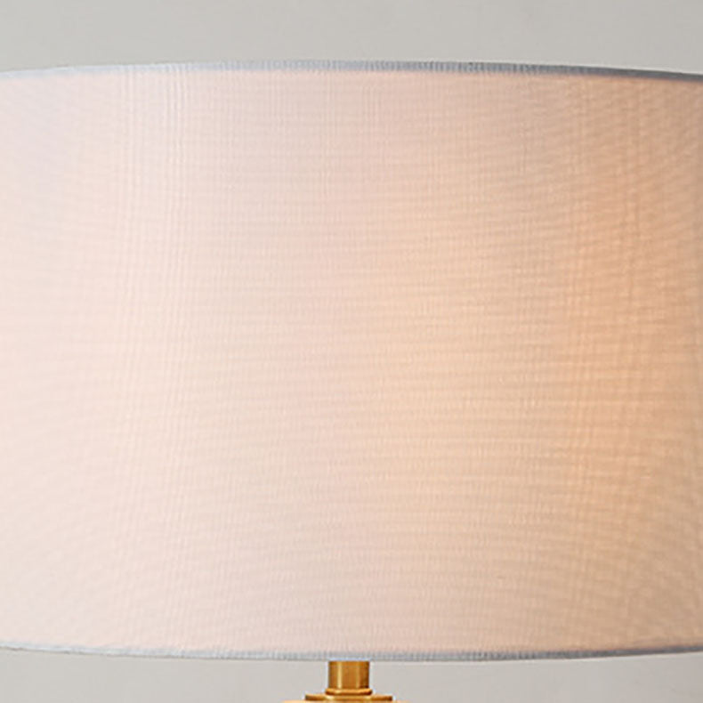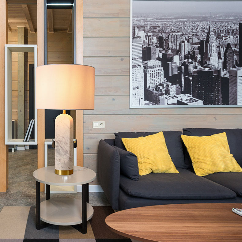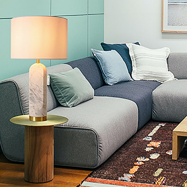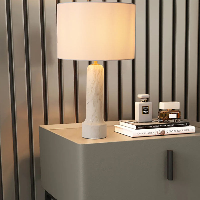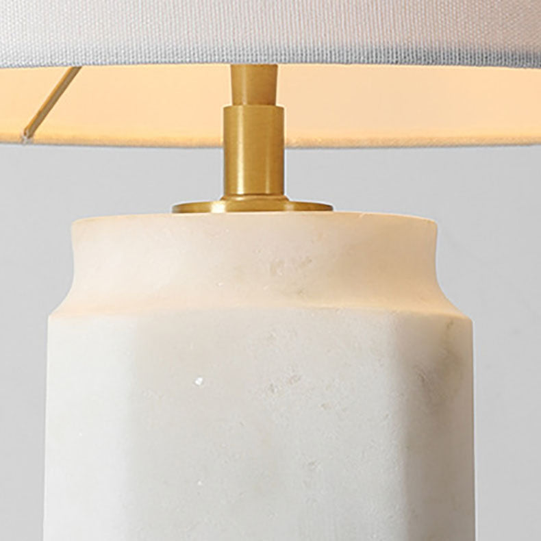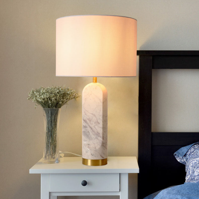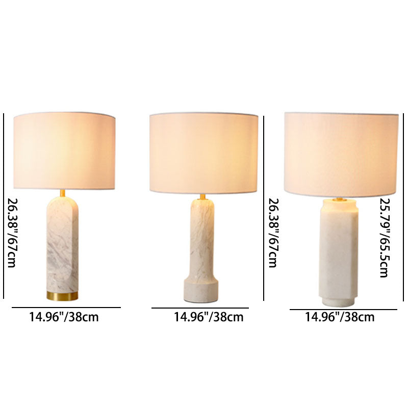 Modern Minimalist Cylindrical Rectangular Column Marble Metal Fabric 1-Light Table Lamp For Living Room