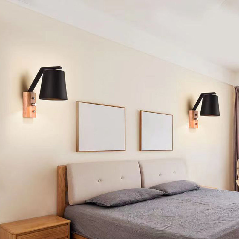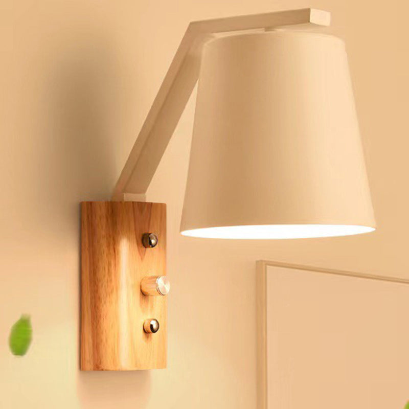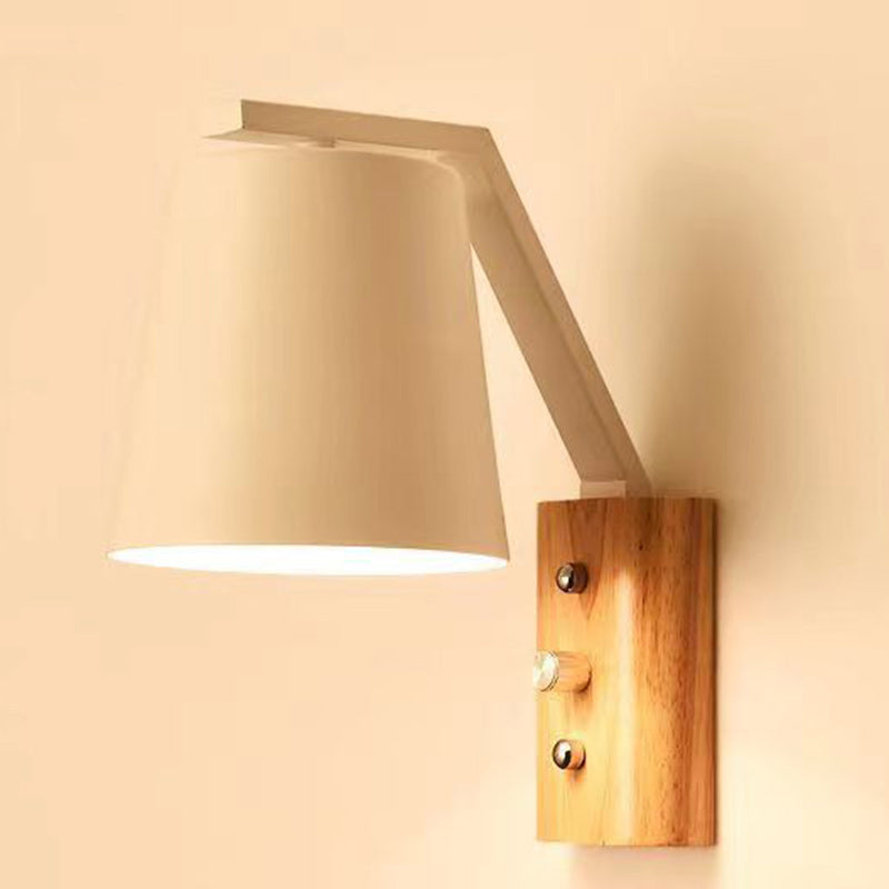 مصباح حائطي عصري بسيط مصنوع من خشب أسطواني زجاجي بإضاءة واحدة لغرفة المعيشة