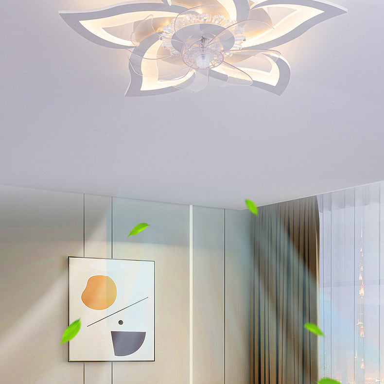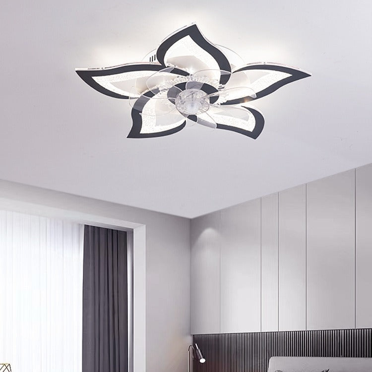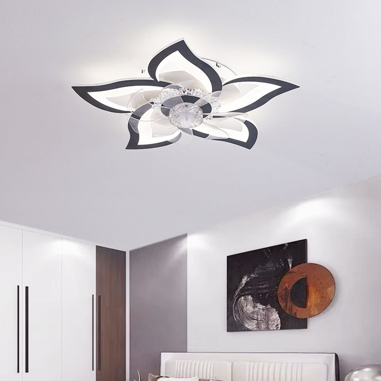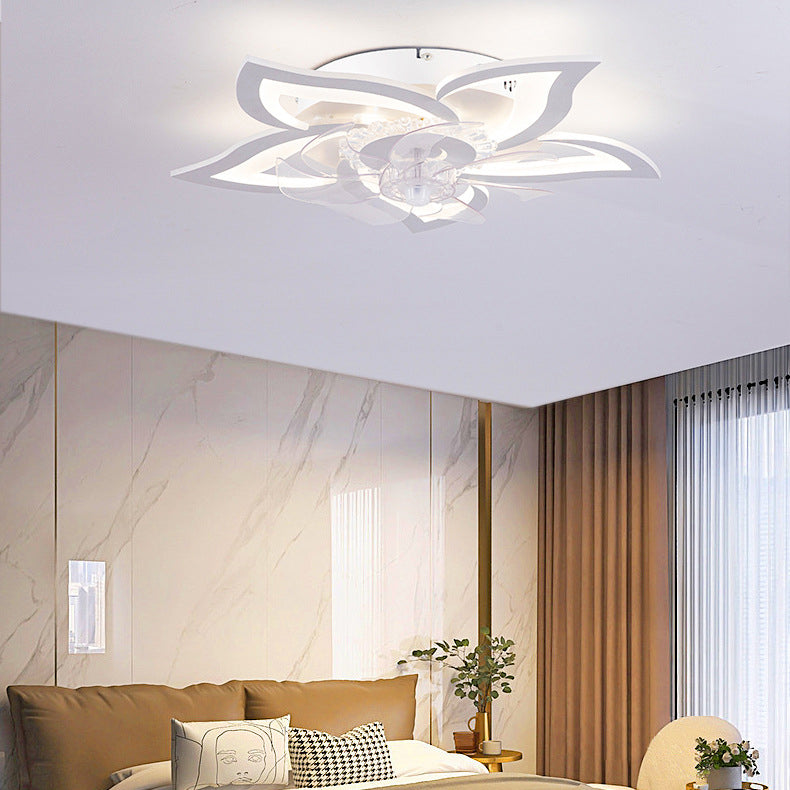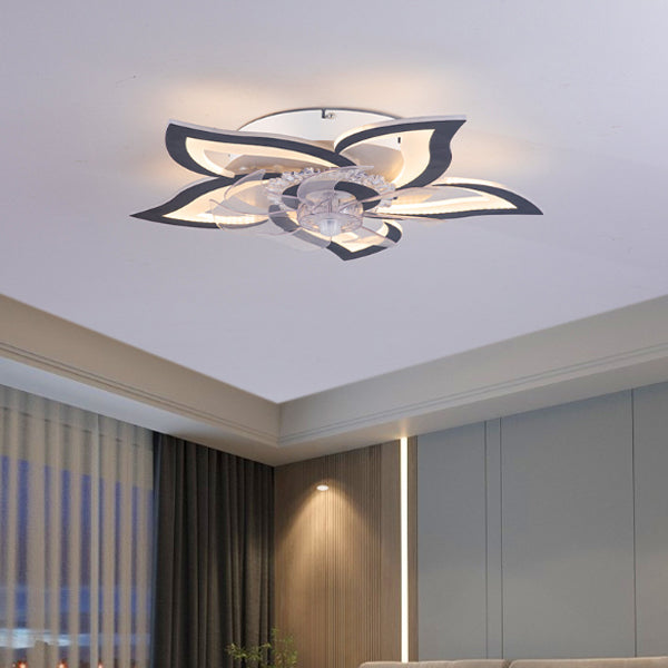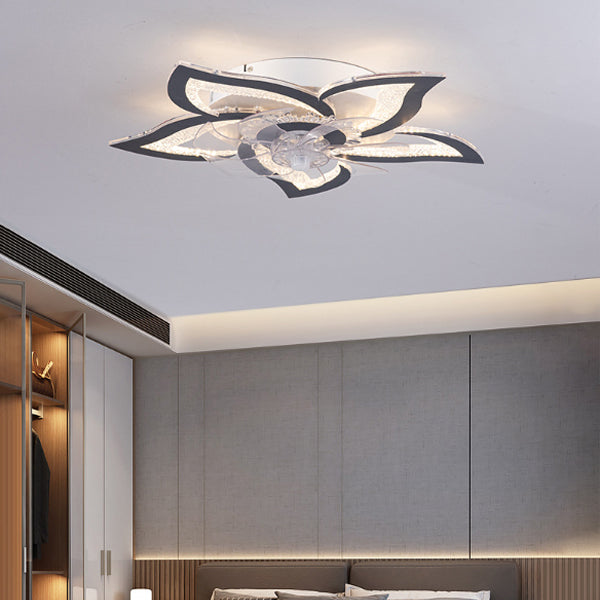مروحة سقف LED بتصميم معاصر إبداعي من الألومنيوم والأكريليك ABS مزودة بإضاءة لغرفة النوم