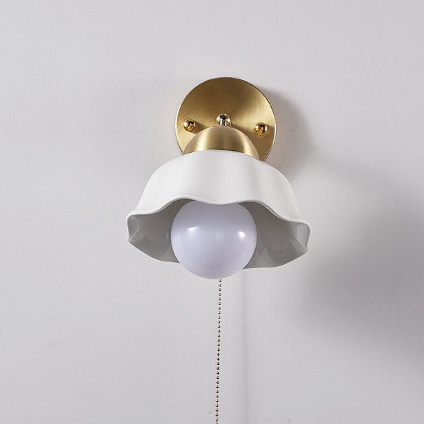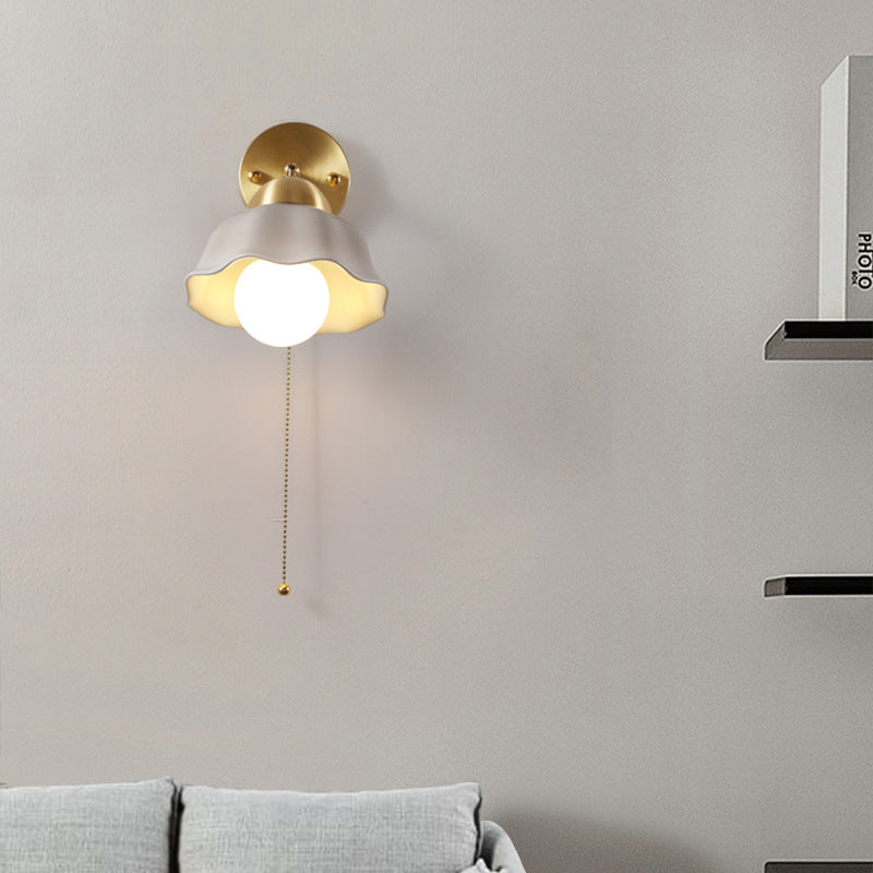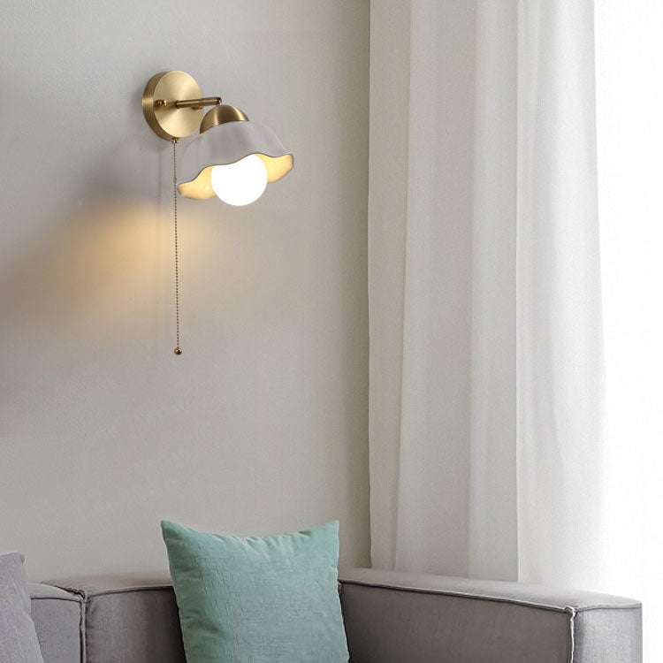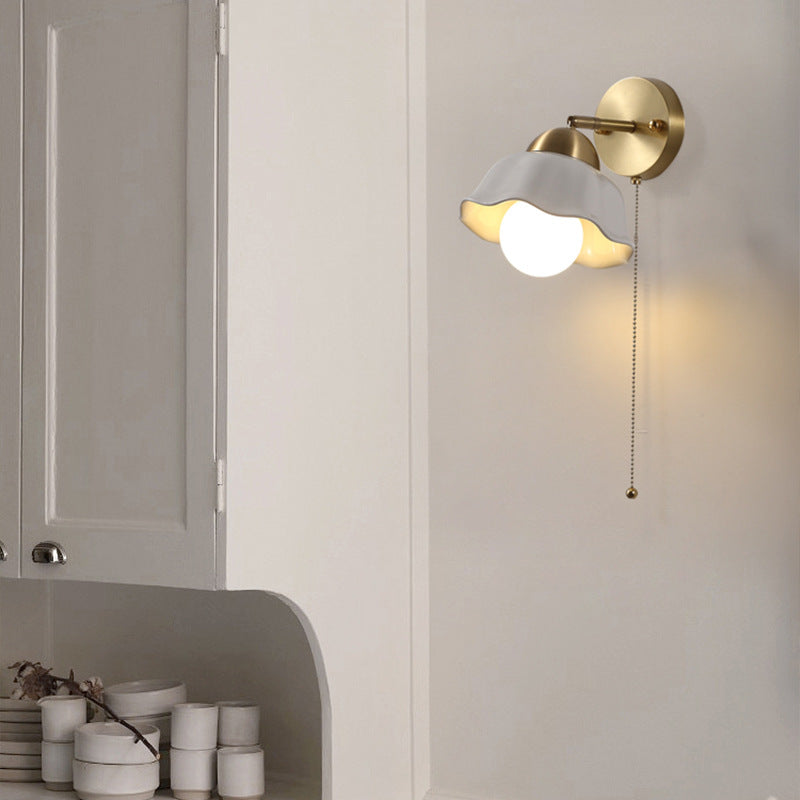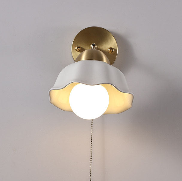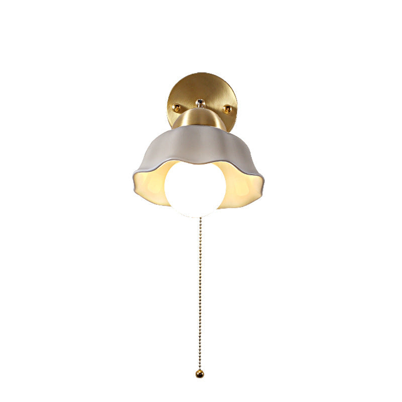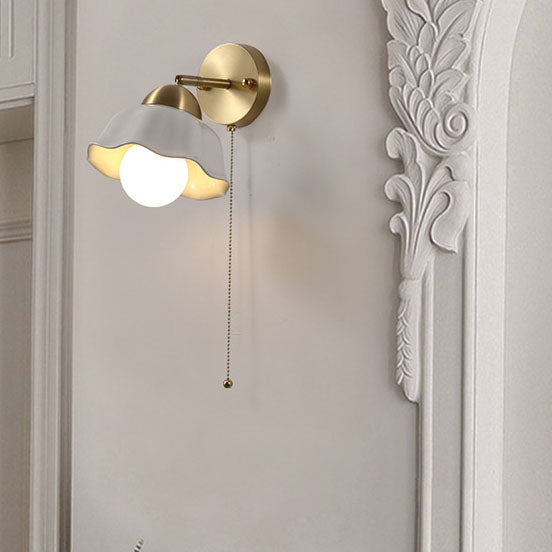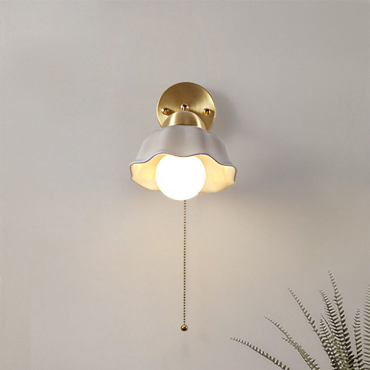 مصباح حائطي حديث بسيط مصنوع من النحاس والسيراميك مزود بحبل سحب وإضاءة واحدة