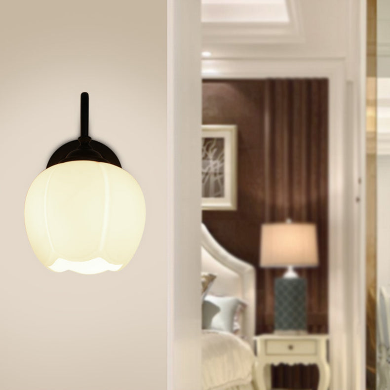 مصباح حائطي عصري بسيط من الحديد والزجاج بإضاءة واحدة لغرفة النوم