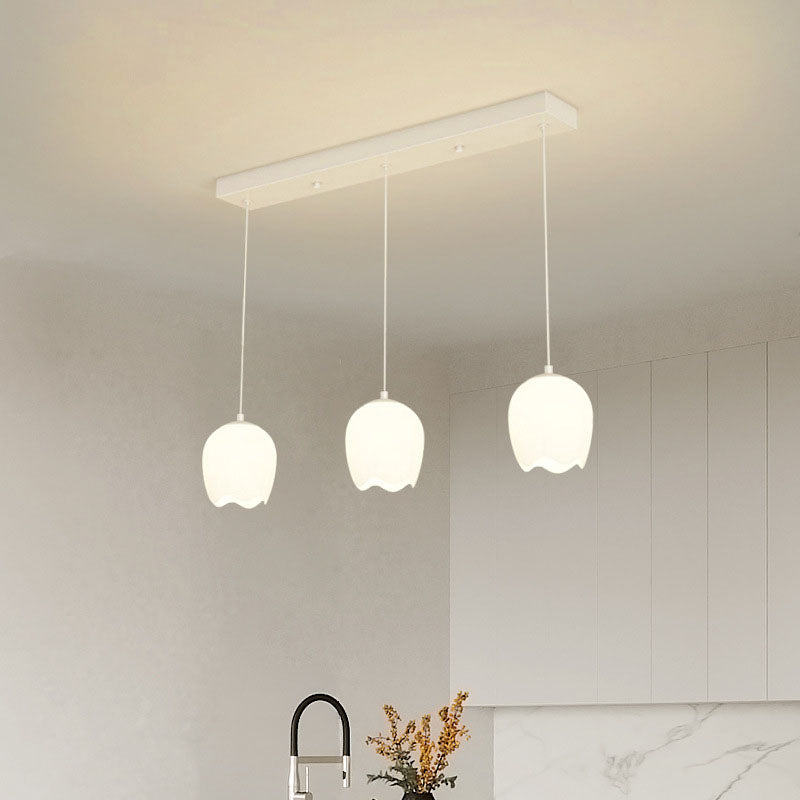 ثريا جزيرة زجاجية حديدية بتصميم عصري بسيط بثلاثة مصابيح لغرفة الطعام