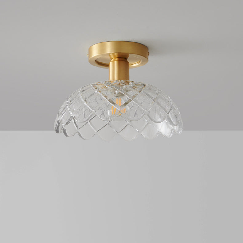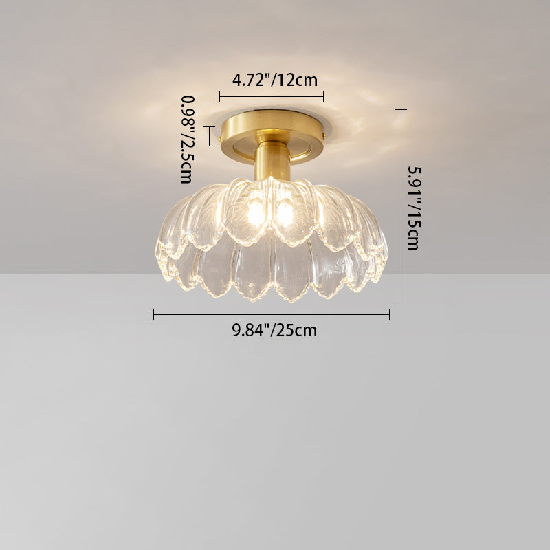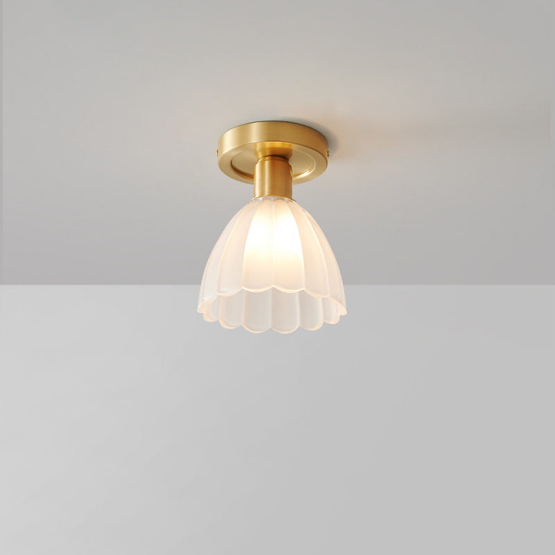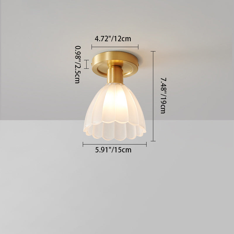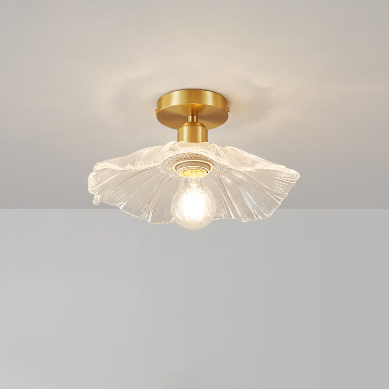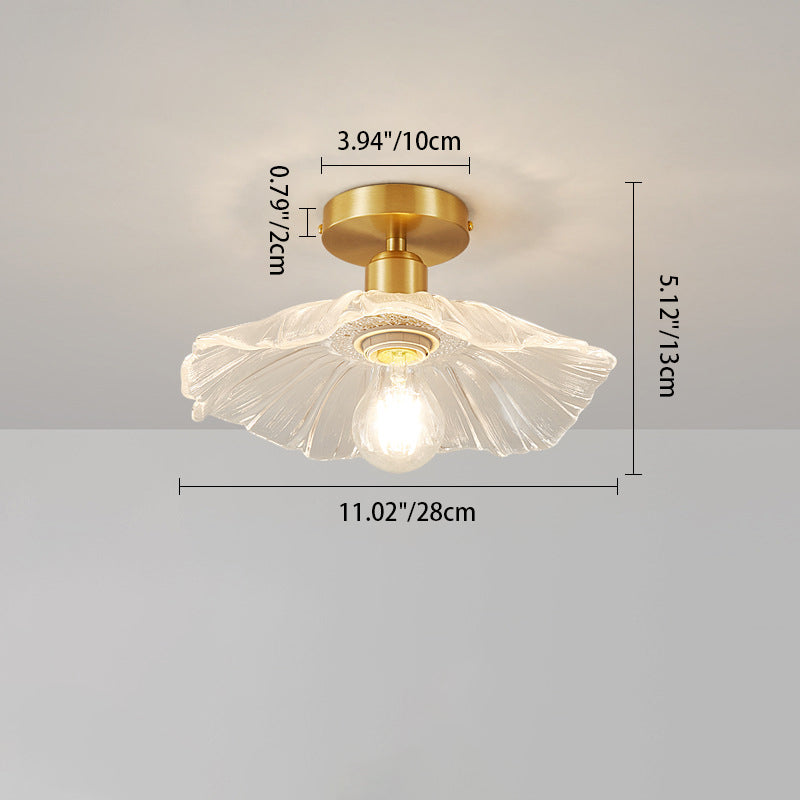 مصباح سقف حديث بسيط على شكل بتلات زهرة اللوتس وزجاج نحاسي ومزود بإضاءة واحدة ومثبت بشكل نصف مسطح للممر