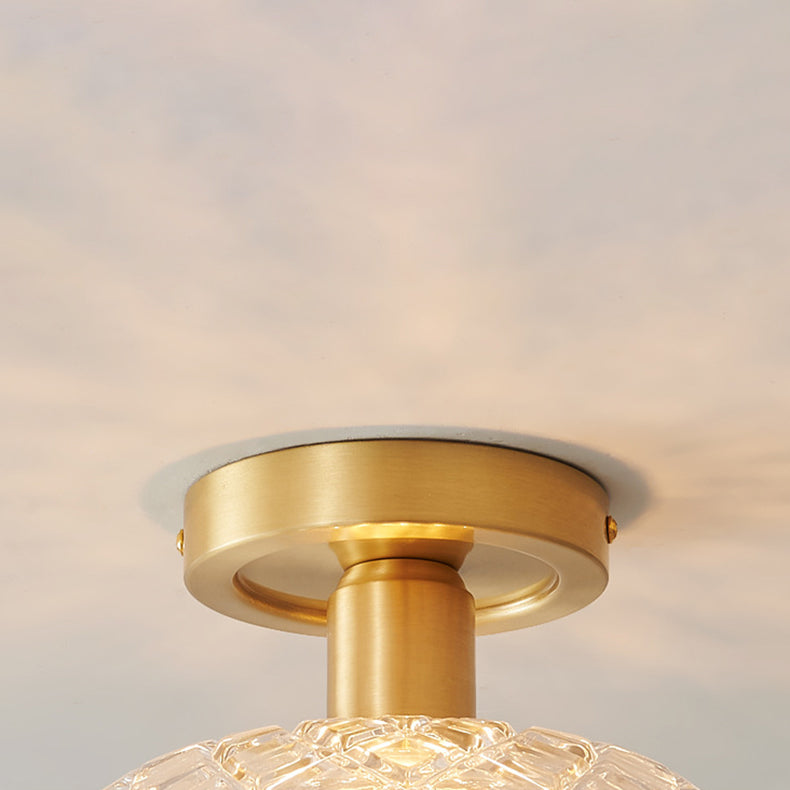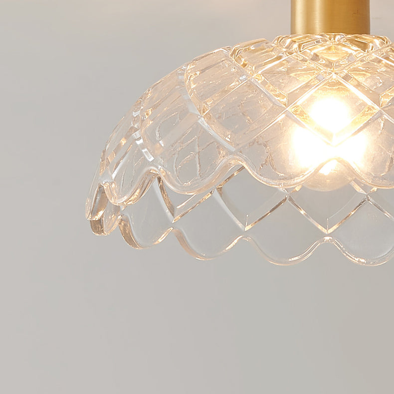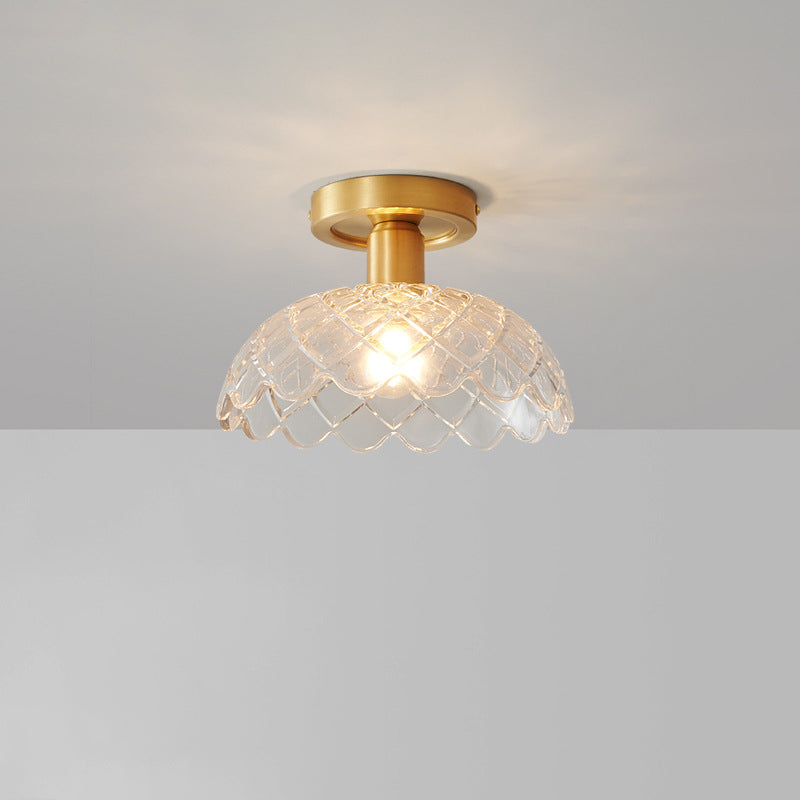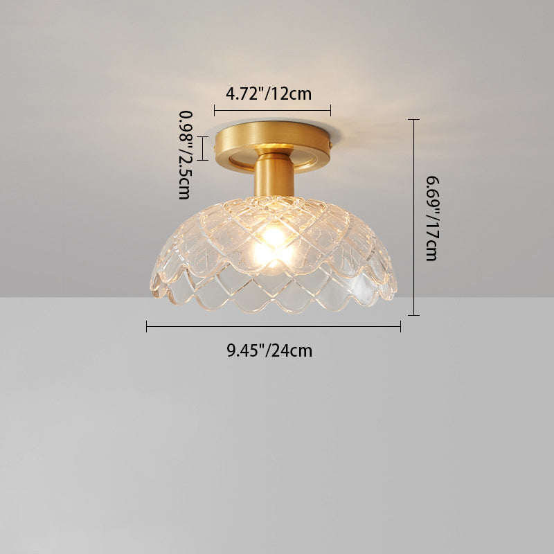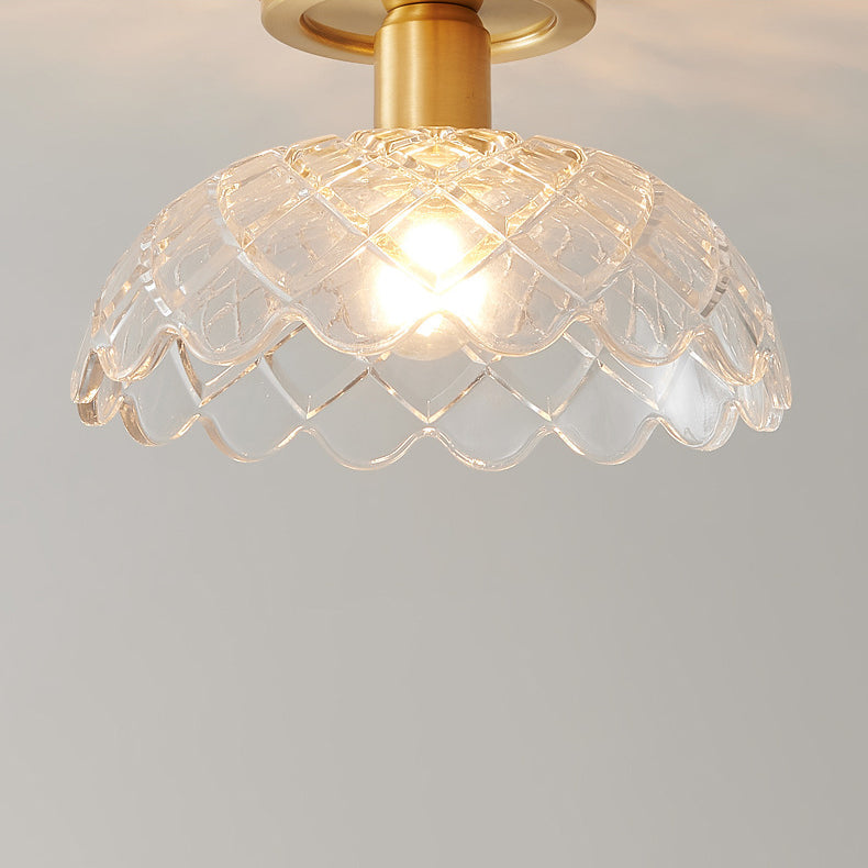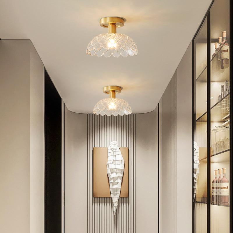 مصباح سقف حديث بسيط على شكل بتلات زهرة اللوتس وزجاج نحاسي ومزود بإضاءة واحدة ومثبت بشكل نصف مسطح للممر