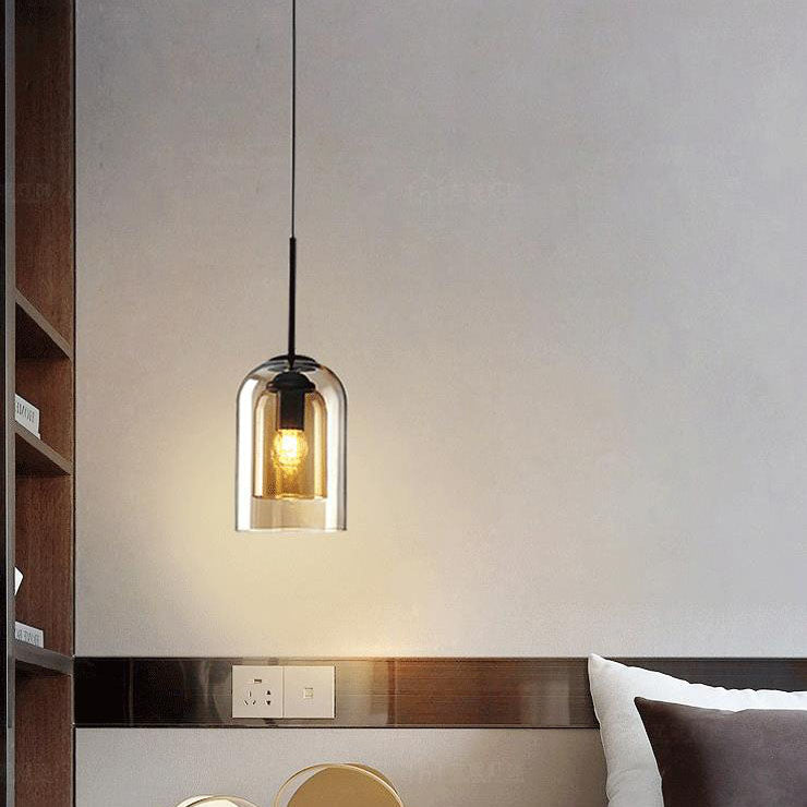 مصباح معلق حديث بسيط على شكل كأس أسطواني زجاجي مزود بمصباح واحد