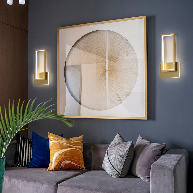 مصباح حائط مستطيل الشكل ذهبي اللون بتصميم عصري بسيط مزود بإضاءة LED واحدة