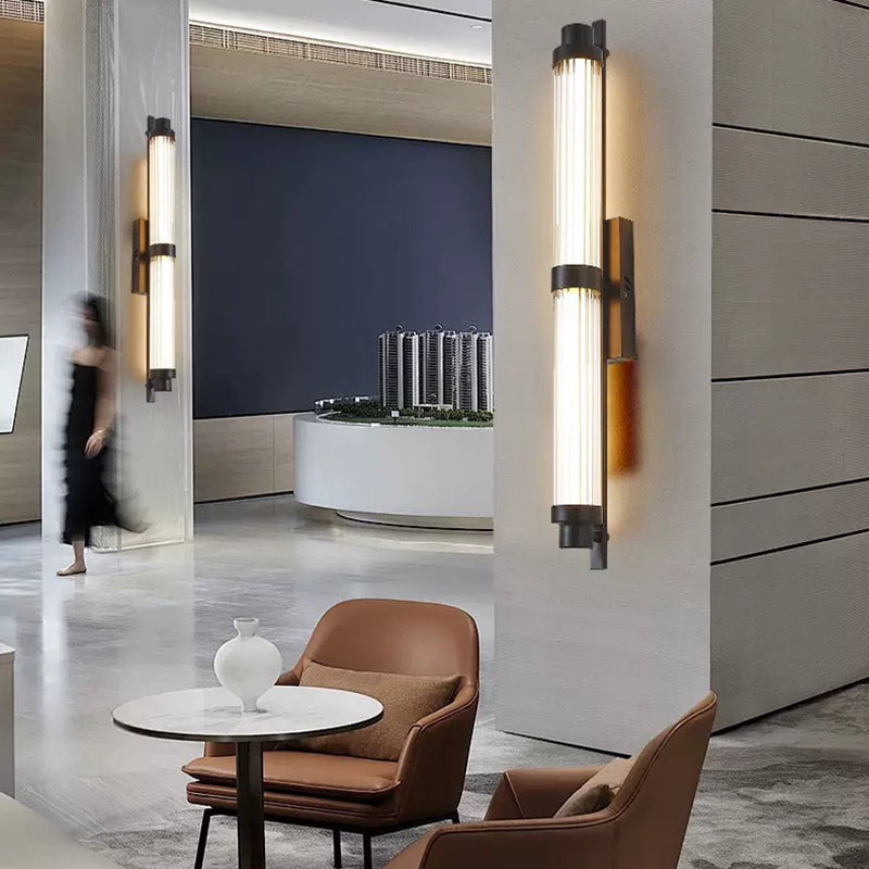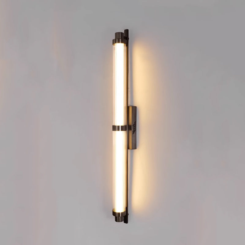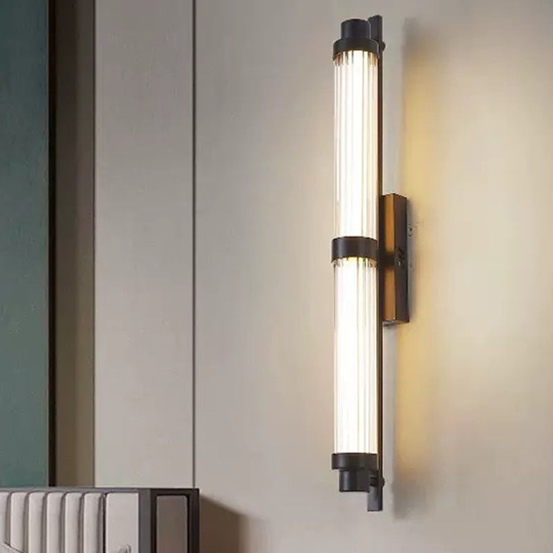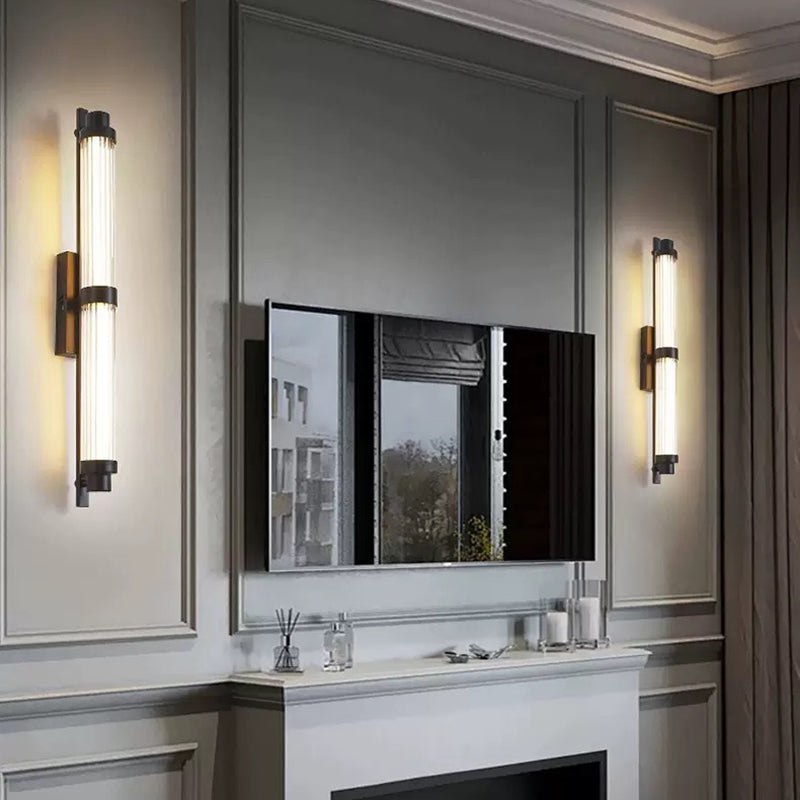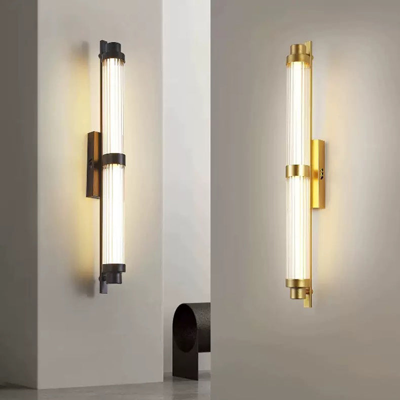 يجمع هذا الشمعدان الجداري LED العصري البسيط بين الحديد والزجاج في تصميم أسطواني مستطيل أنيق، مما يضفي لمسة راقية على غرف المعيشة والممرات وغرف الطعام. متوفر باللونين النحاسي والأسود، ويوفر إضاءة دافئة وناعمة وغير لامعة، مما يخلق جوًا دافئًا وأنيقًا، مثاليًا للمنازل العصرية أو الديكورات الداخلية الفاخرة.